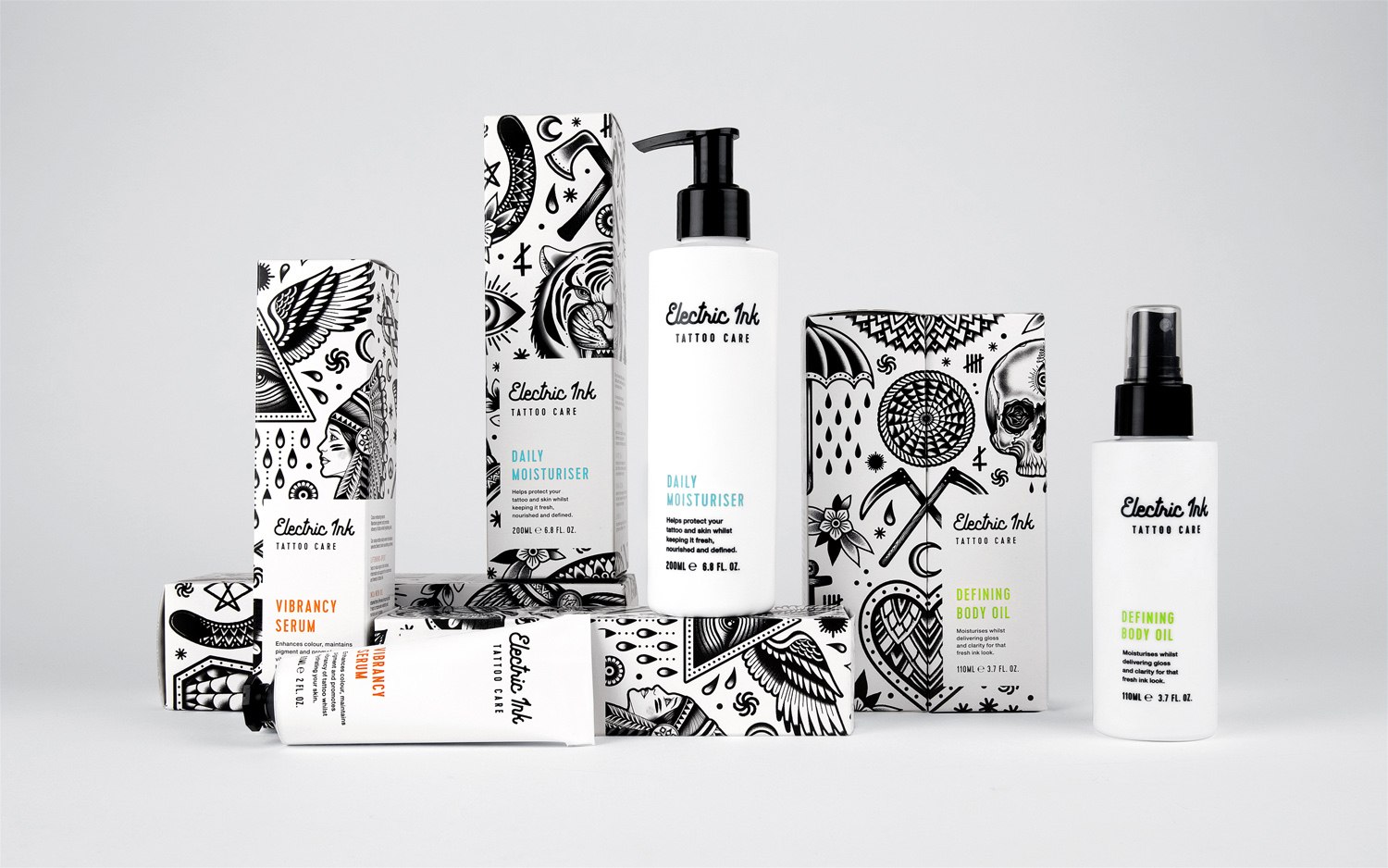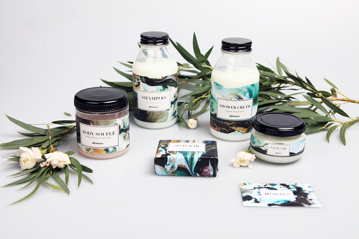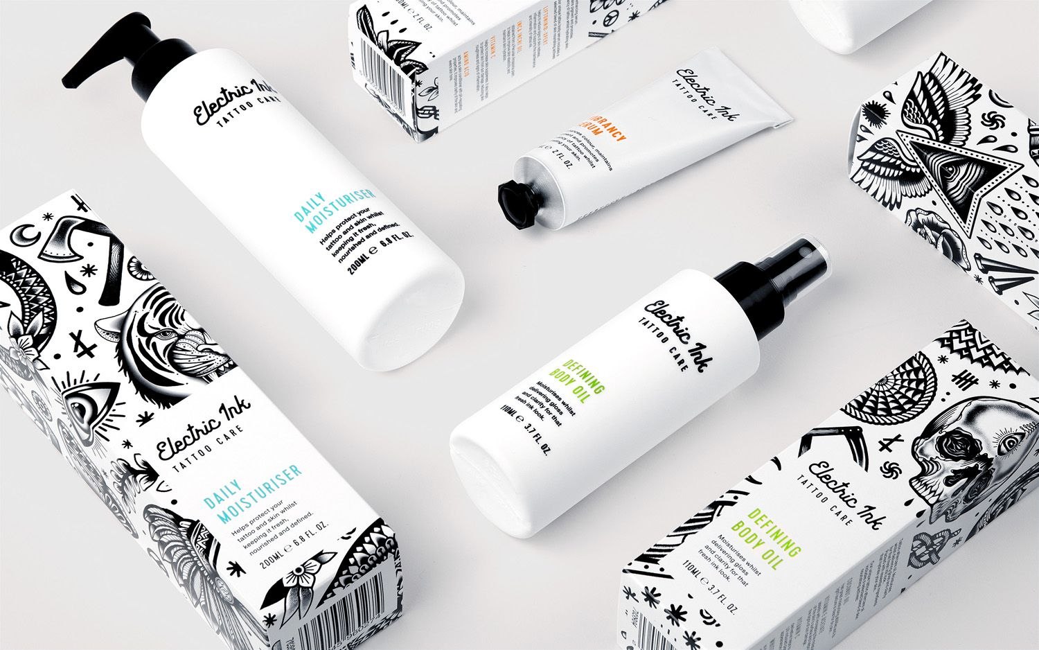Косметика для тела в черно белом дизайне