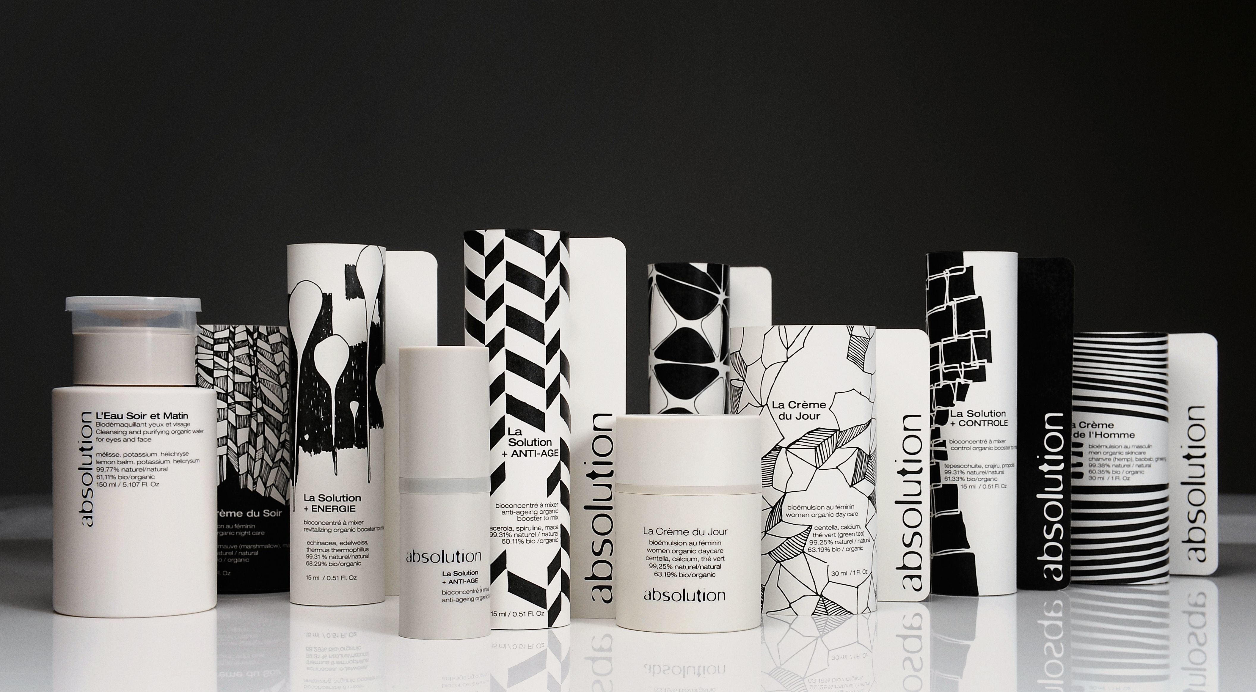 Черно-белая упаковка косметики