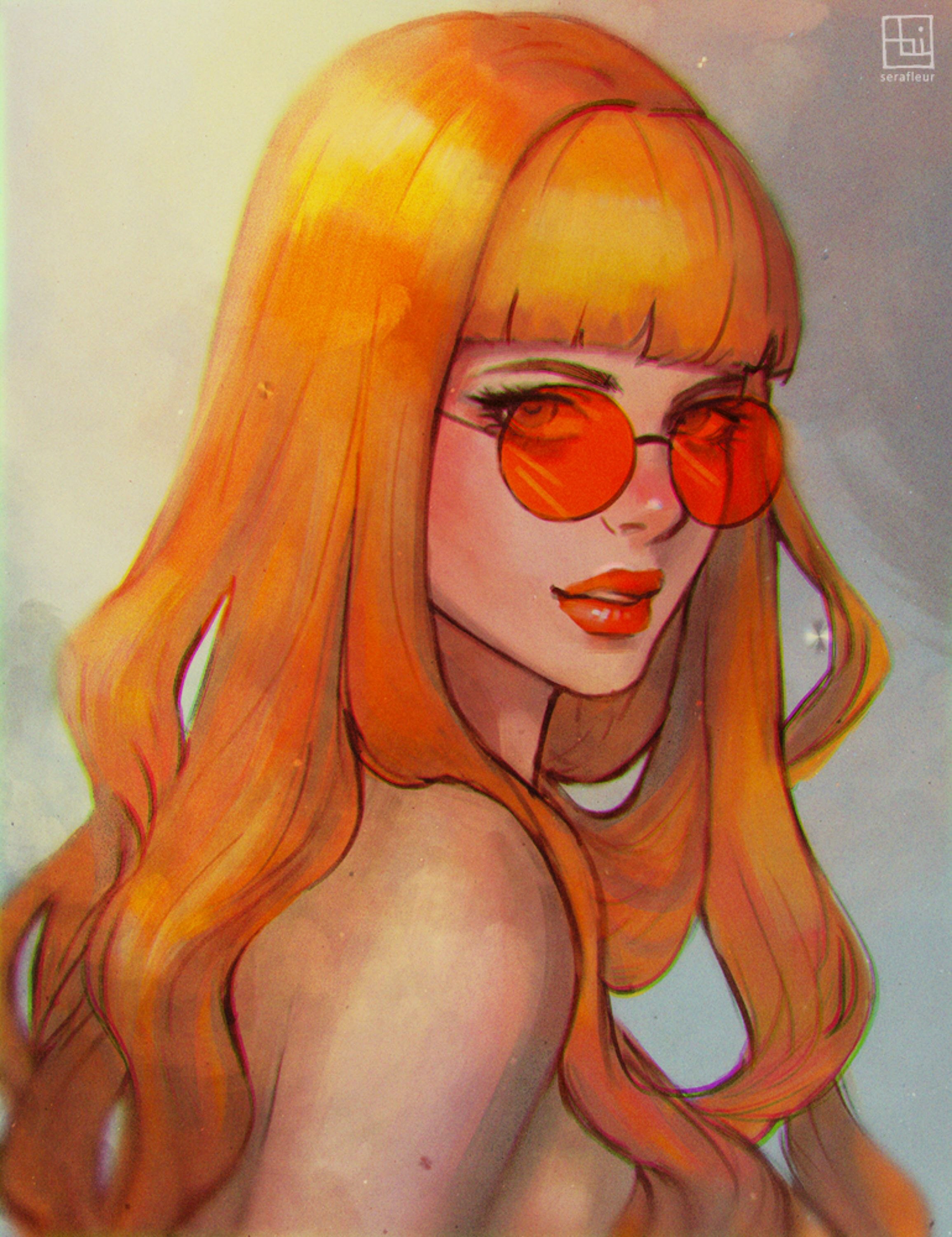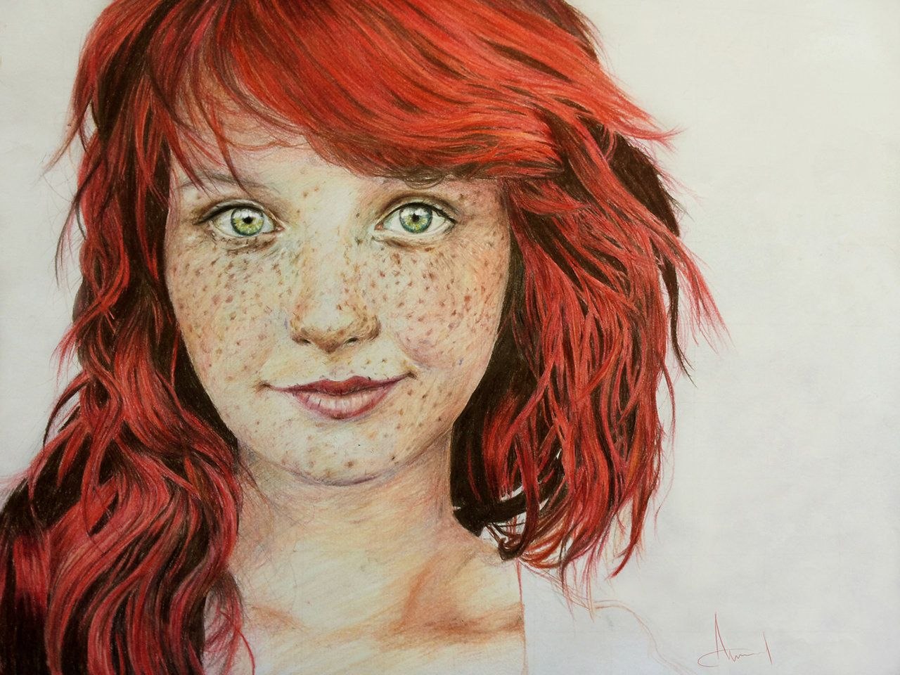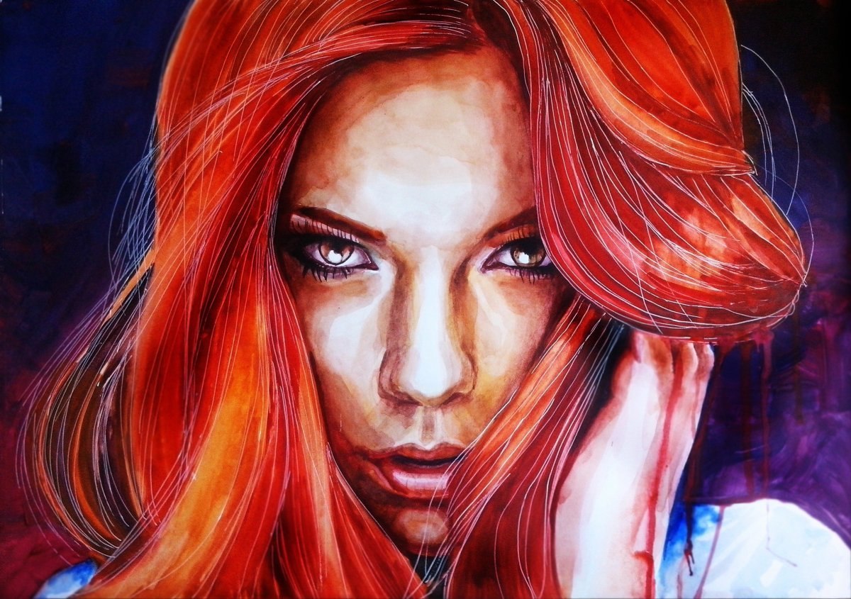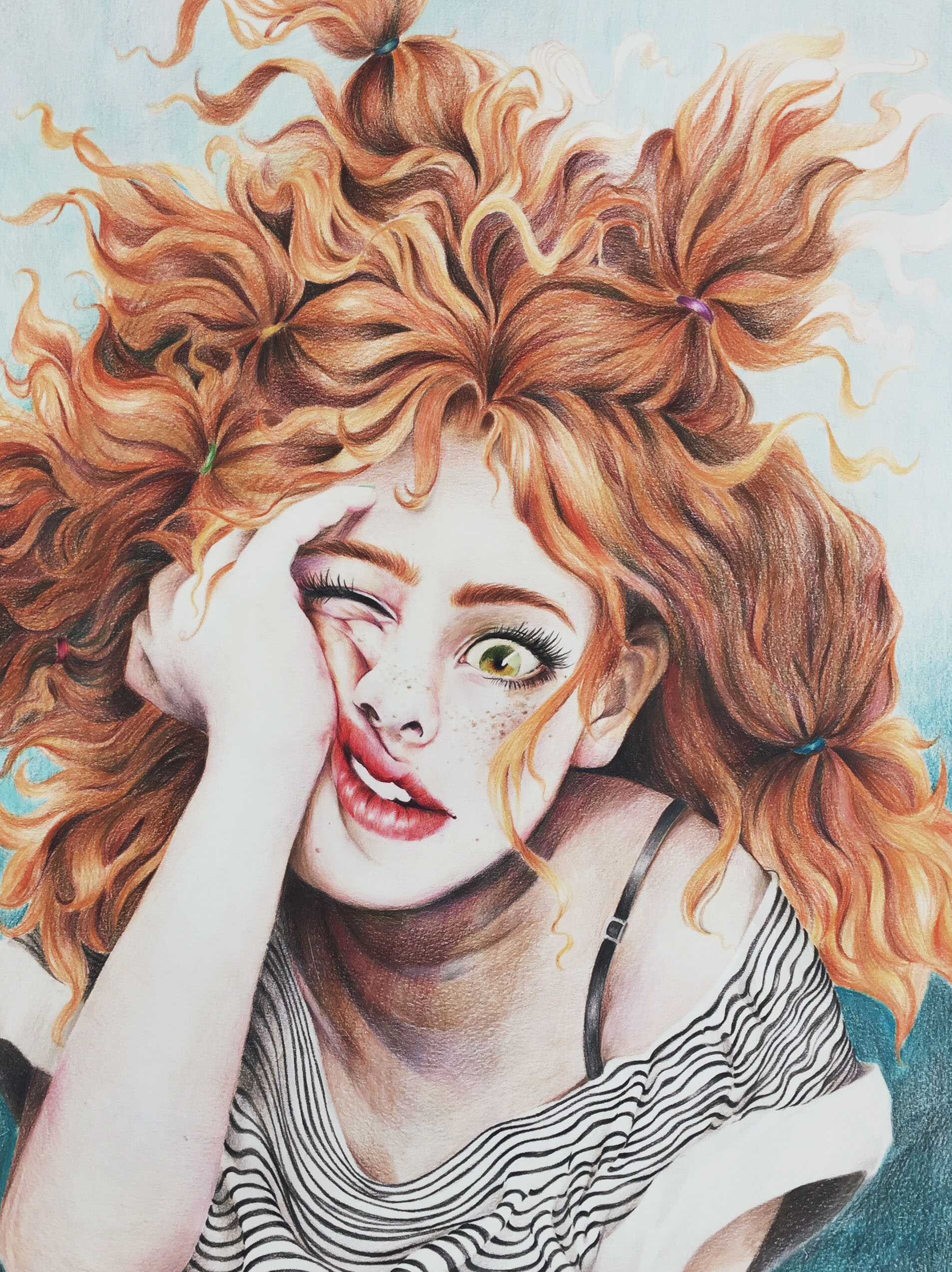 Рыжая девушка нарисованная