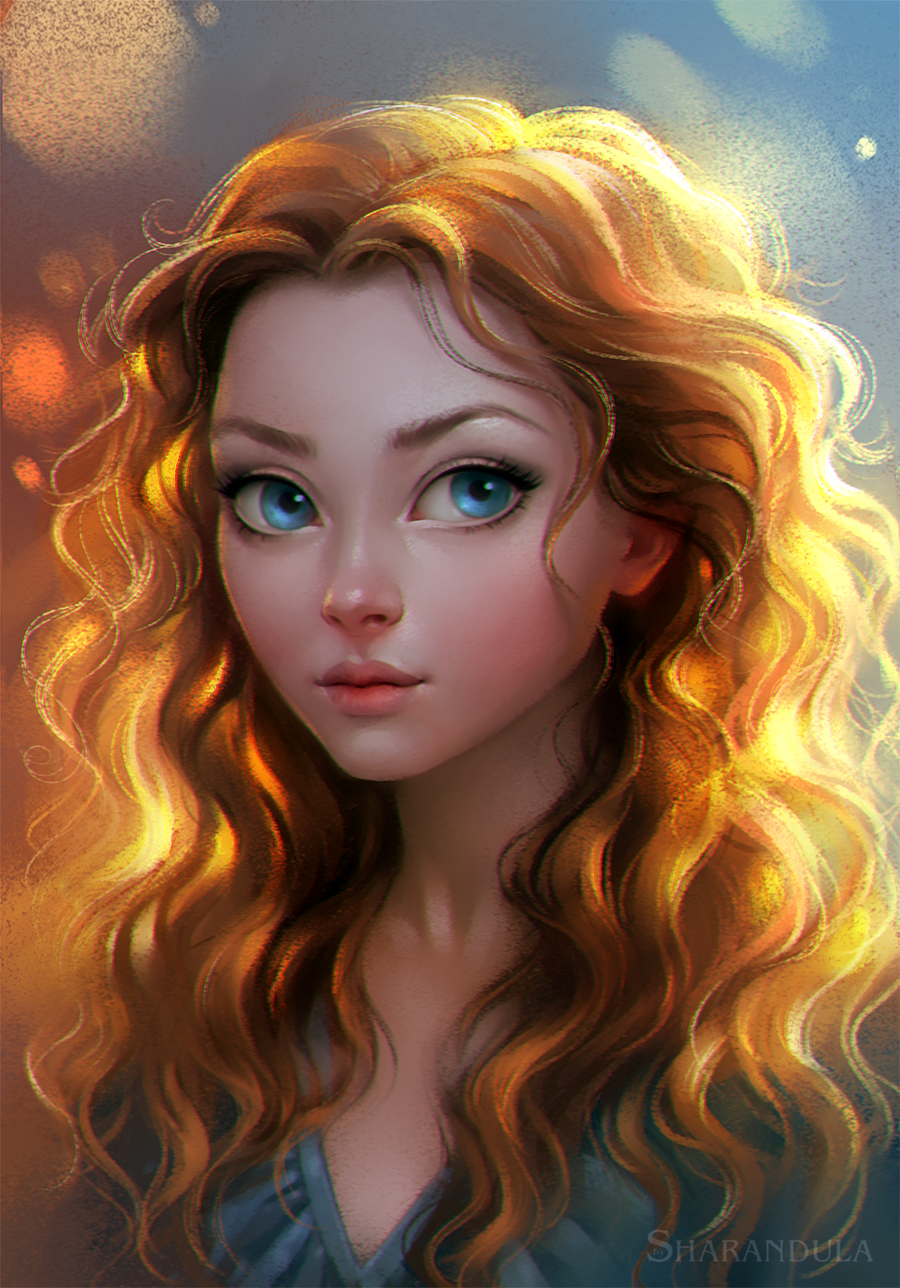 Девочка с рыжими волосами арт