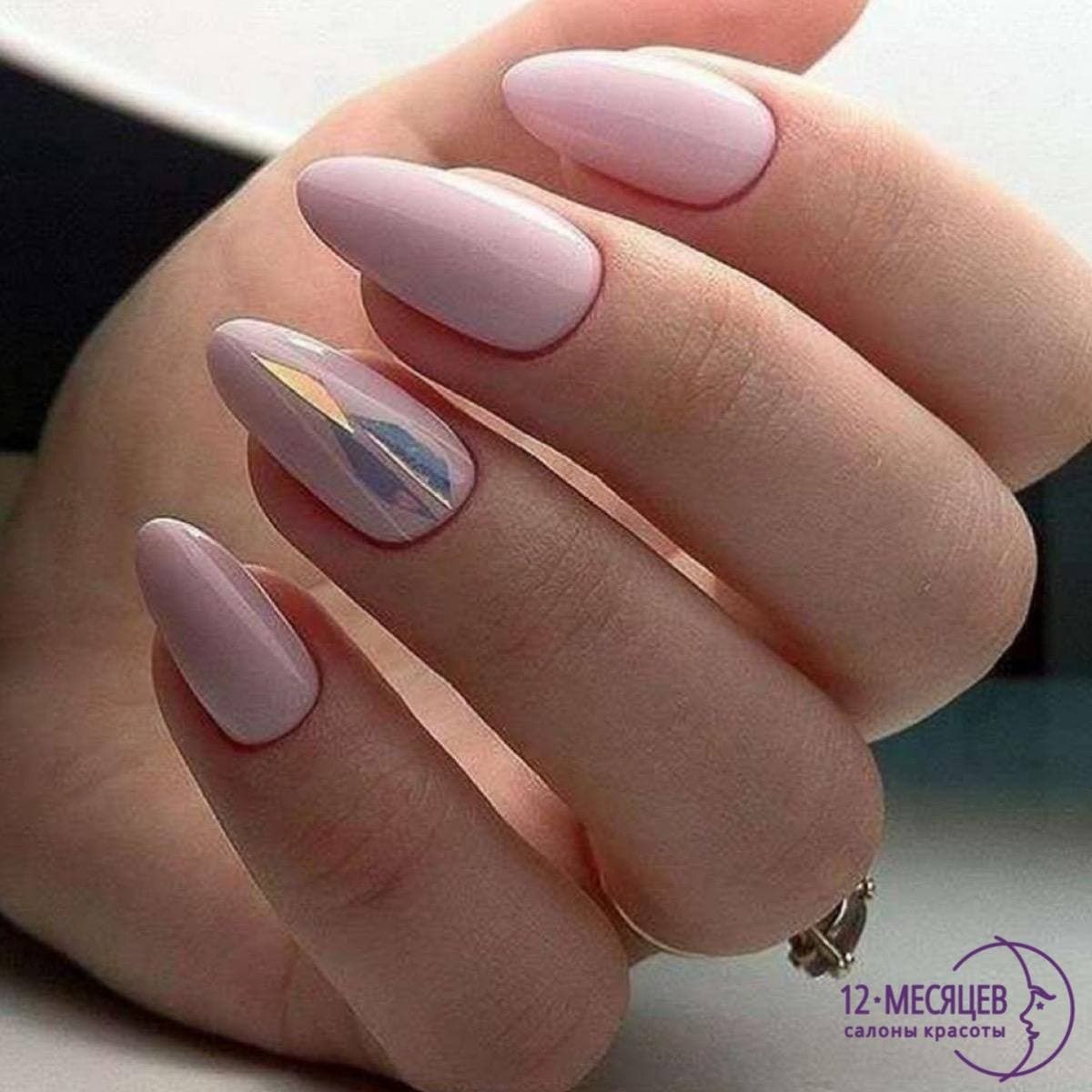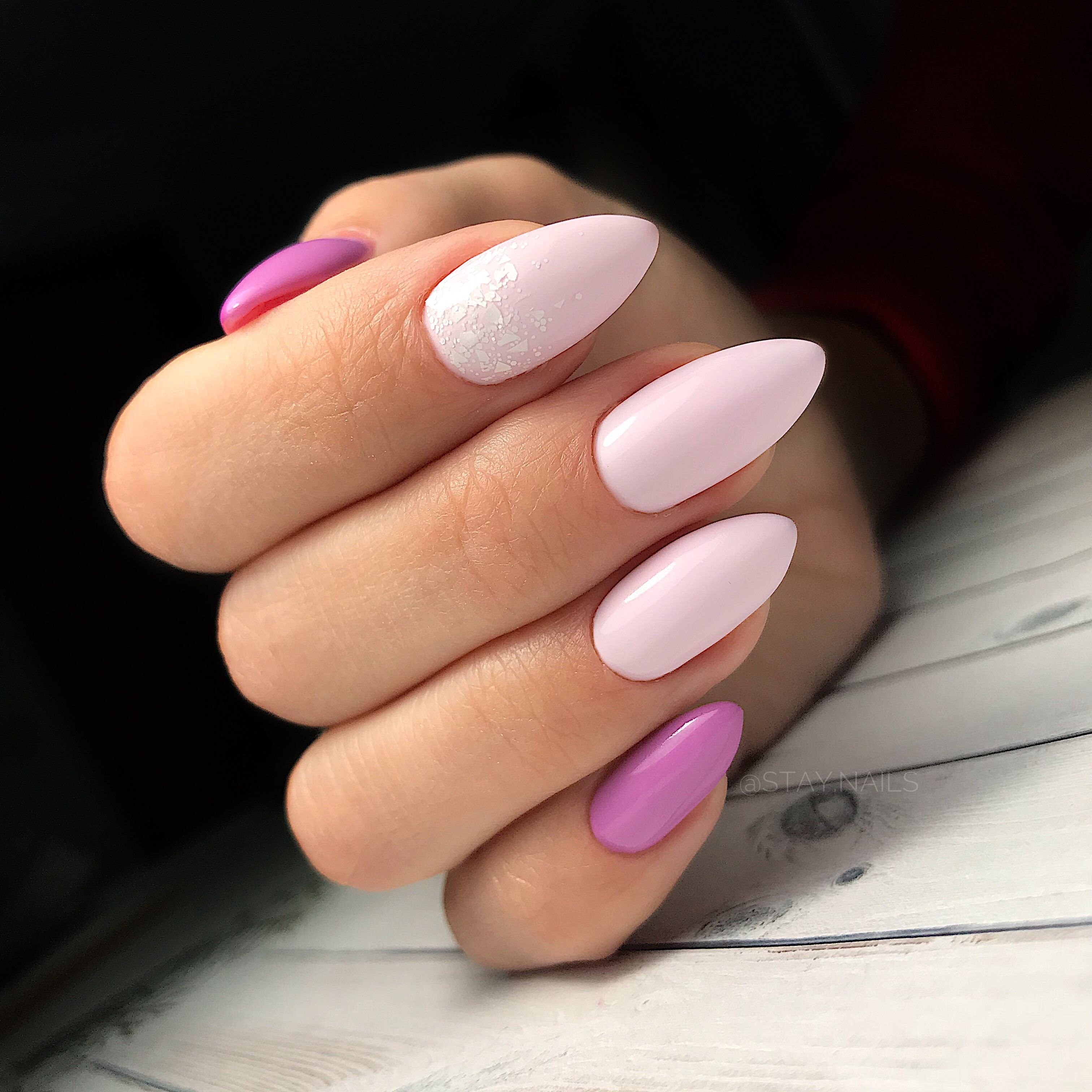 Маникюр на миндальную форму ногтей нежных оттенков