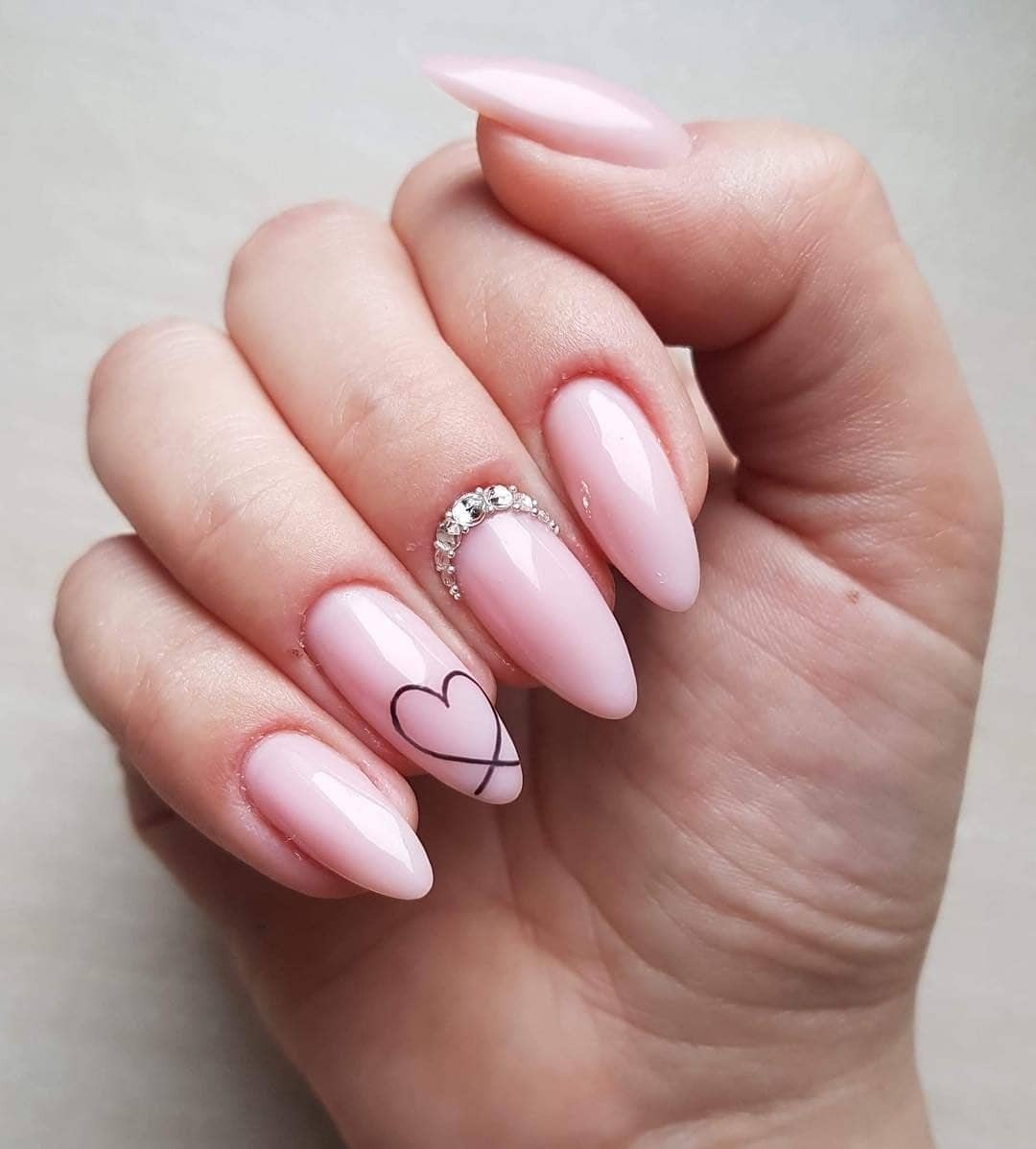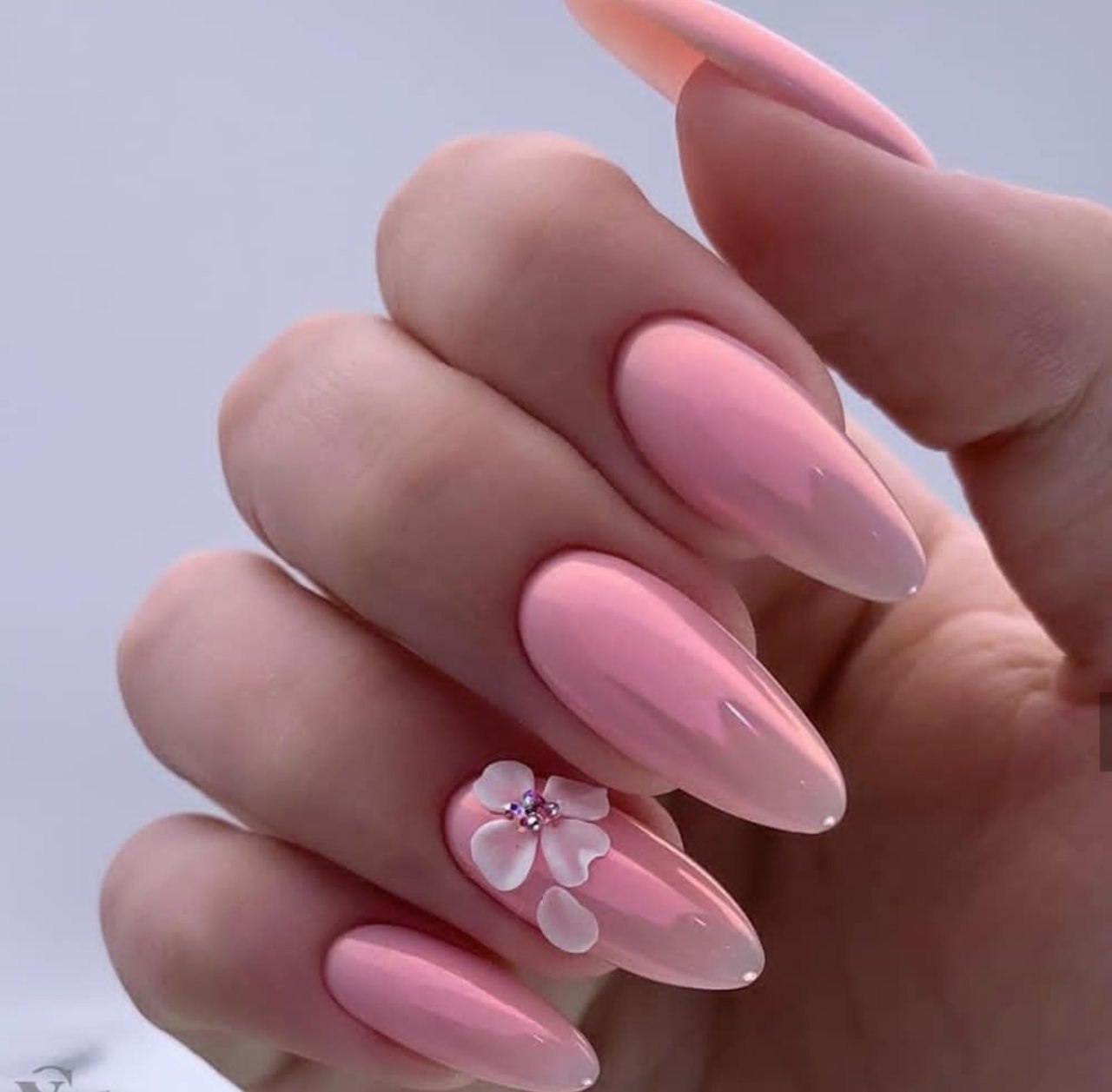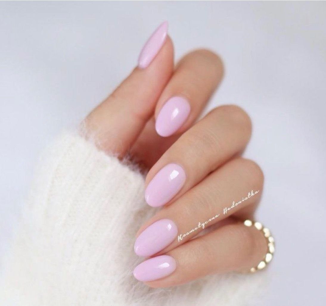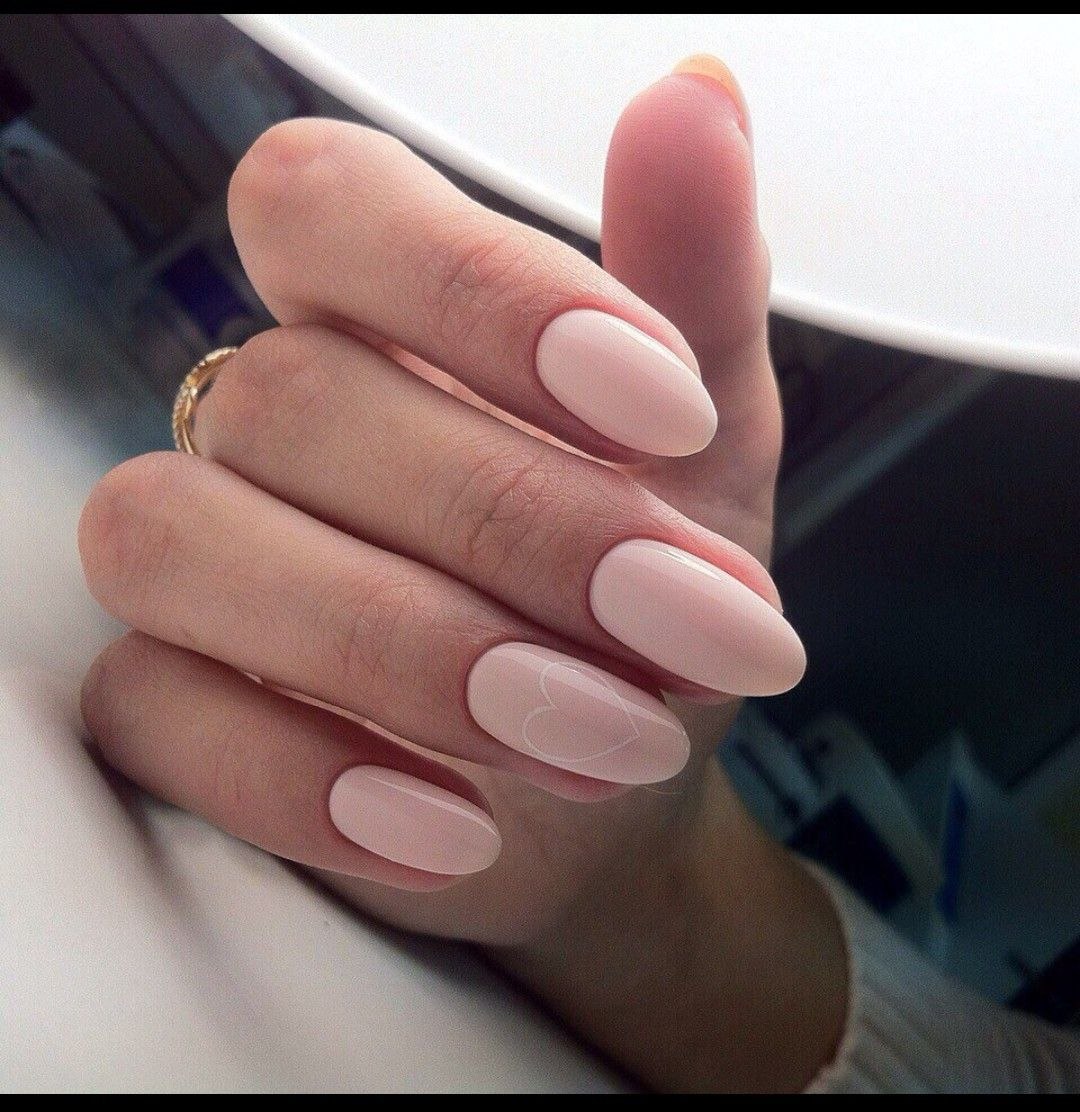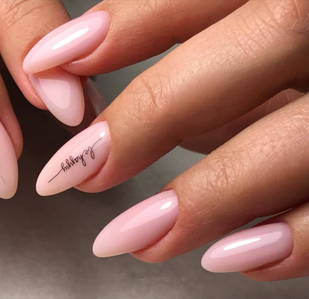 Нежно розовый маникюр на миндалевидных