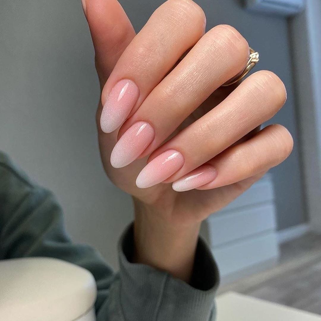 Нюдовый маникюр 2020 миндаль с втиркой