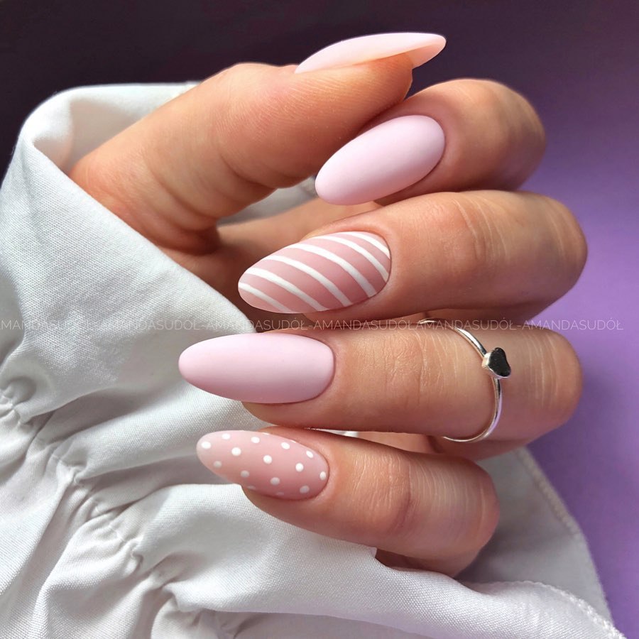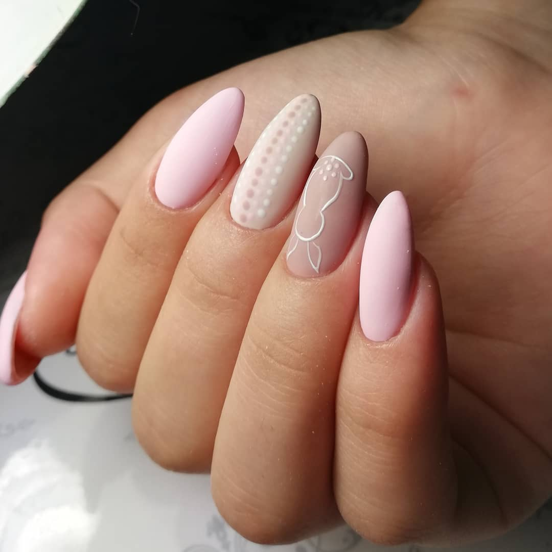 Розовый маникюр миндальной