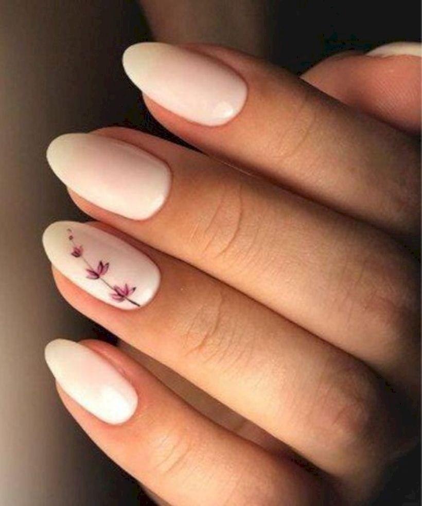 Весенний нюдовый маникюр на миндаль