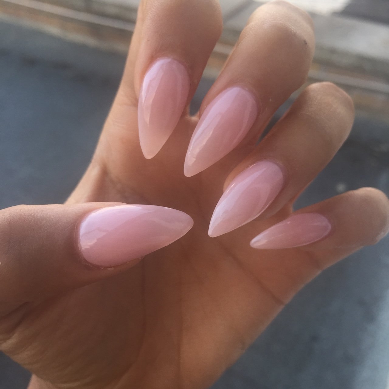 Нюдовый маникюр на острый миндаль