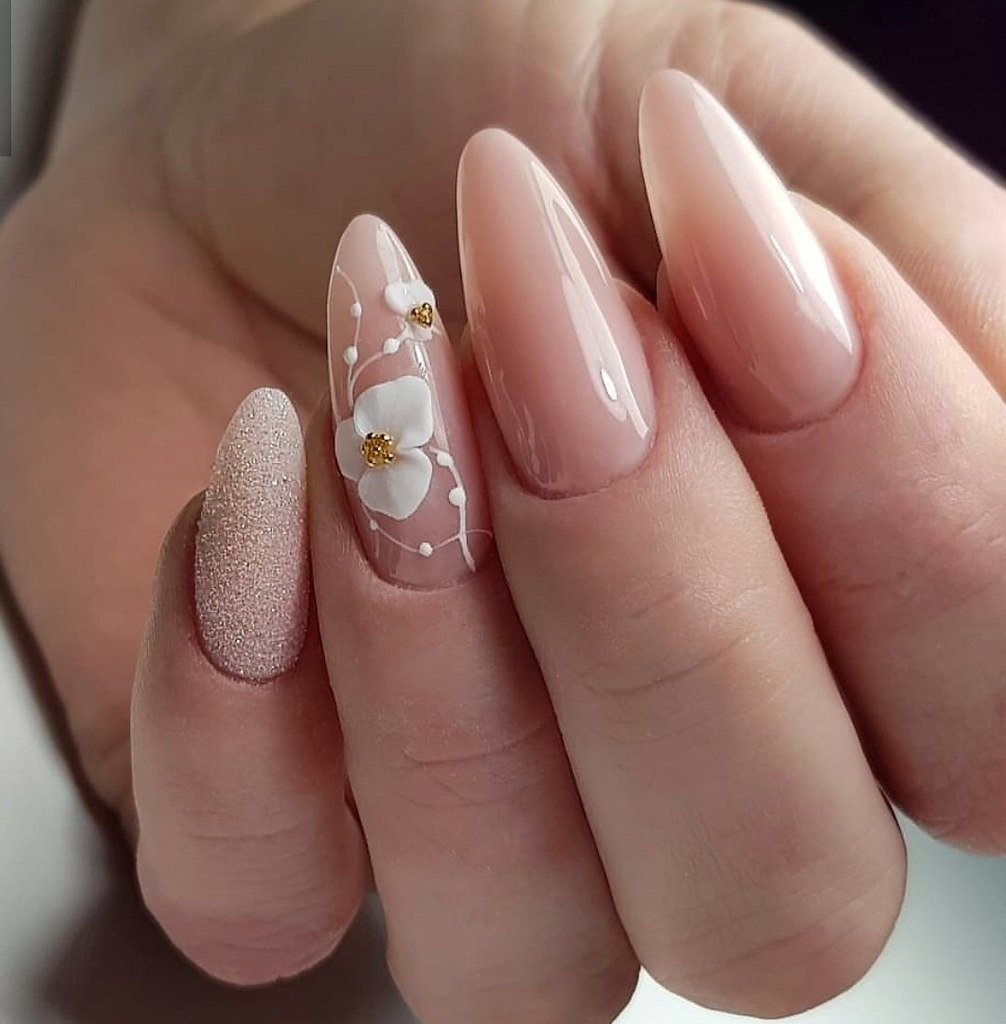 Нежный маникюр на миндалевидные ногти