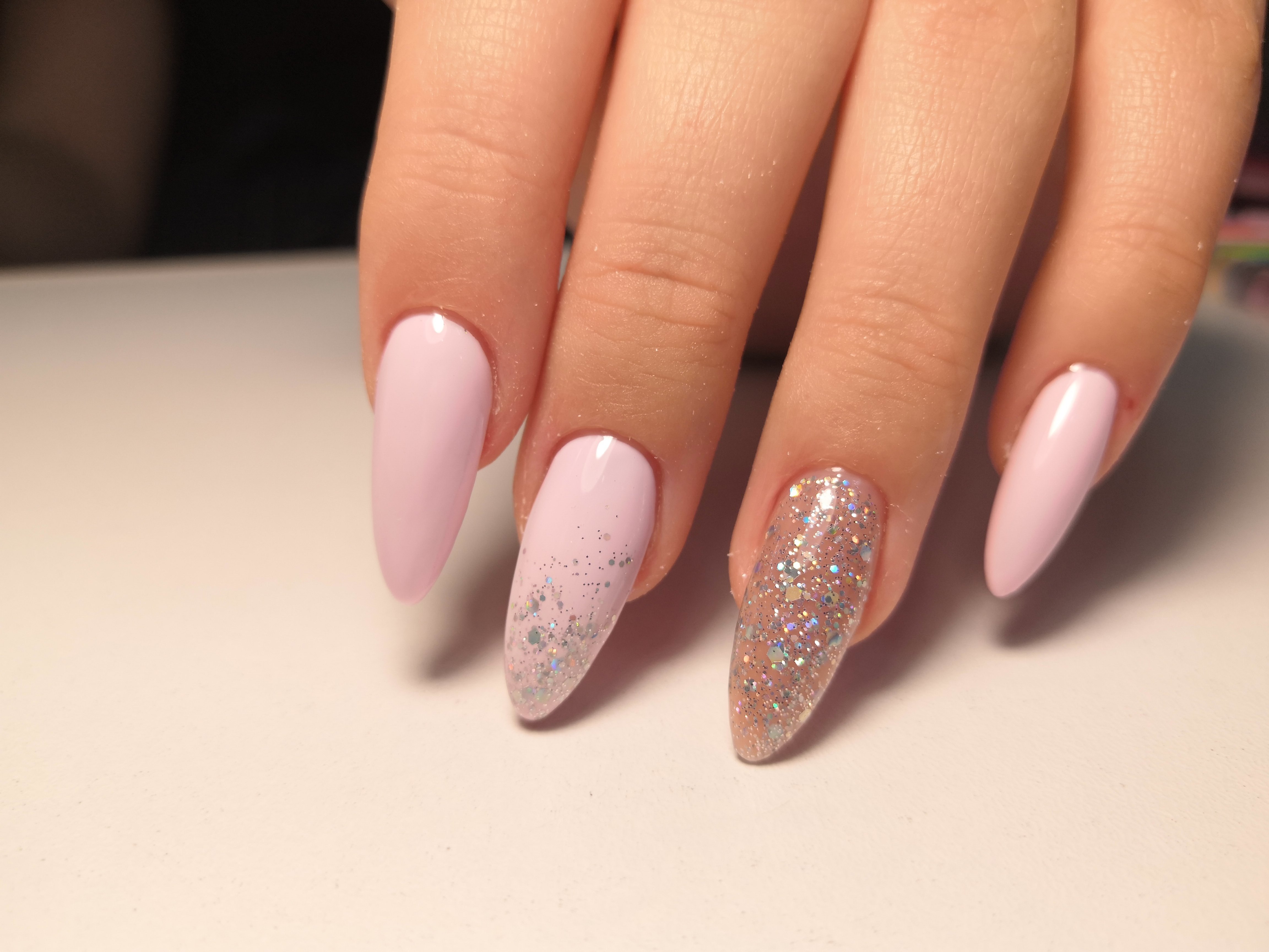 Маникюр розовый с блёстками