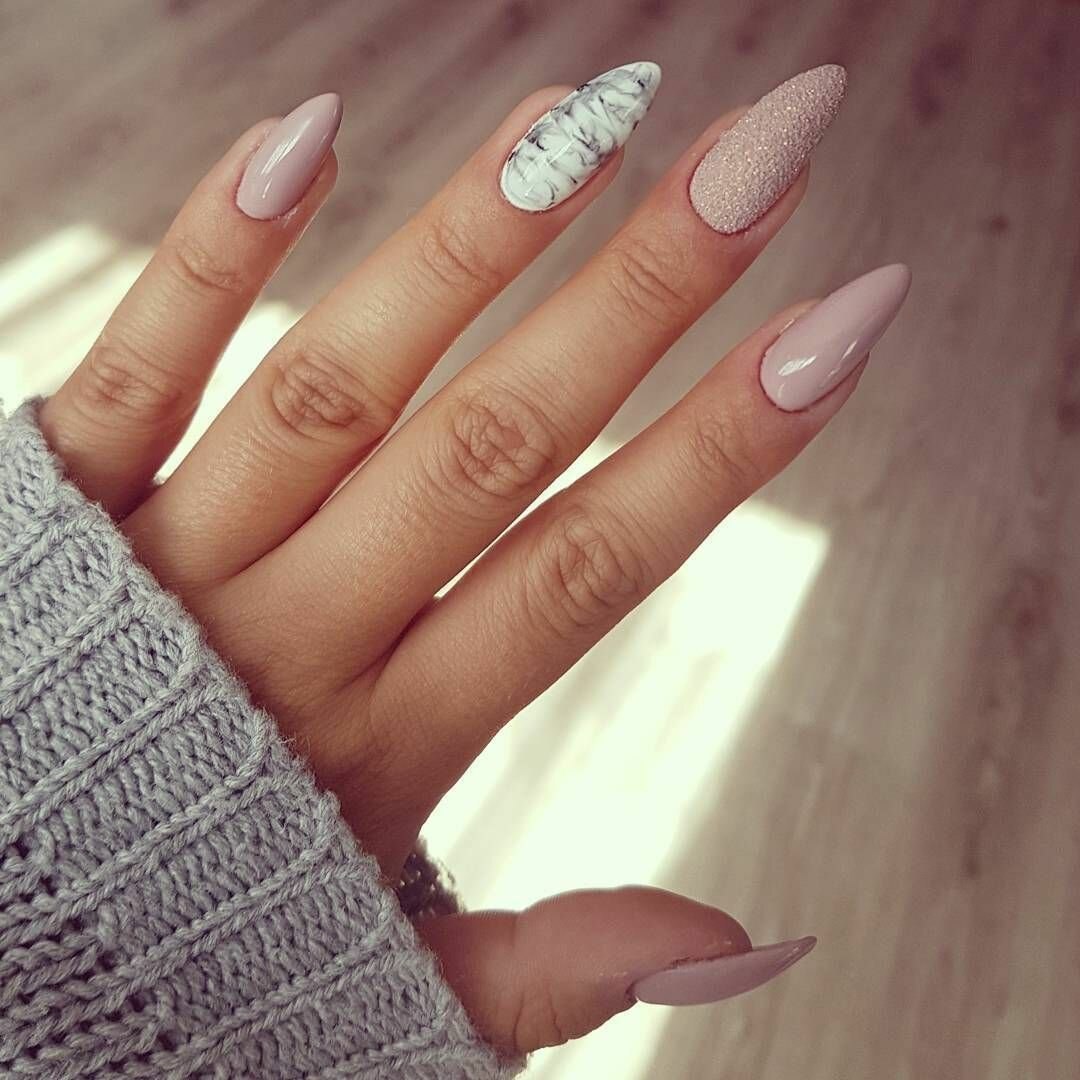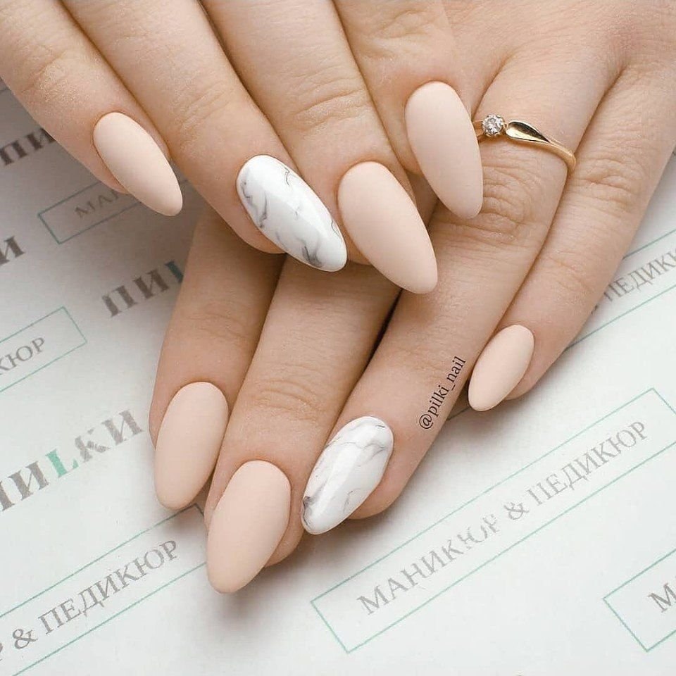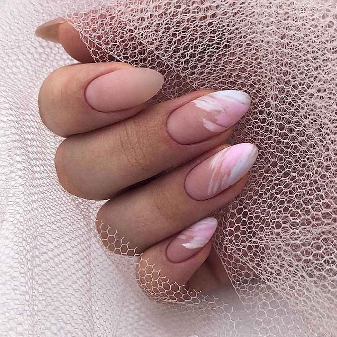 Маникюр нюд мрамор миндаль