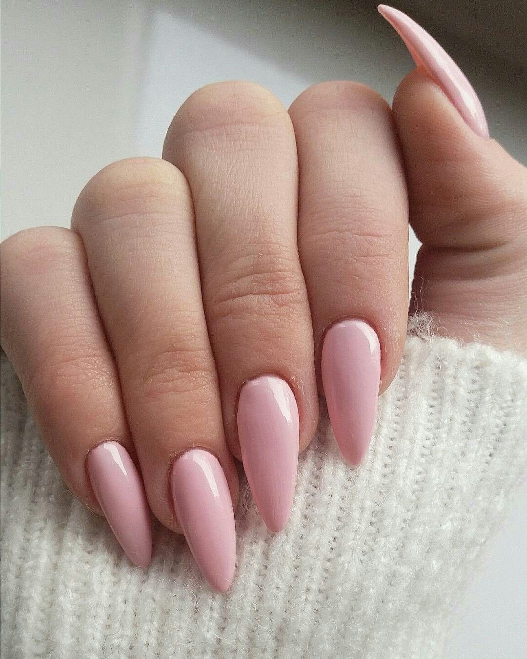 Розовые ногти миндаль