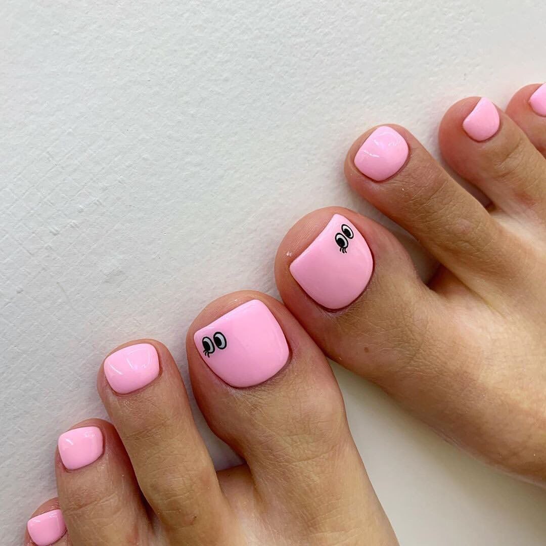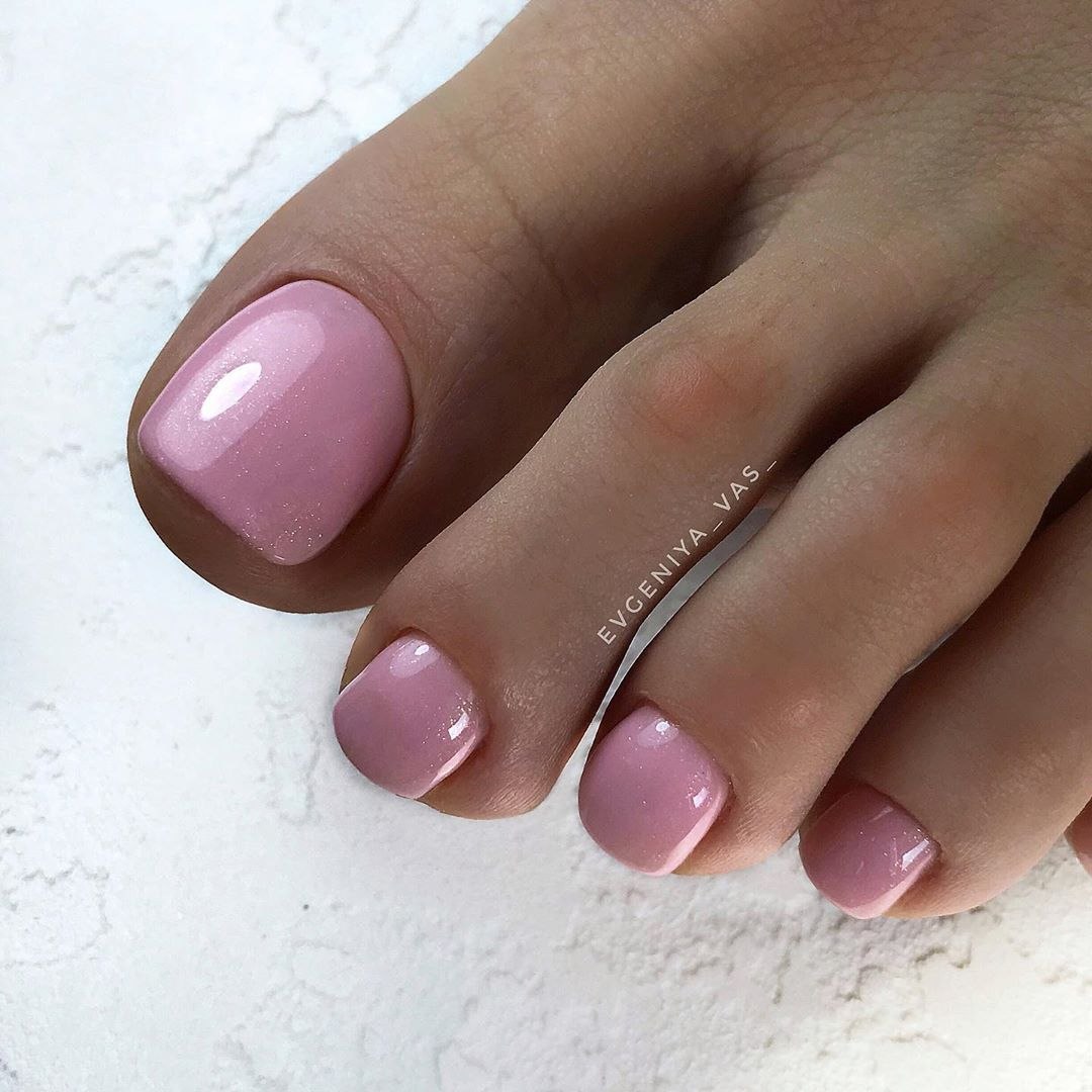 Педикюр однотонный розовый