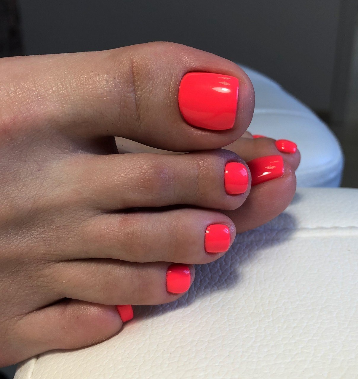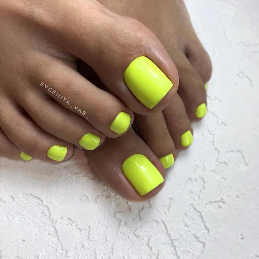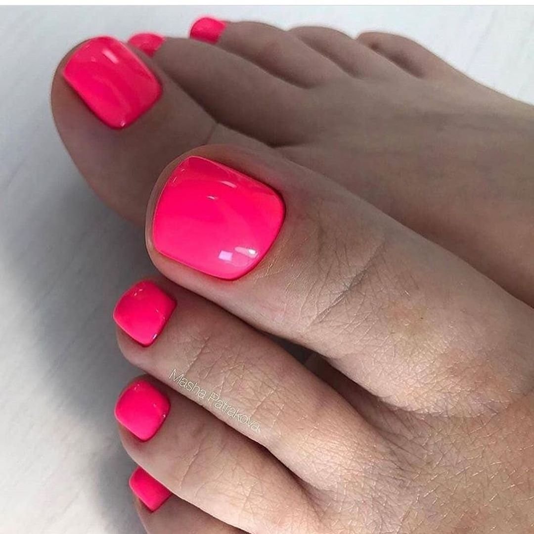 Педикюр яркий однотонный