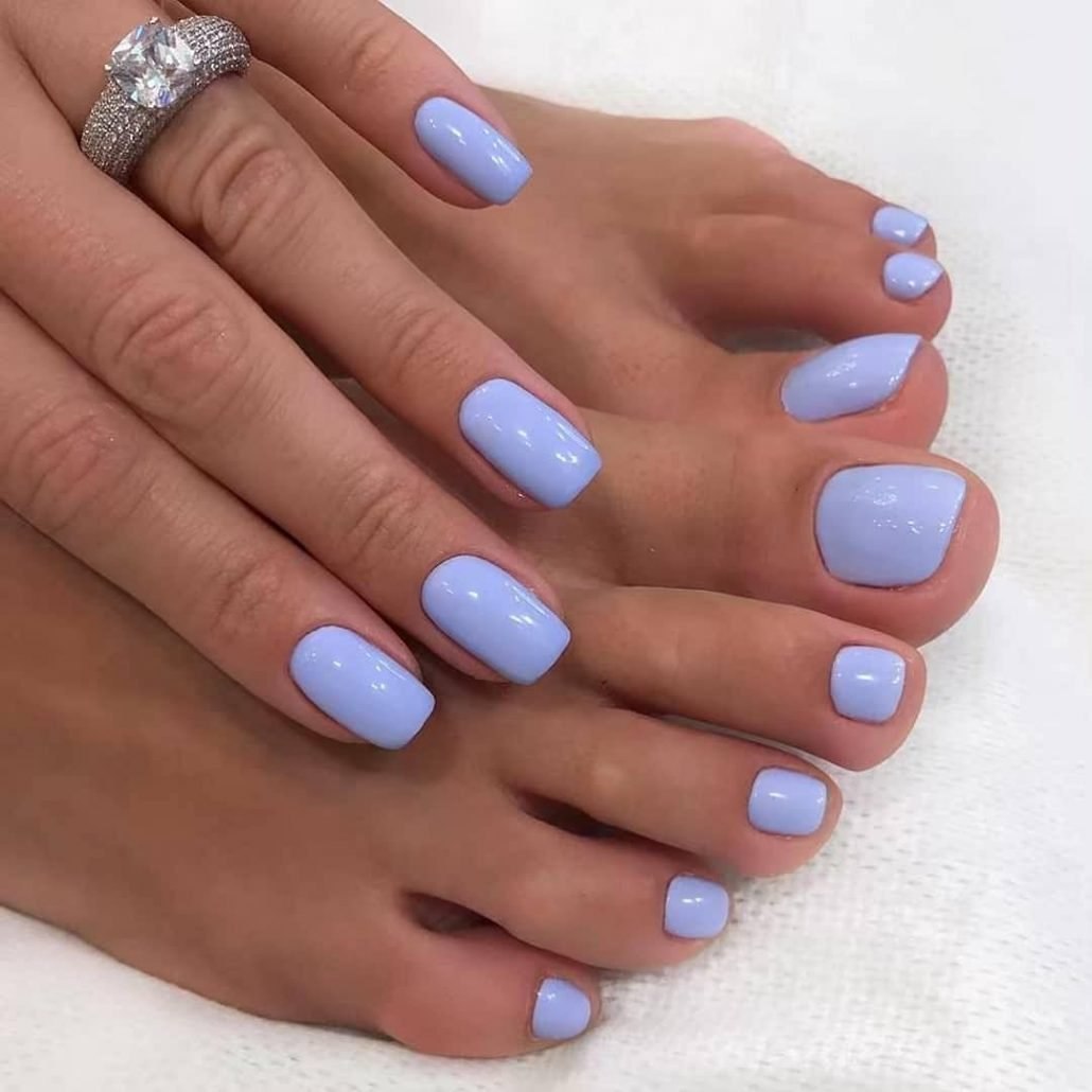 Летний педикюр однотонный под все