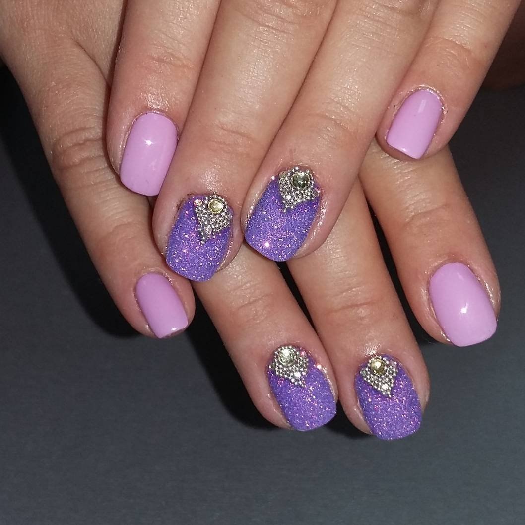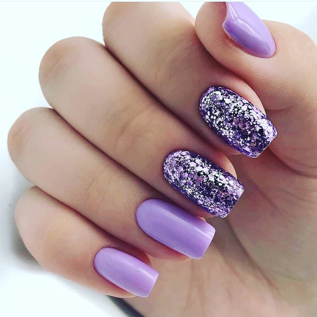 Сиреневые ногти с блестками