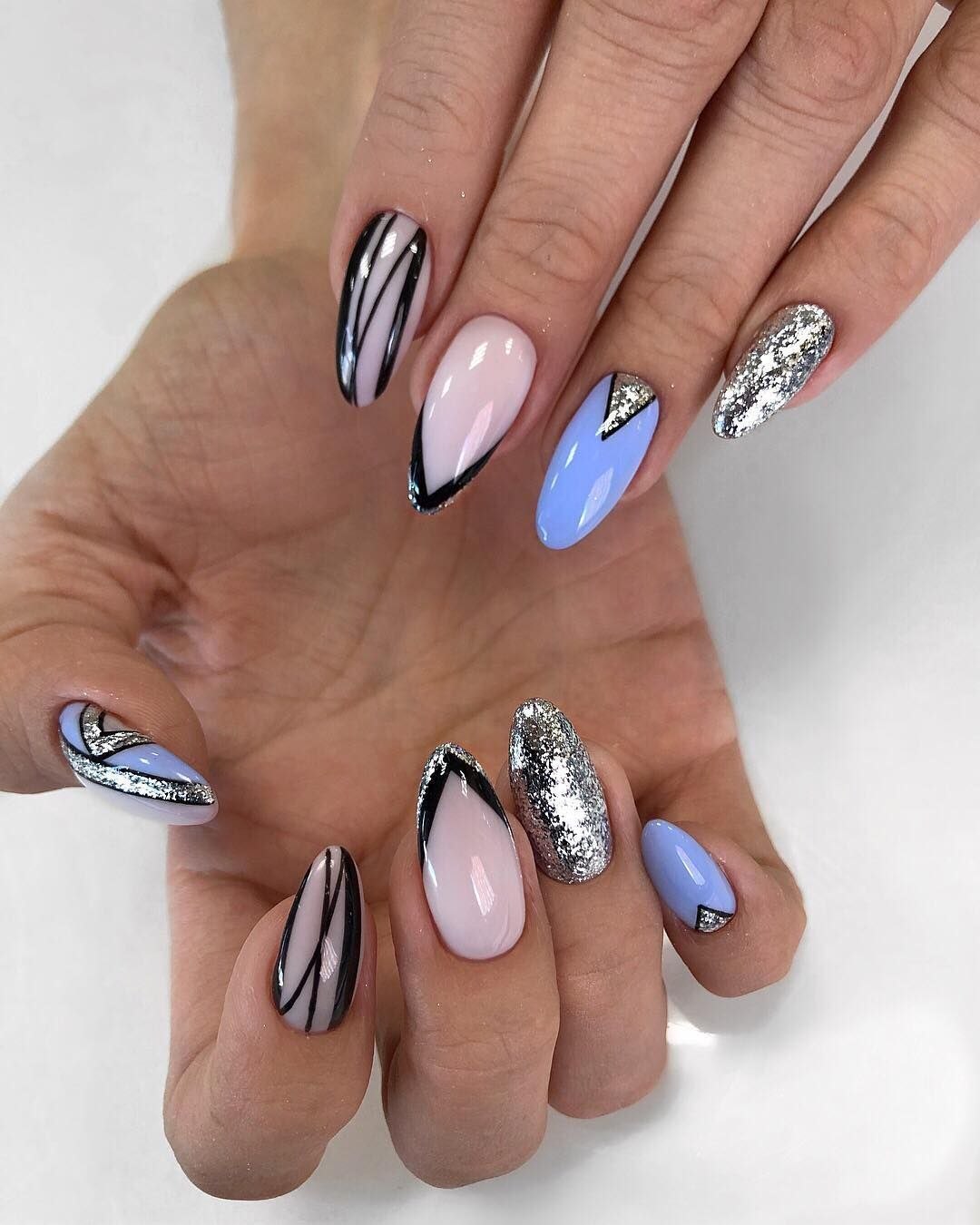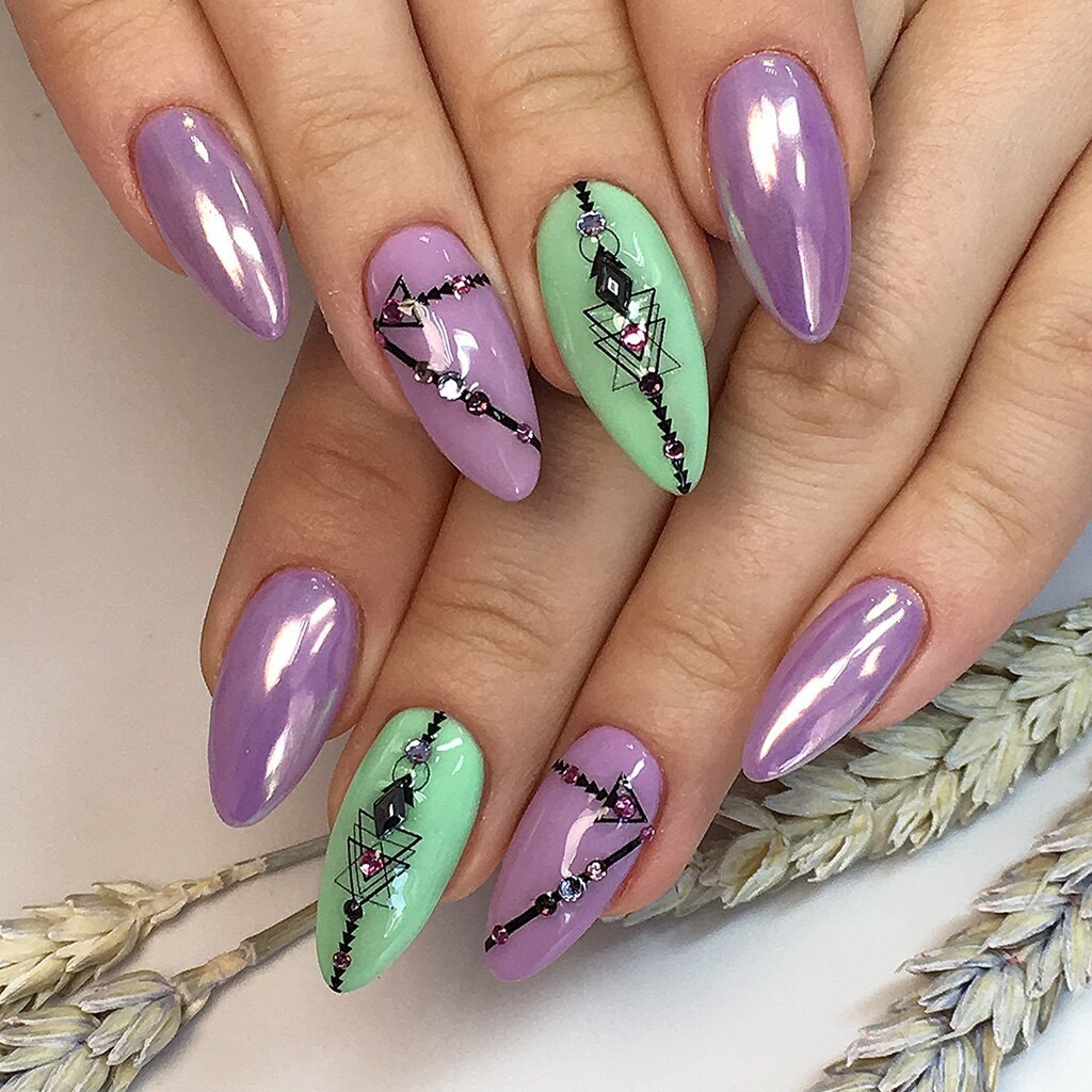Маникюр геометрия на миндалевидные ногти