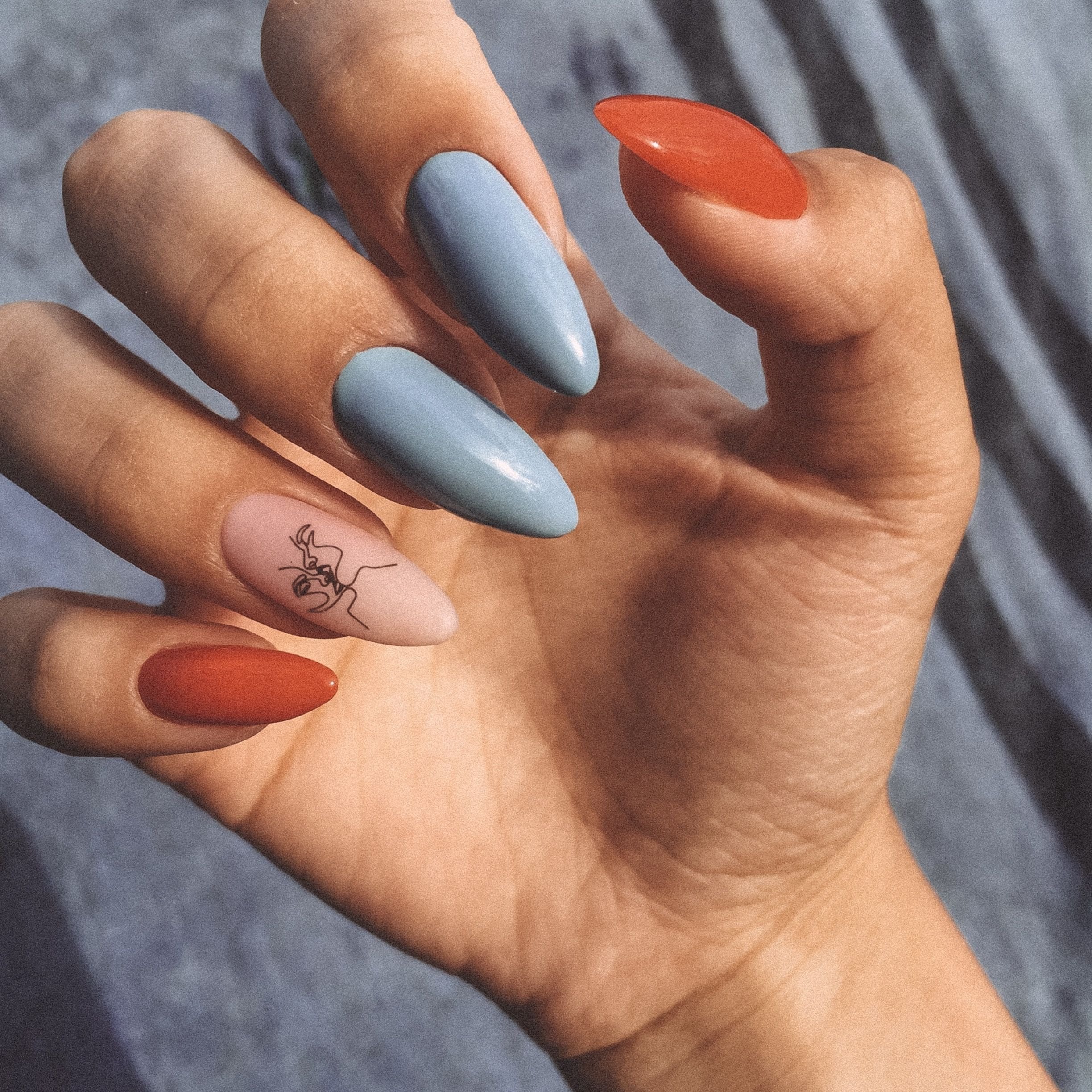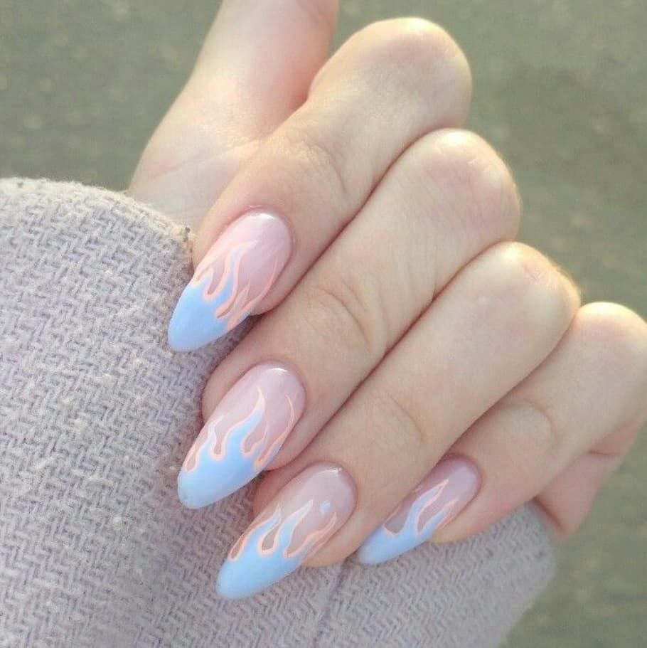 Голубые ногти миндаль