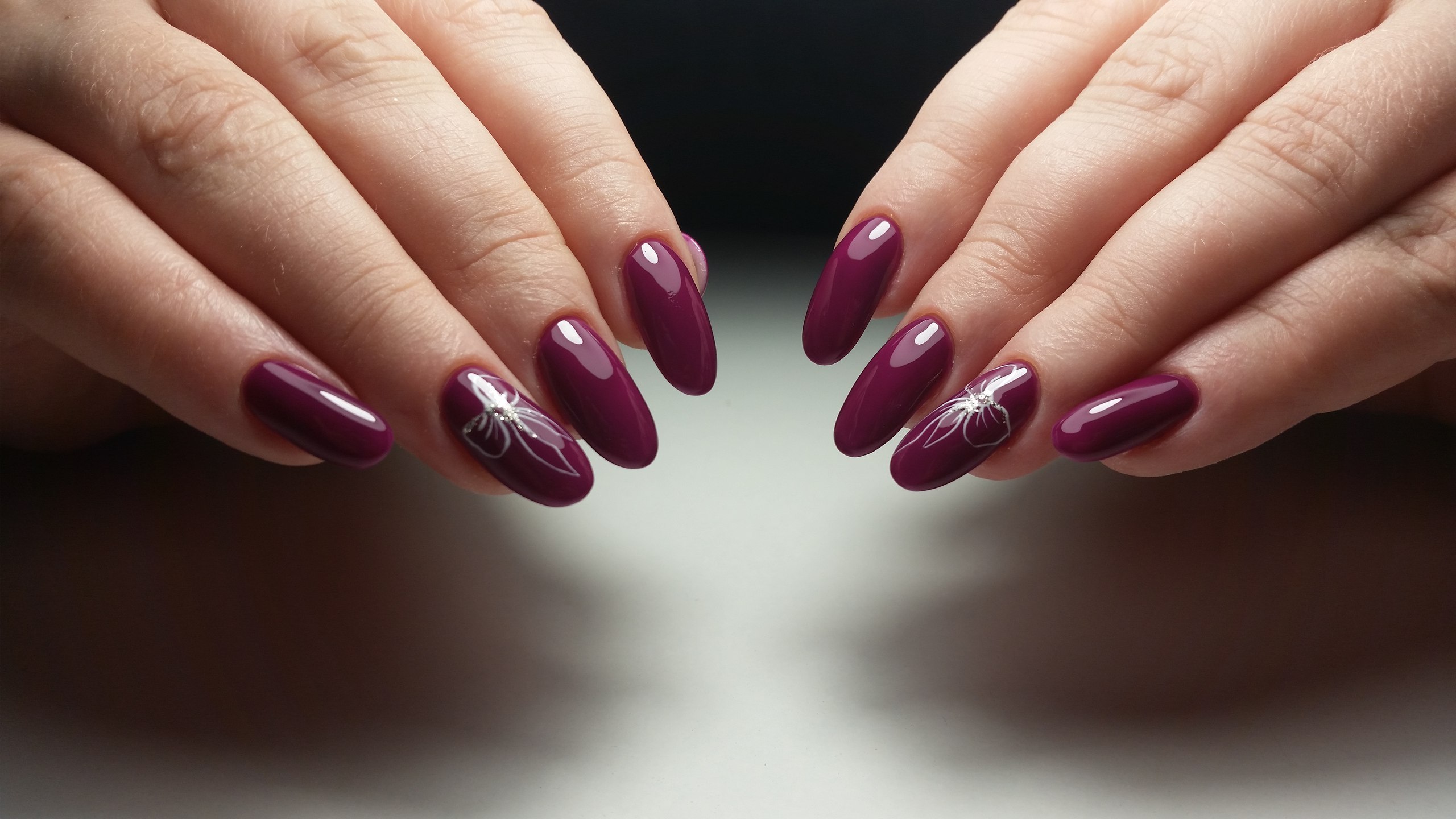 Маникюр на длинные ногти миндалевидной формы темного