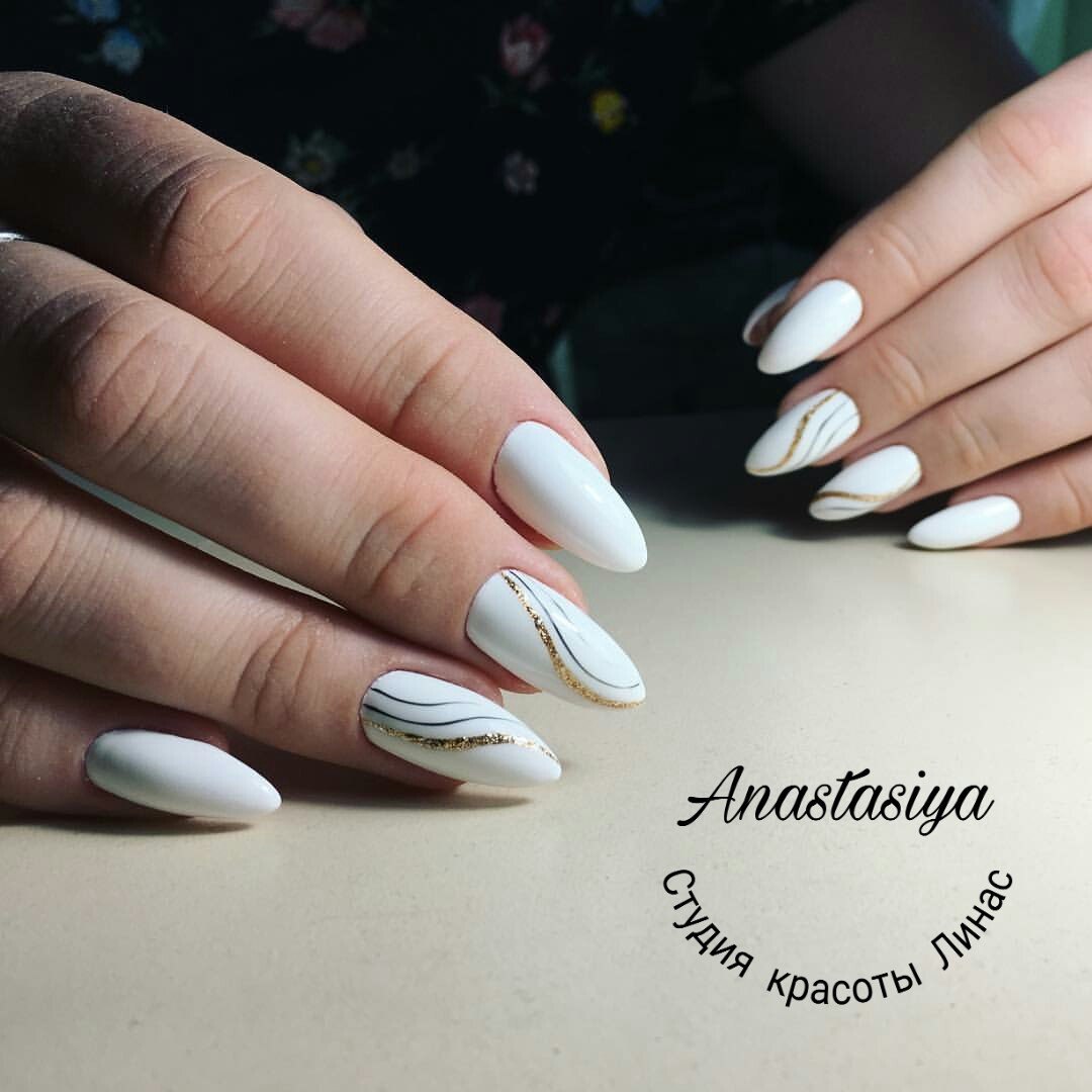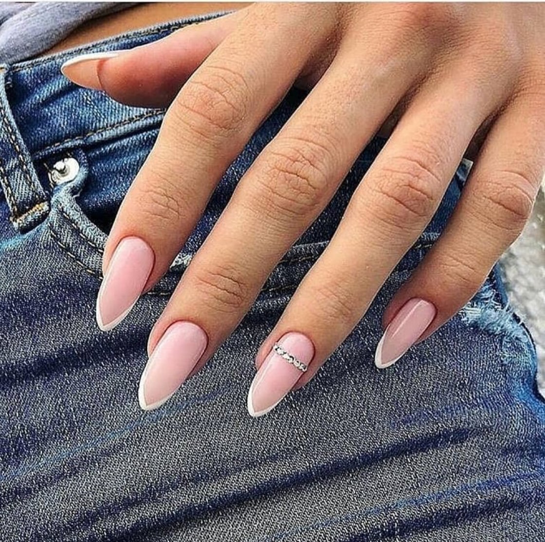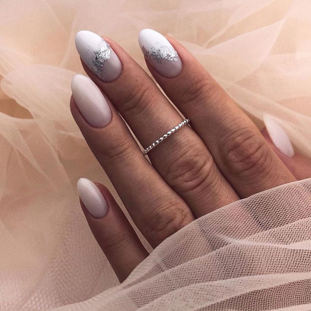 Белый маникюр 2020 на миндальную форму