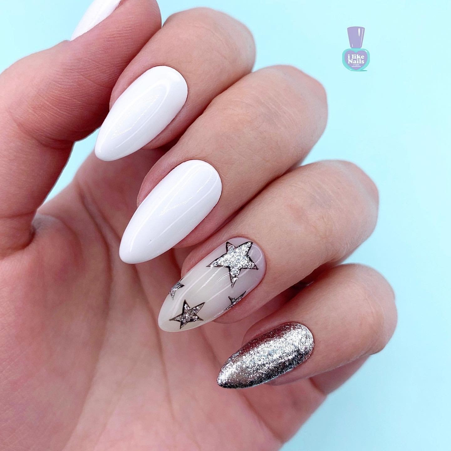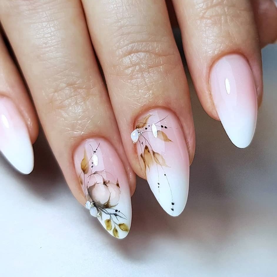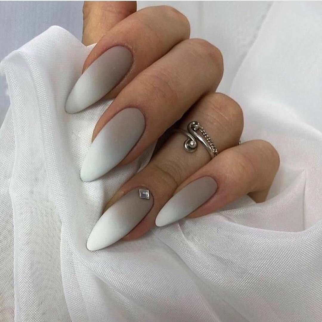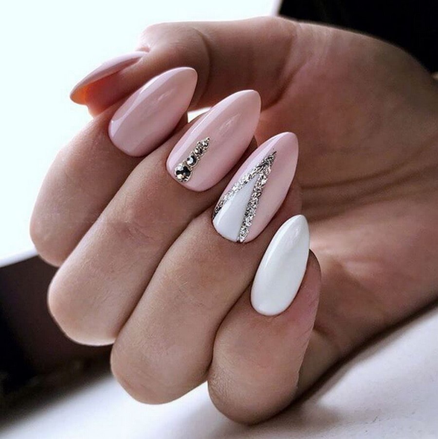 Белый маникюр 2020 на миндальную форму