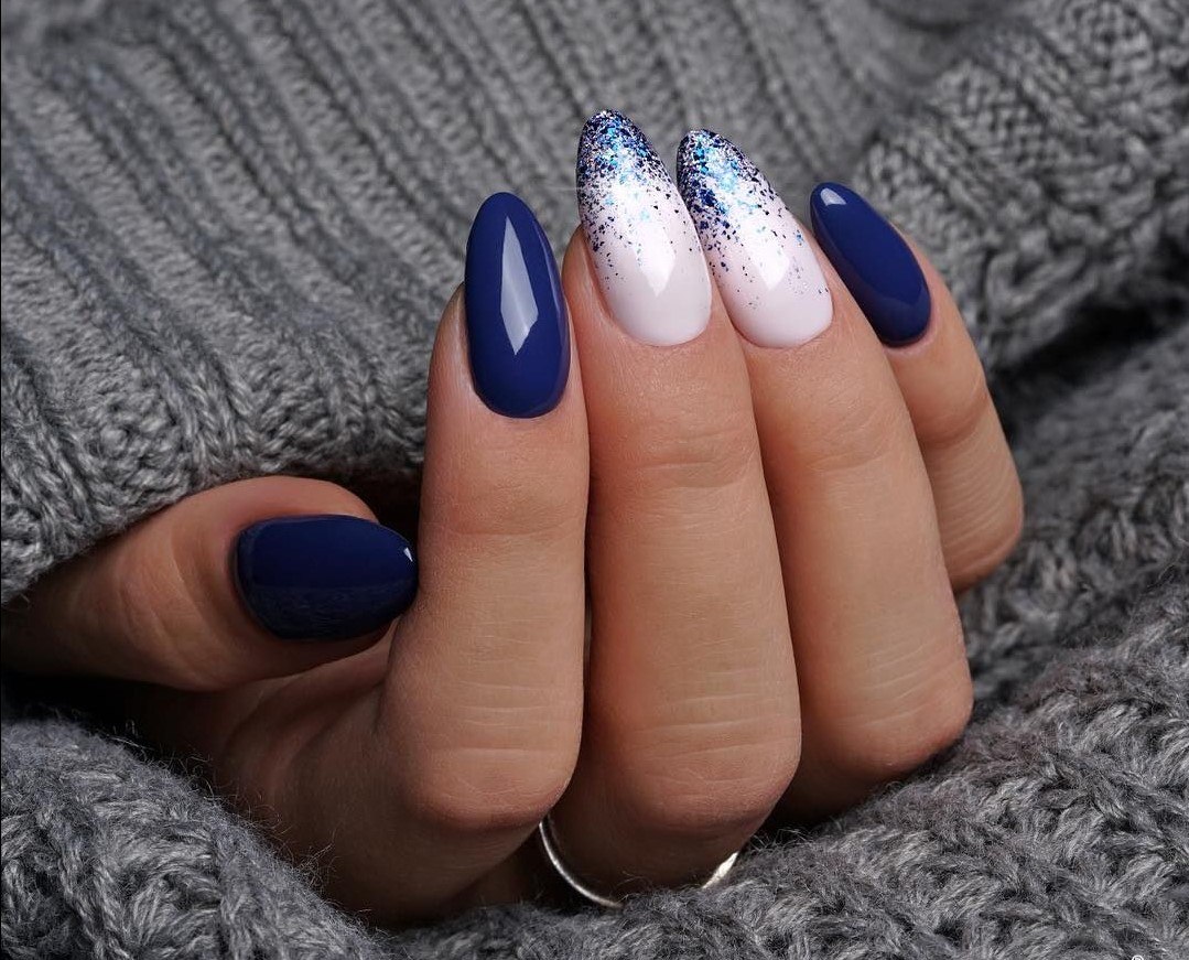 Синий маникюр 2022 миндаль