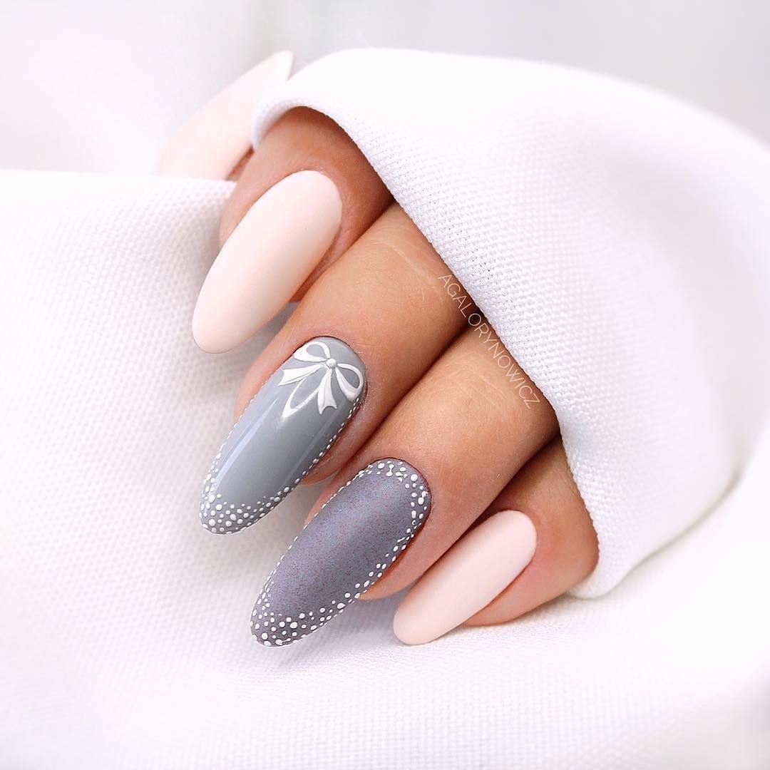 Нежный маникюр на миндалевидные