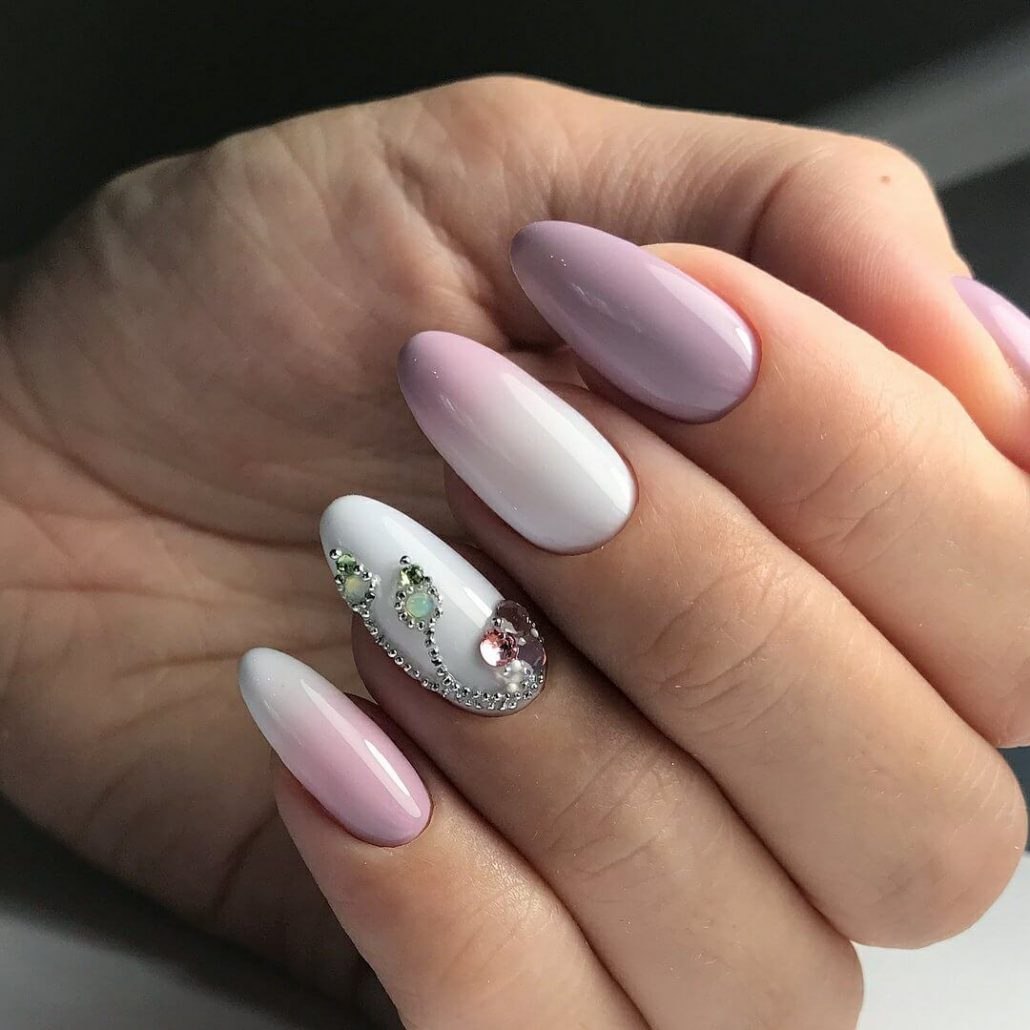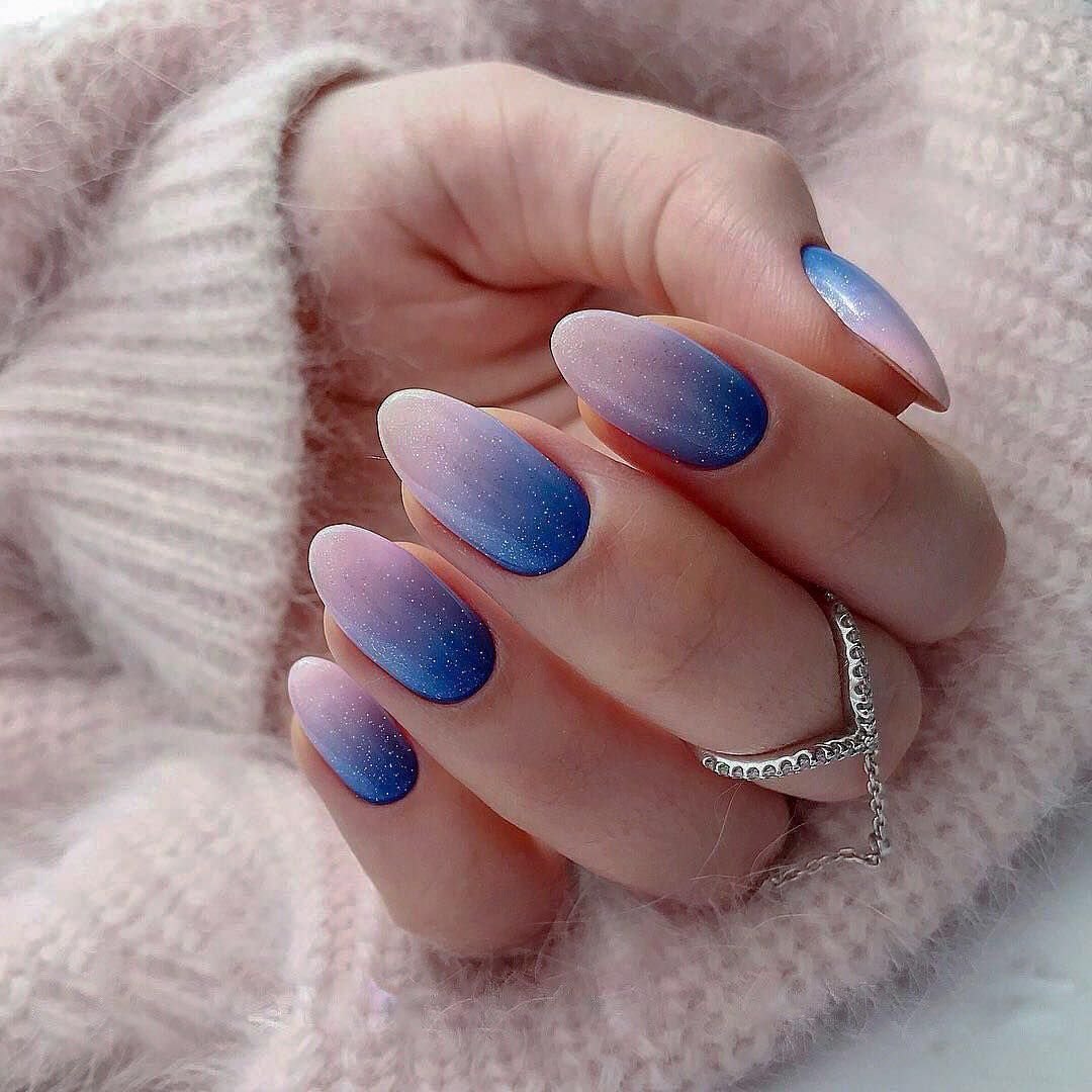 Градиент маникюр миндалевидной формы