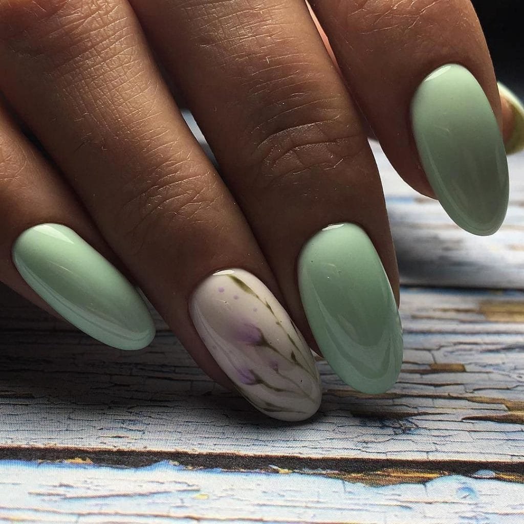 Мятный маникюр 2022 миндаль