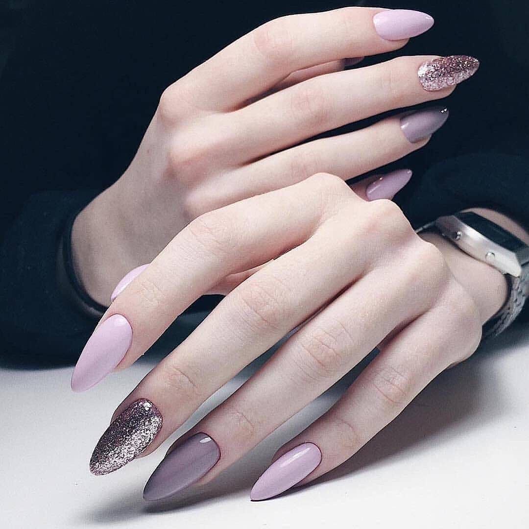 Сиреневый маникюр миндаль