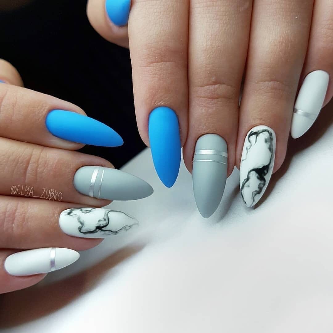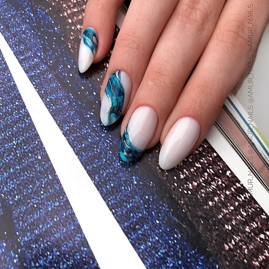 Маникюр 2021 миндаль мрамор