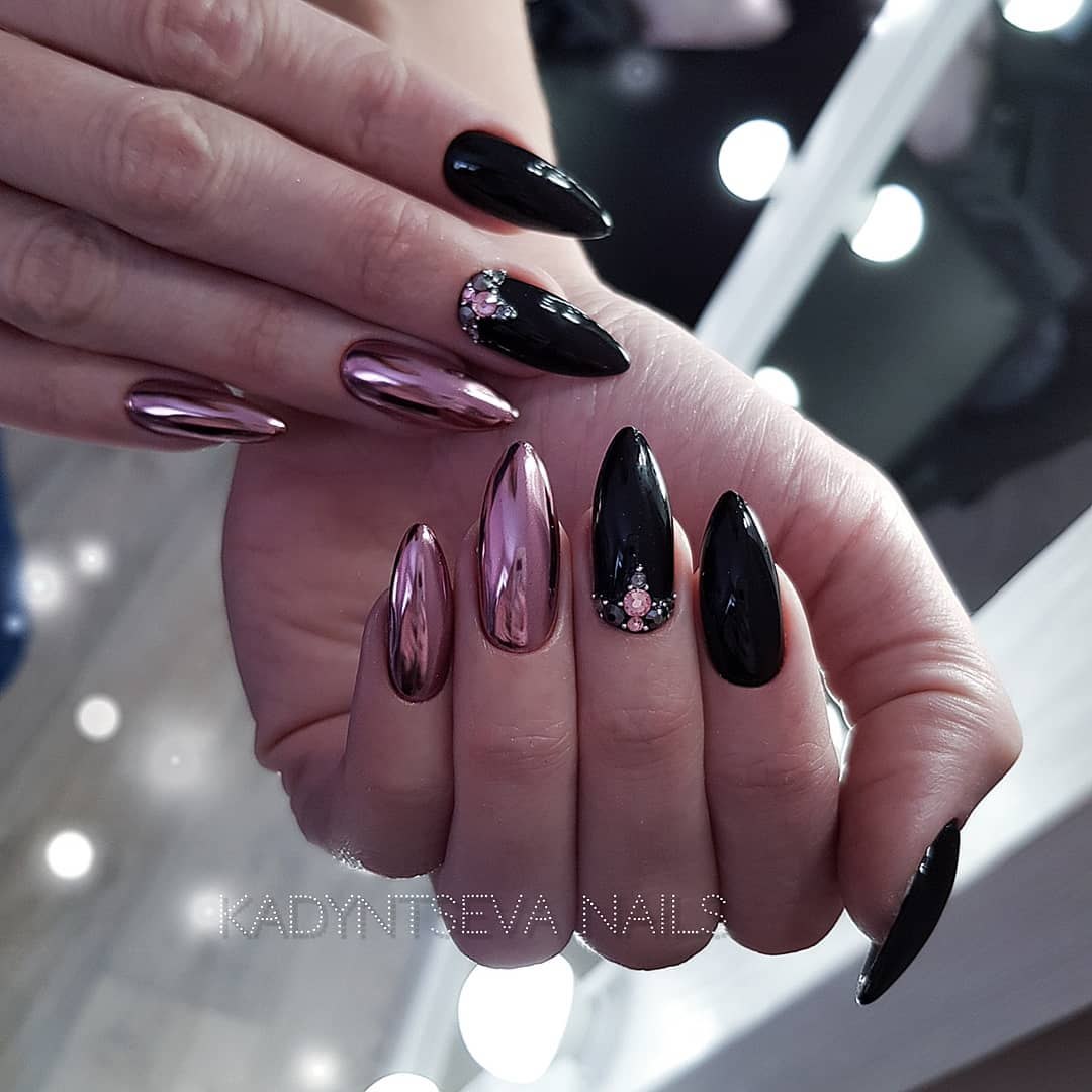 Миндалевидные ногти темные