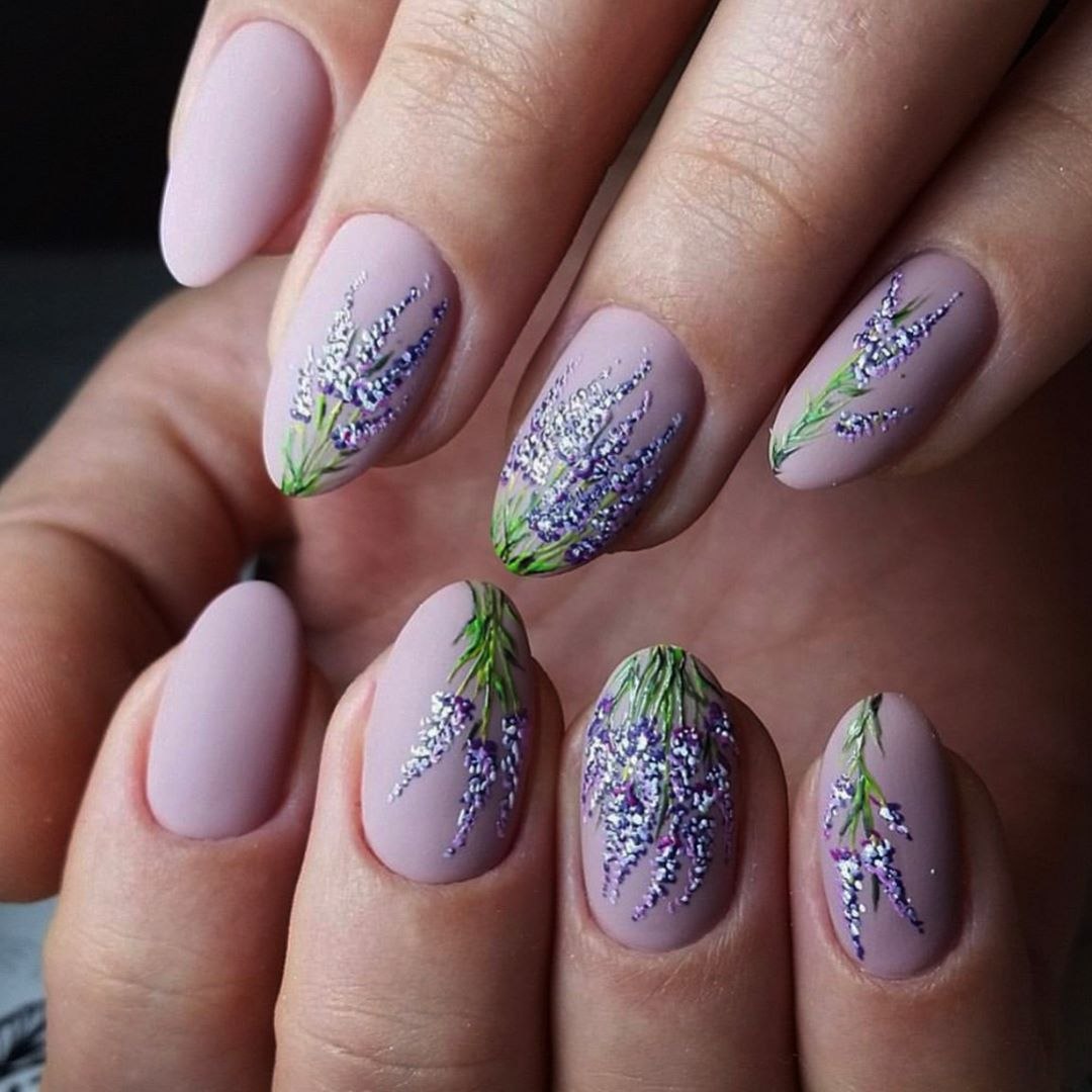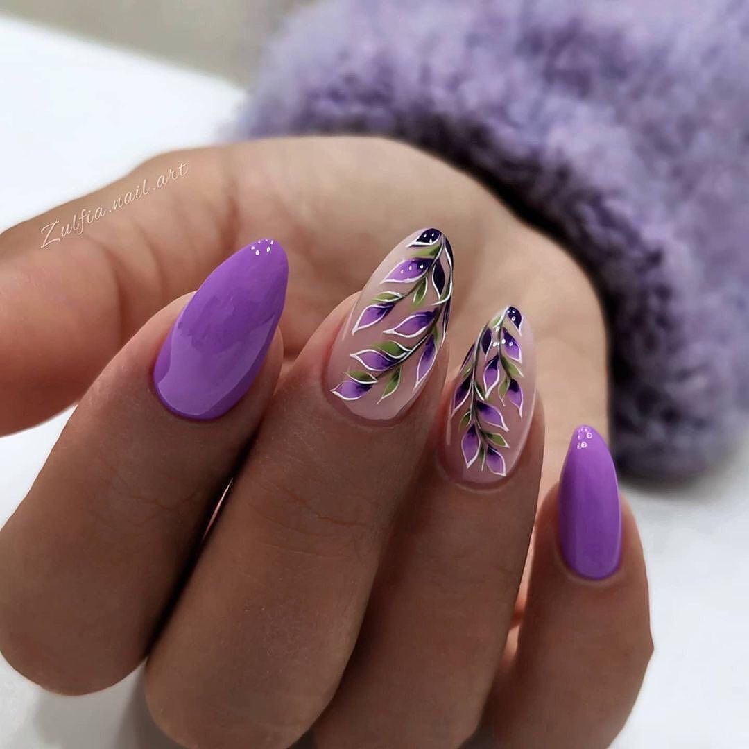 Лавандовые ногти 2021 миндаль