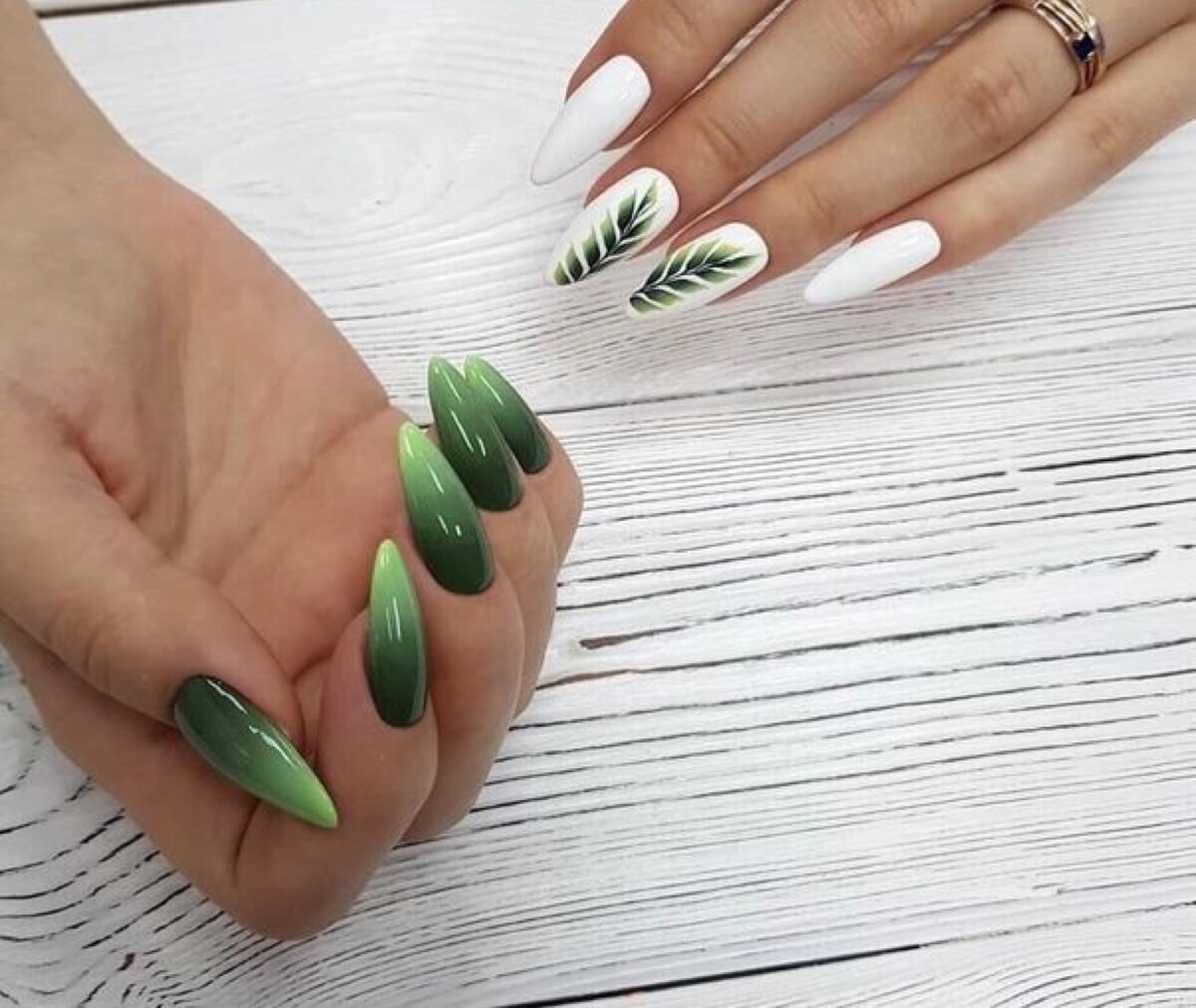 Маникюр зеленый с белым