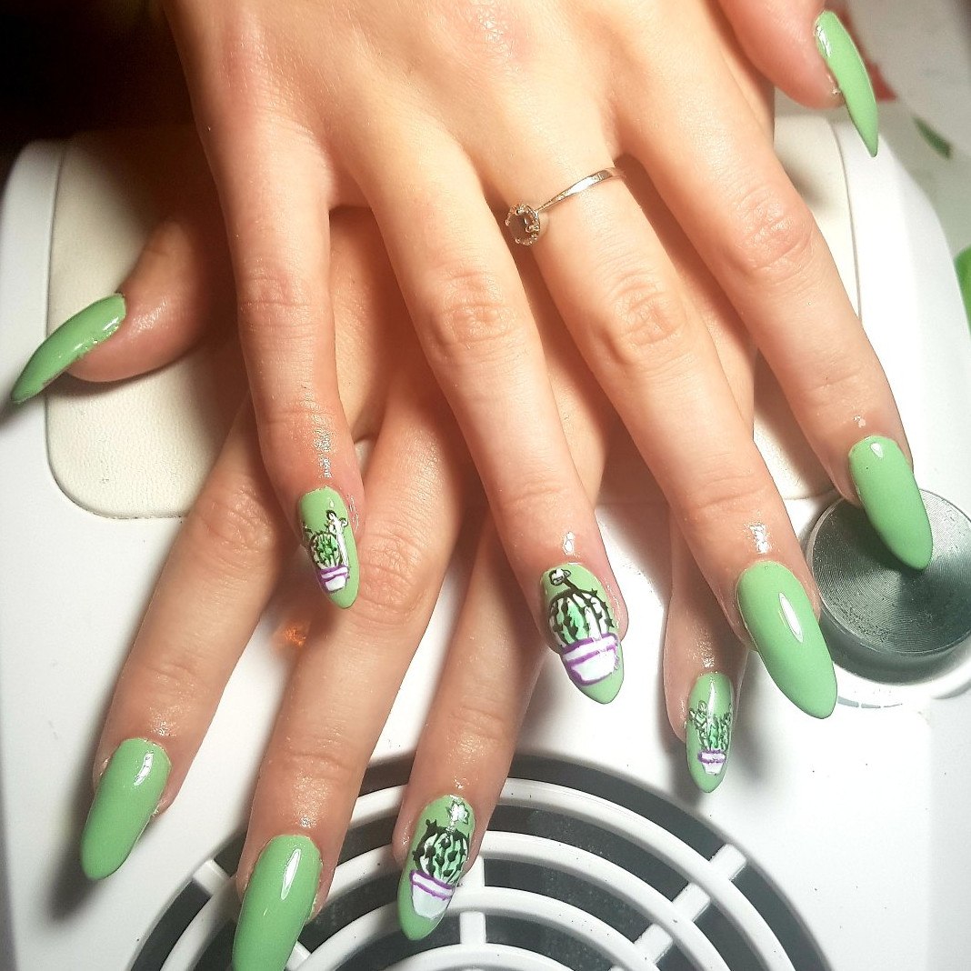 Маникюр с кактусами на миндаль
