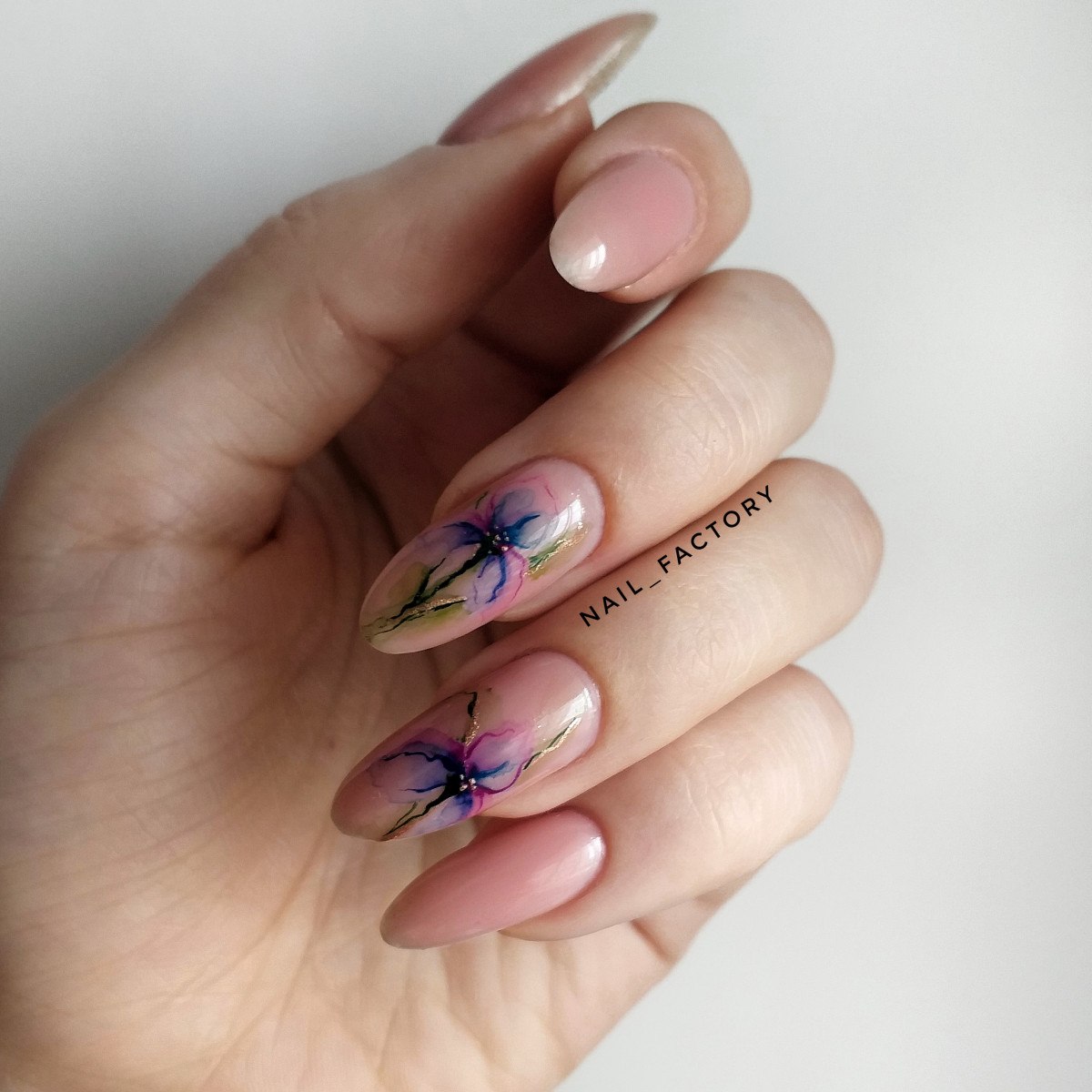 Нюдовый маникюр с акварелью