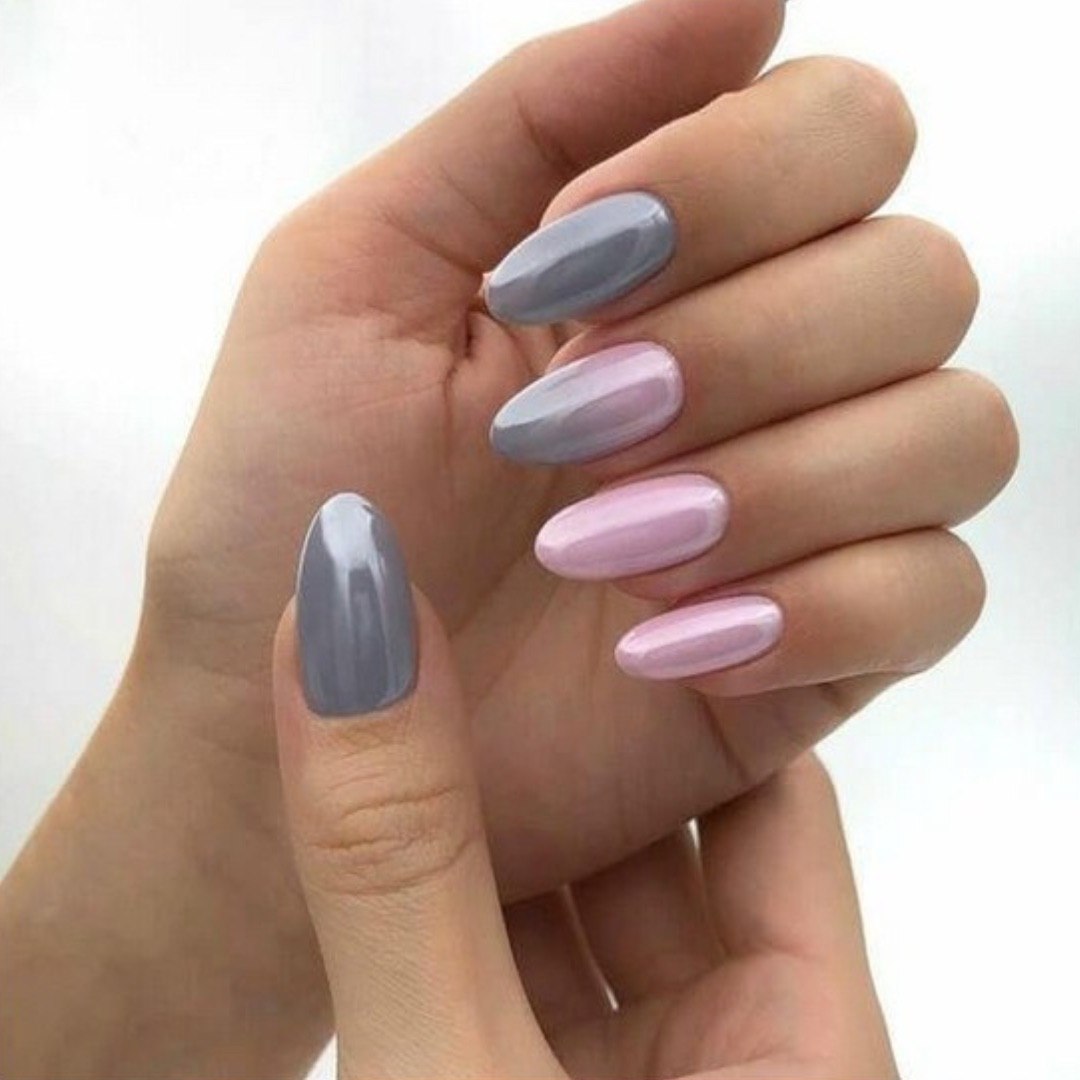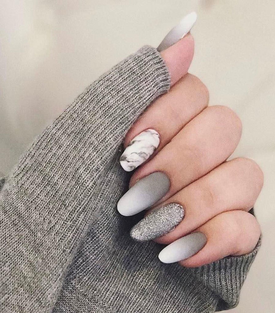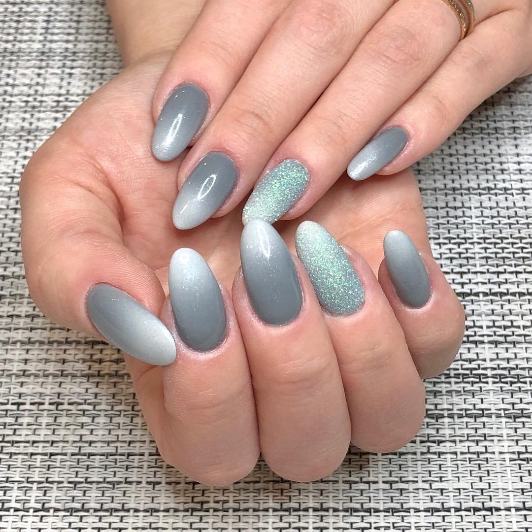 Серый маникюр миндаль