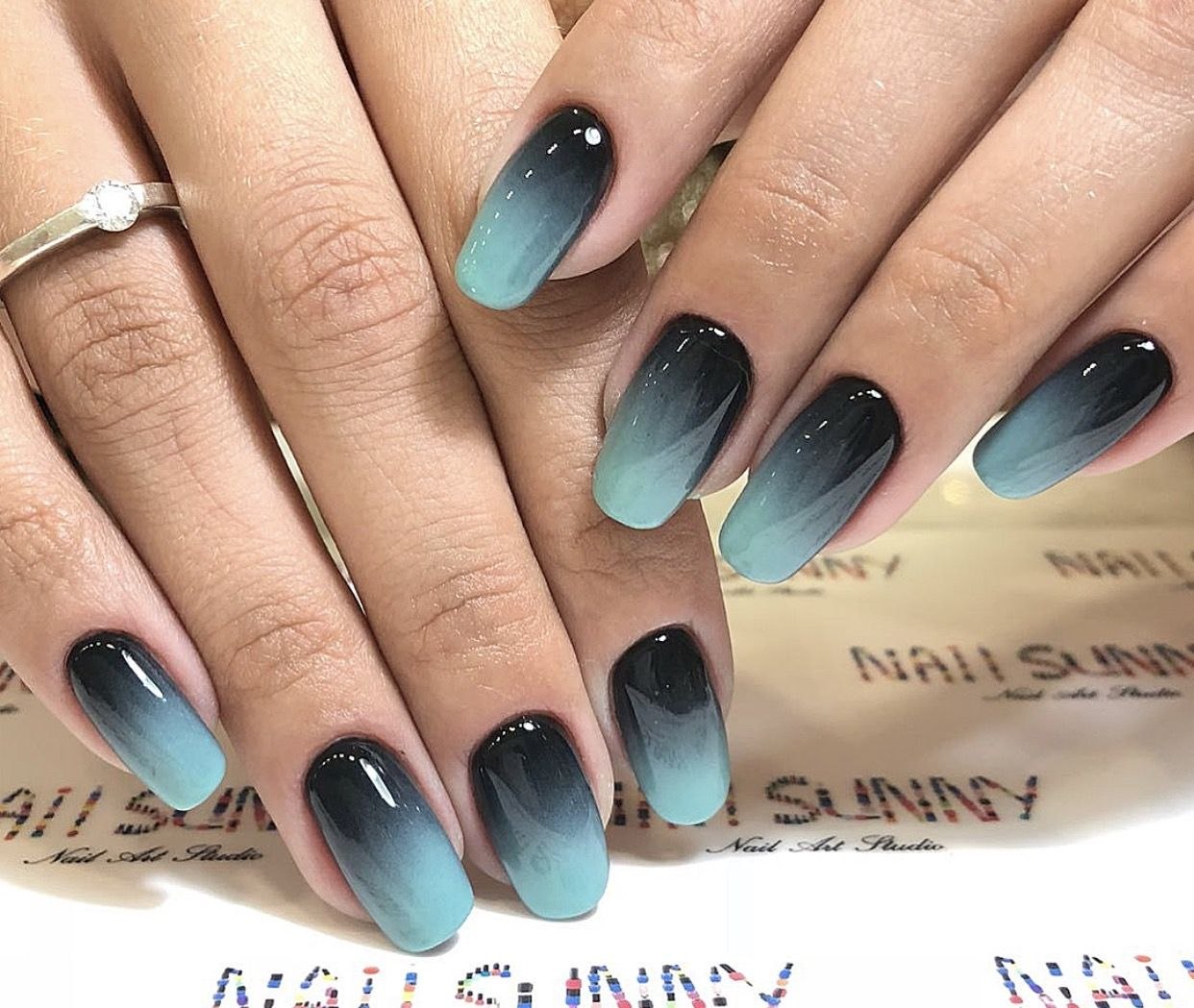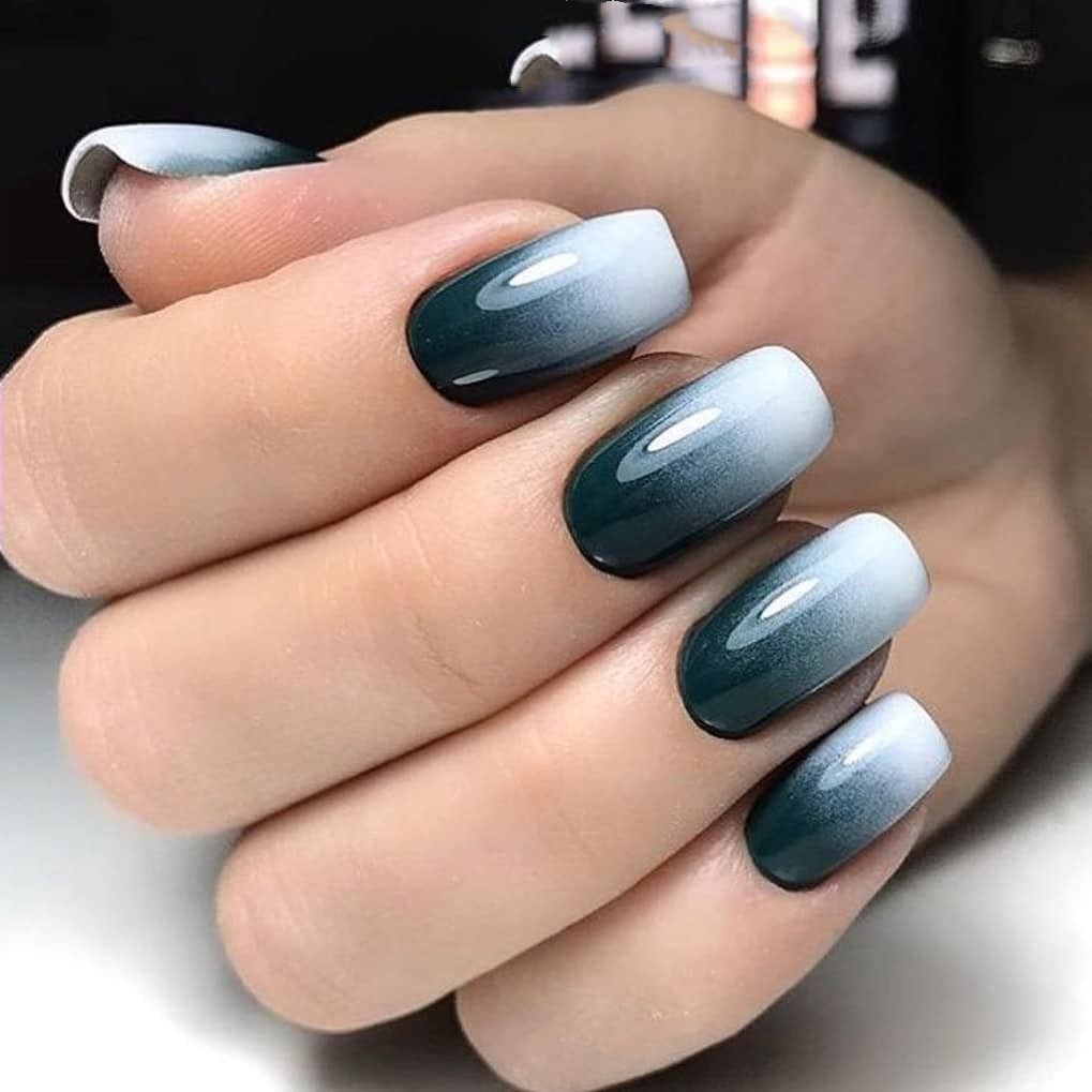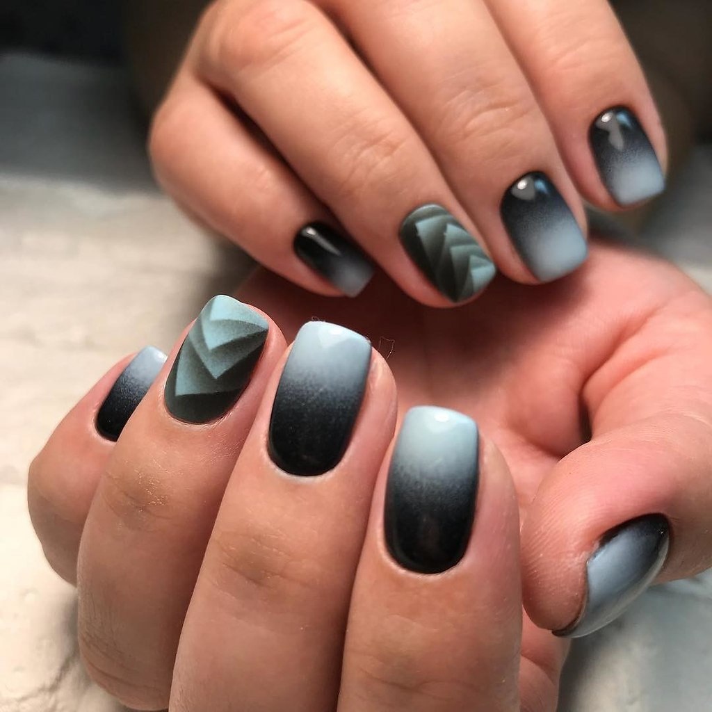 Маникюр омбре голубой с черным