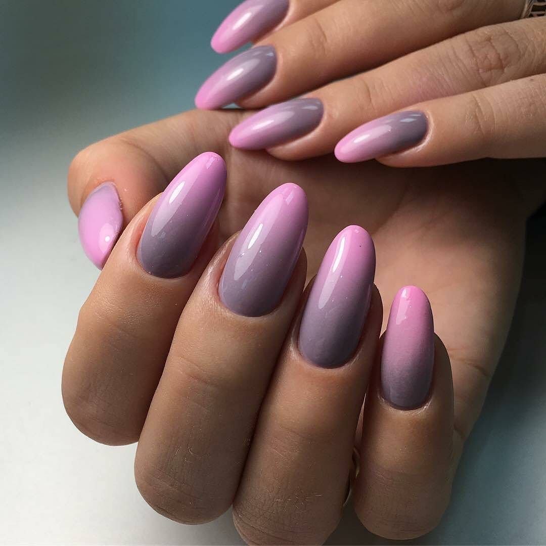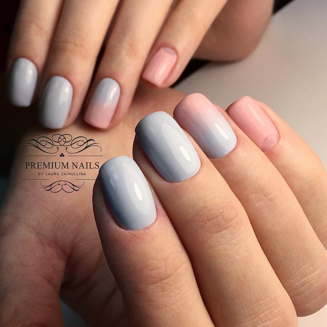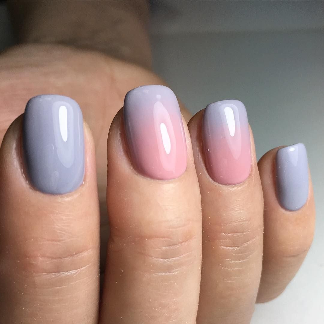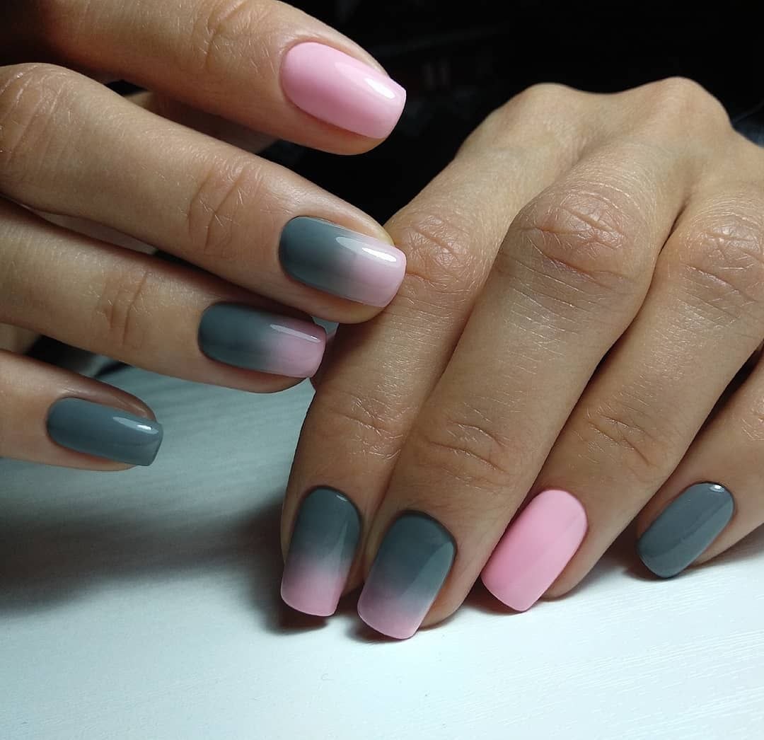 Серо-розовый градиент на ногтях