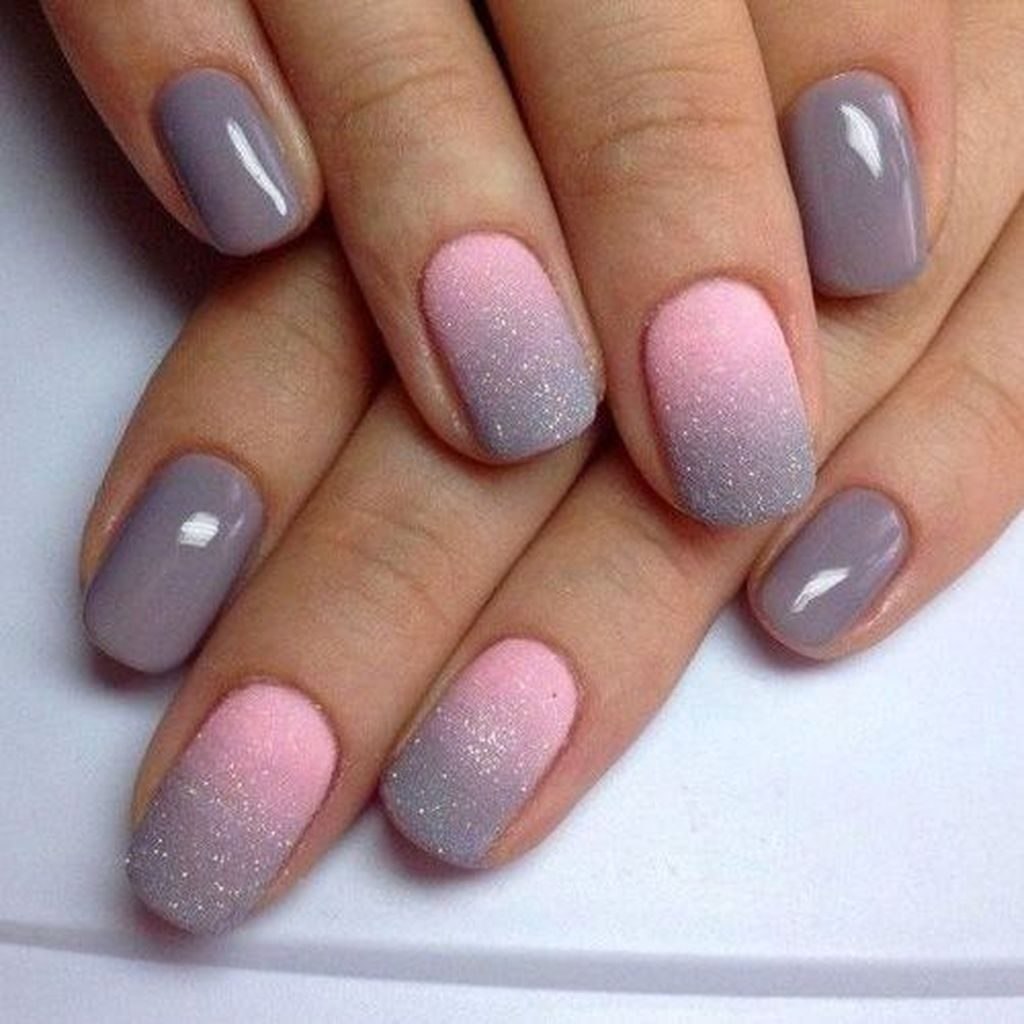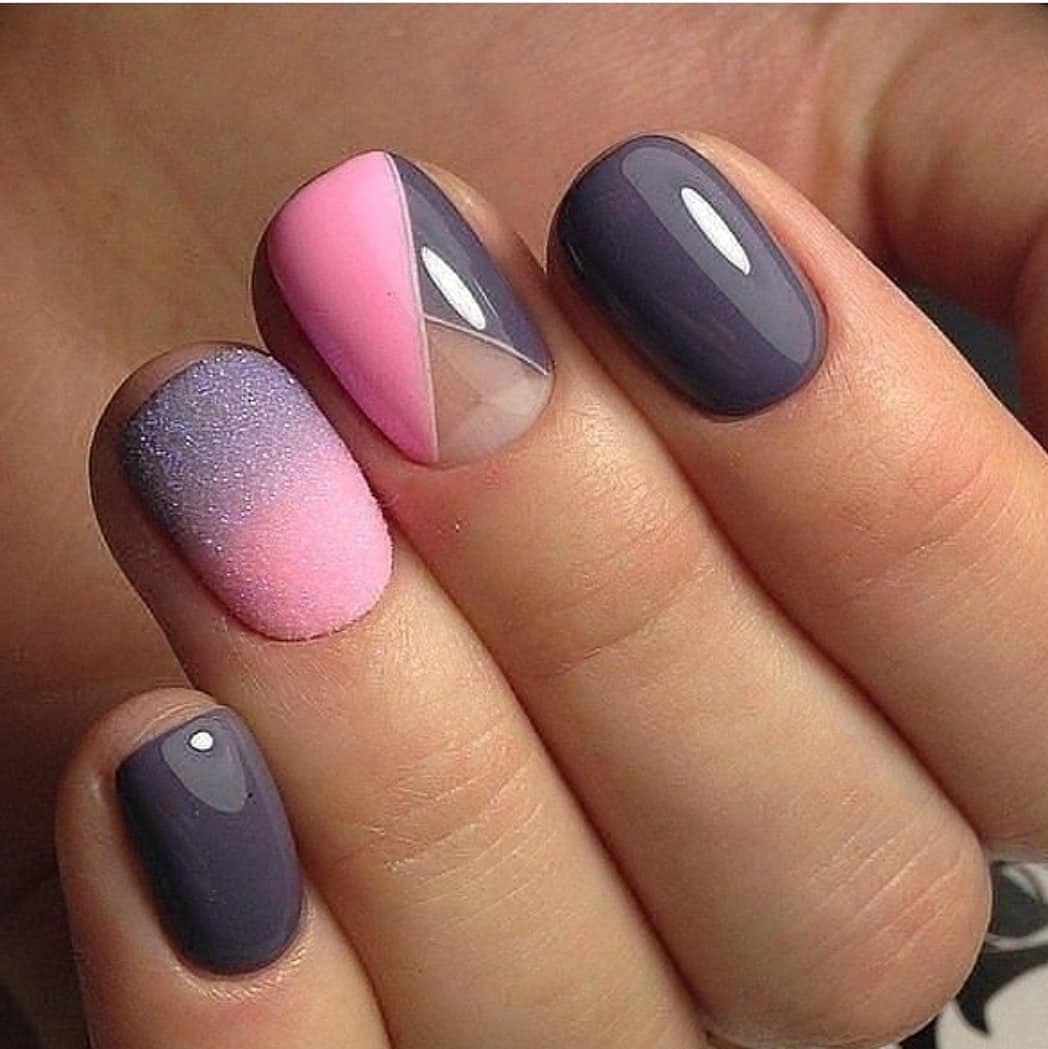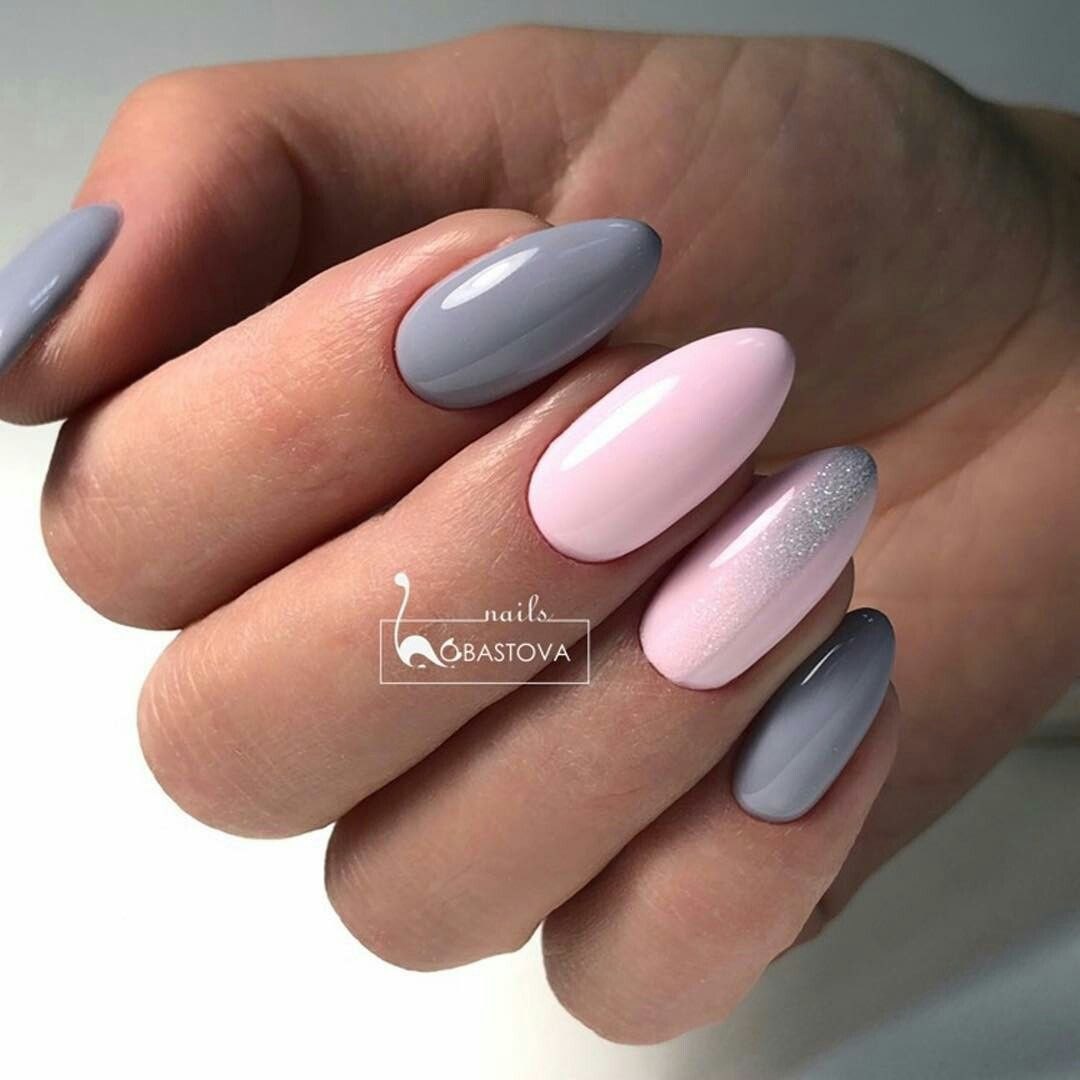 Маникюр серый с розовым