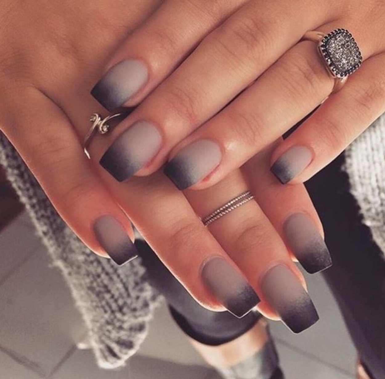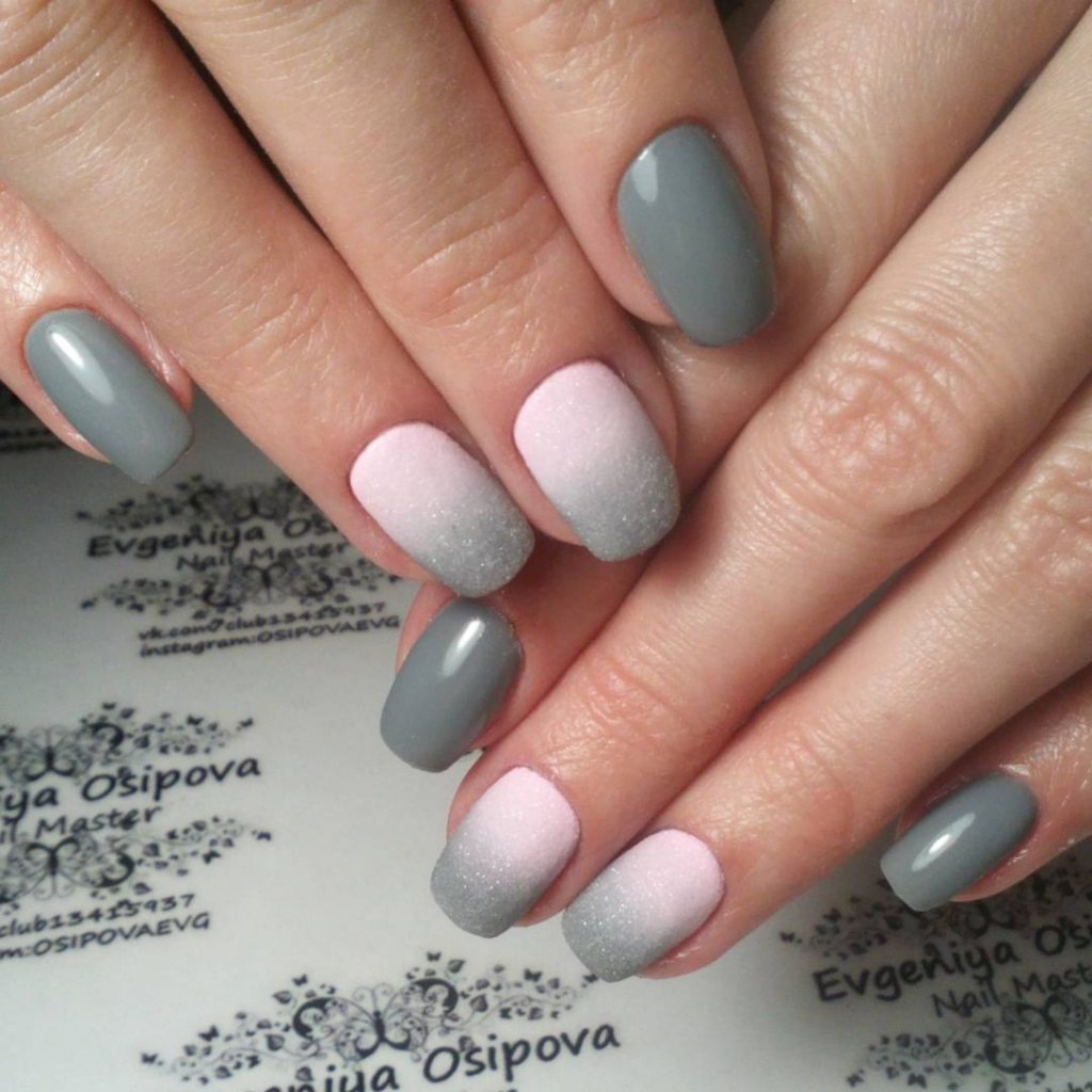 Маникюр омбре серый