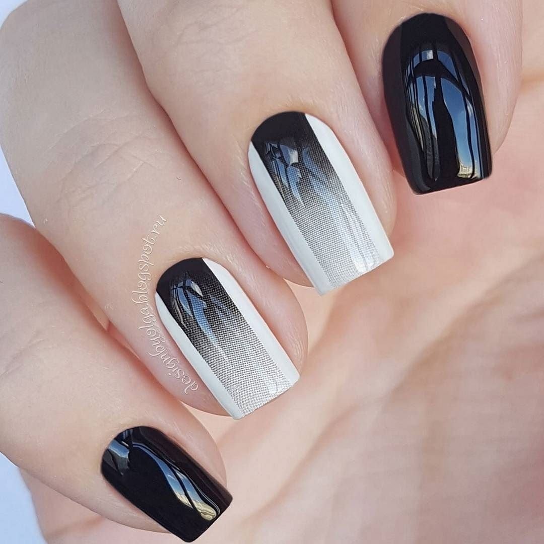 Маникюр омбре черно белый
