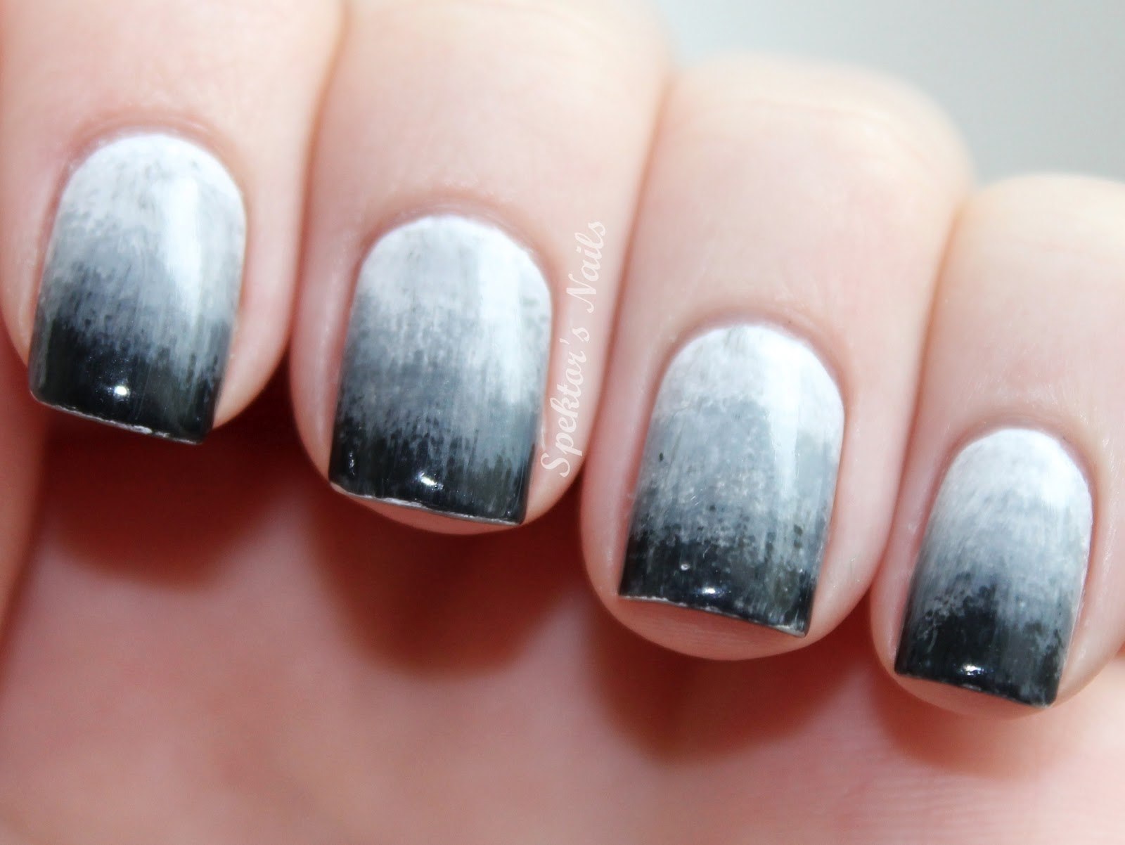 Черно белый градиент на ногтях