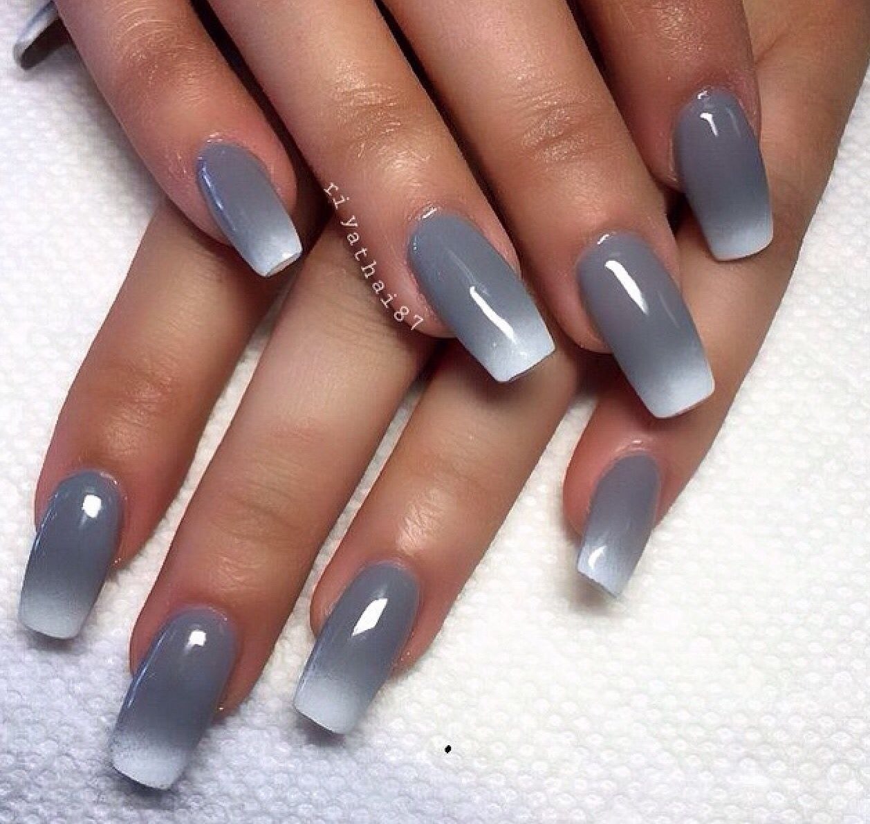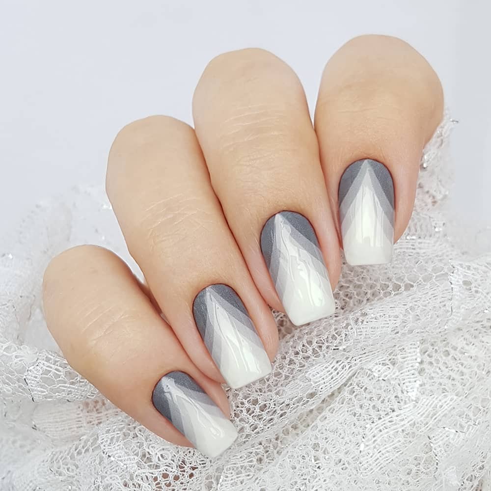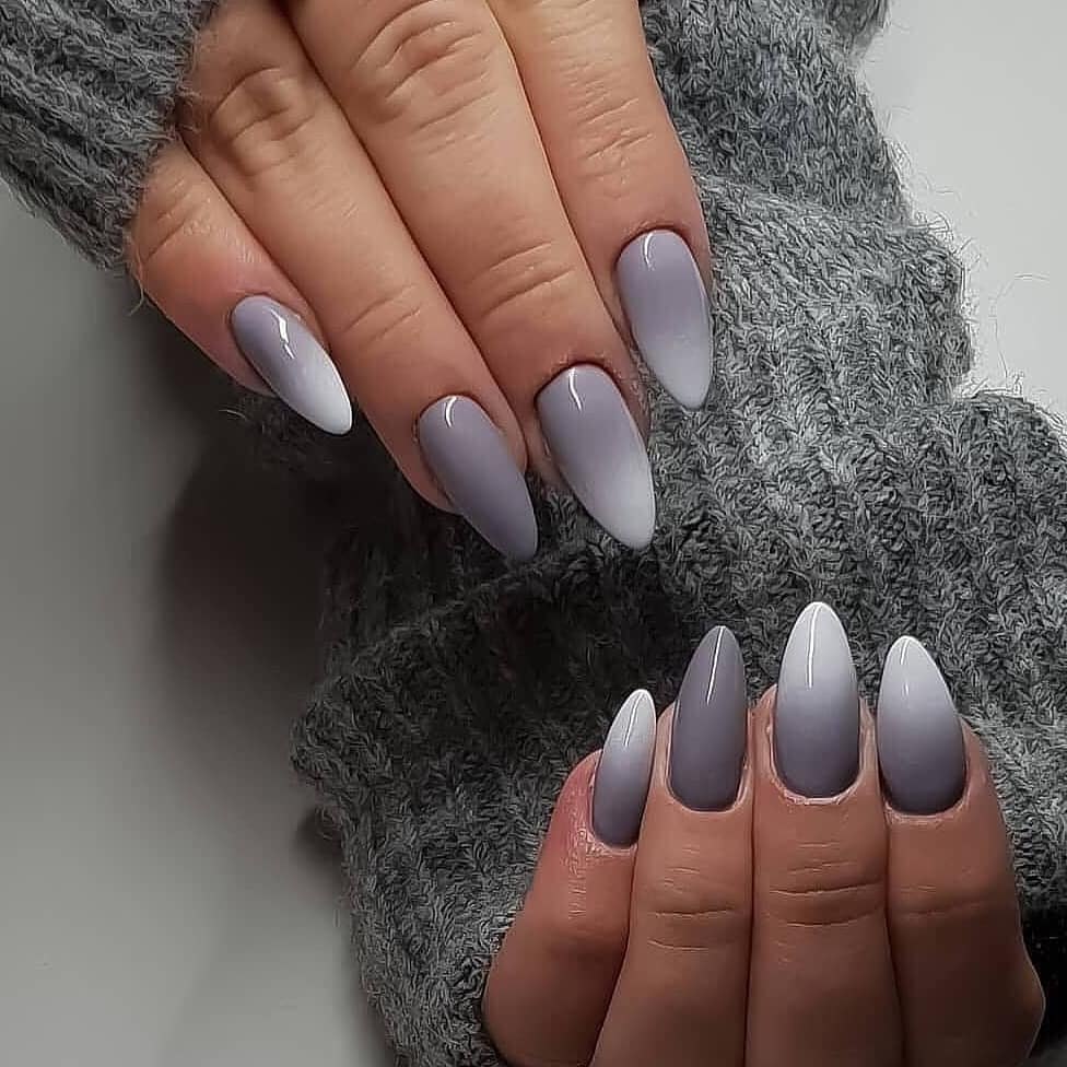 Омбре серый с белым на ногтях