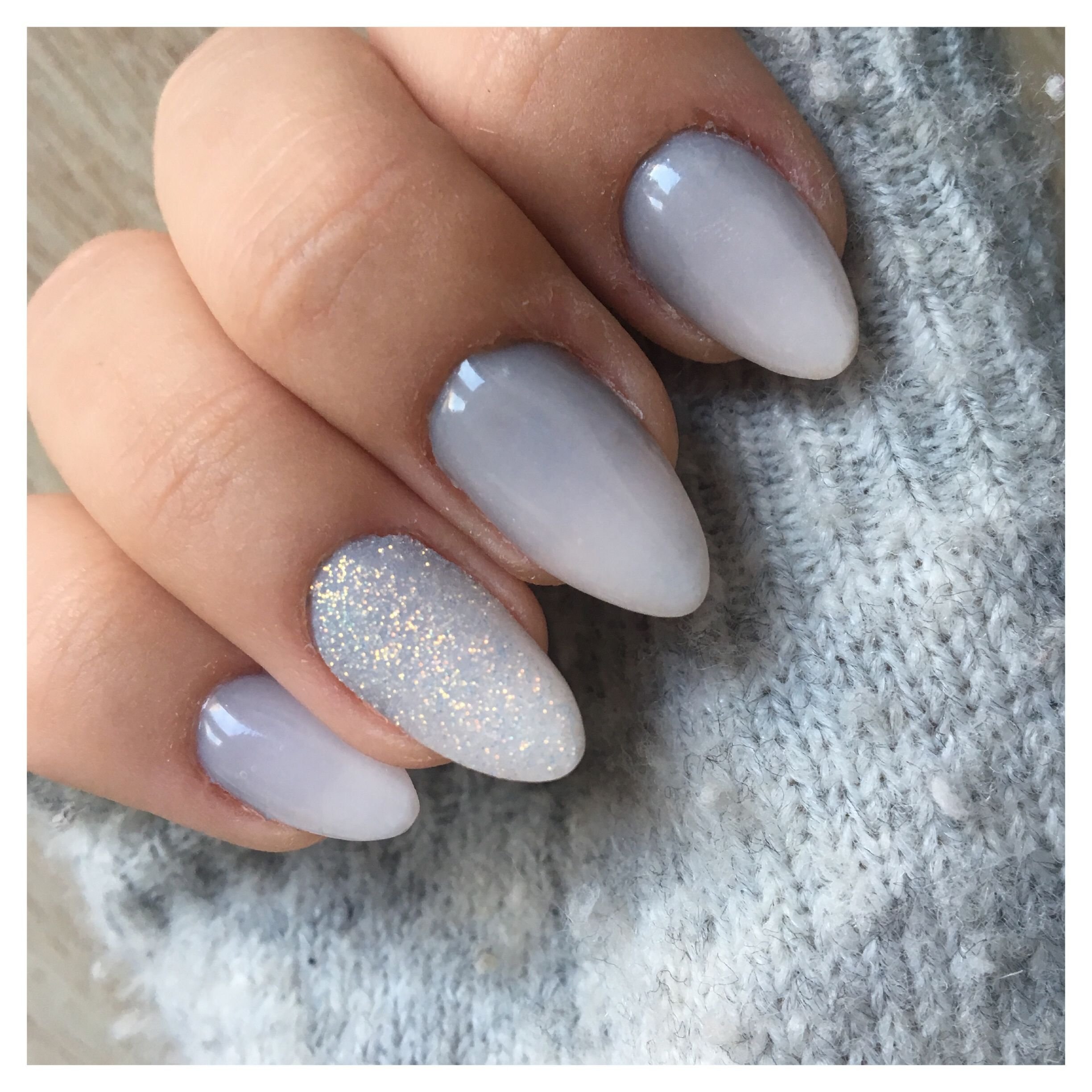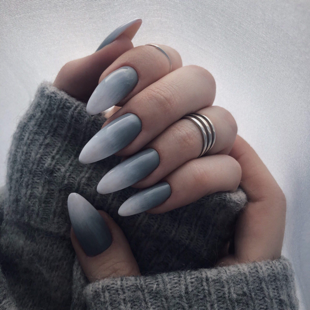 Серые миндалевидные ногти