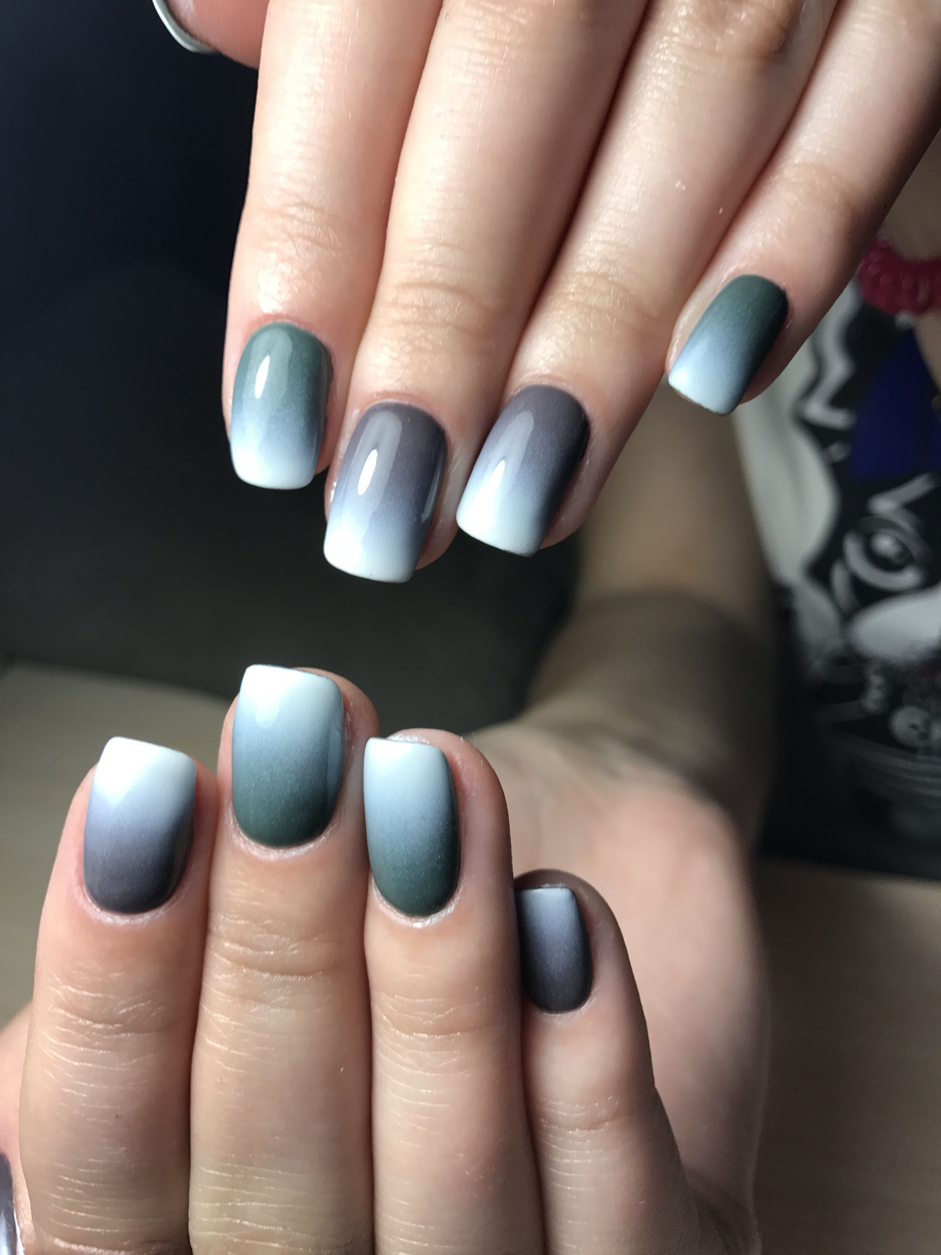 Серое омбре на ногтях