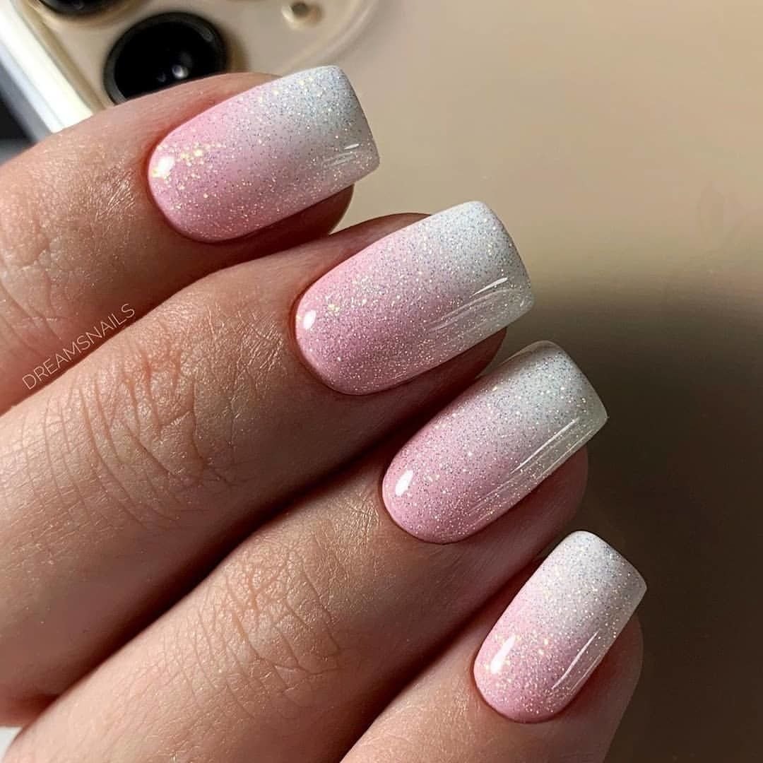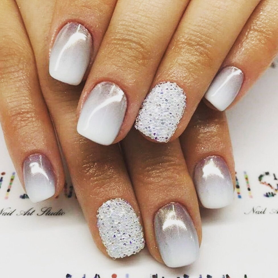 Маникюр градиент белый с втиркой