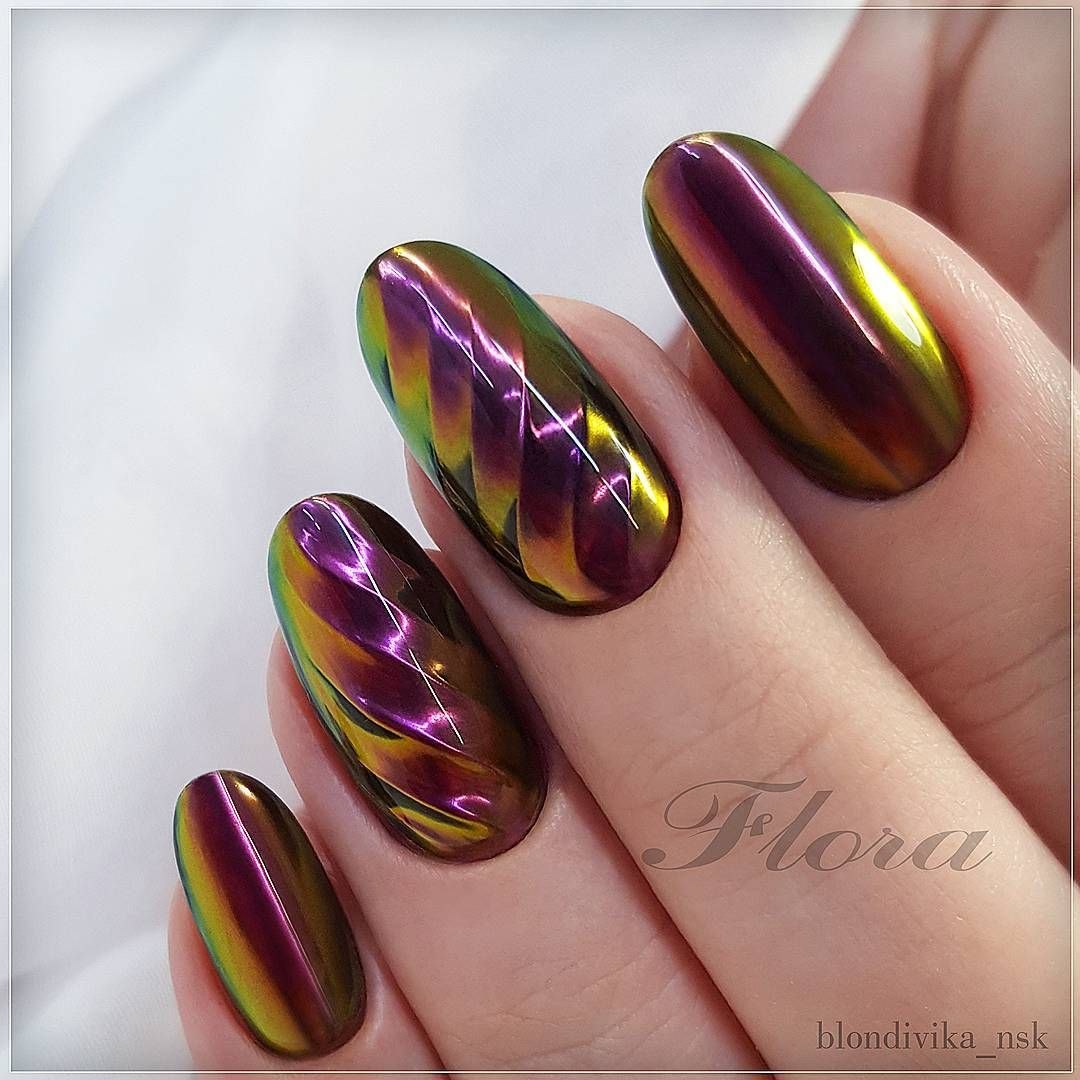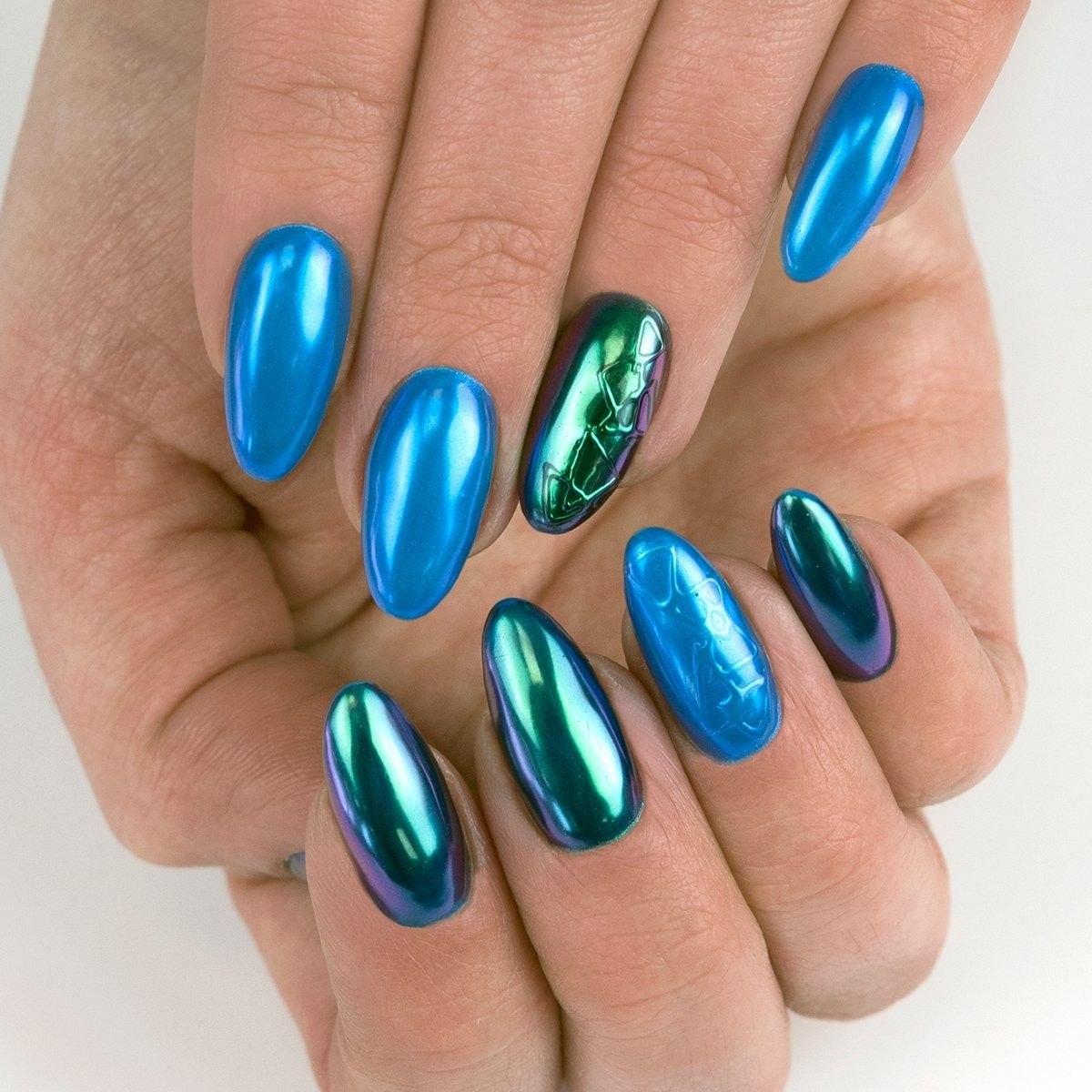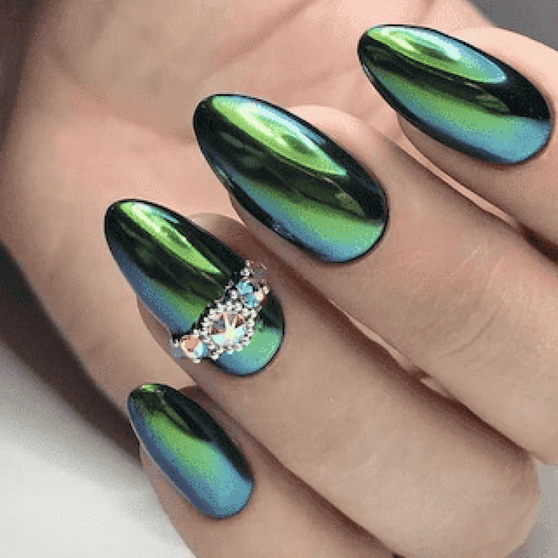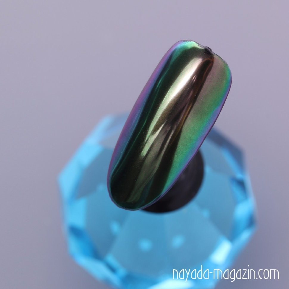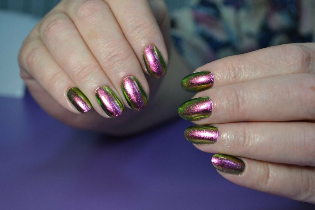 Зеркальный зелёный маникюр