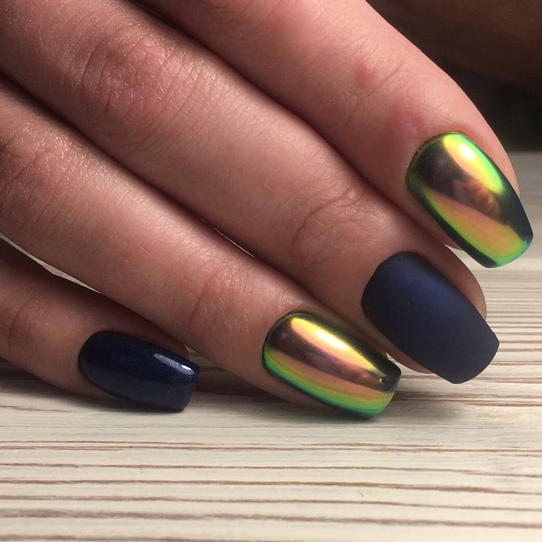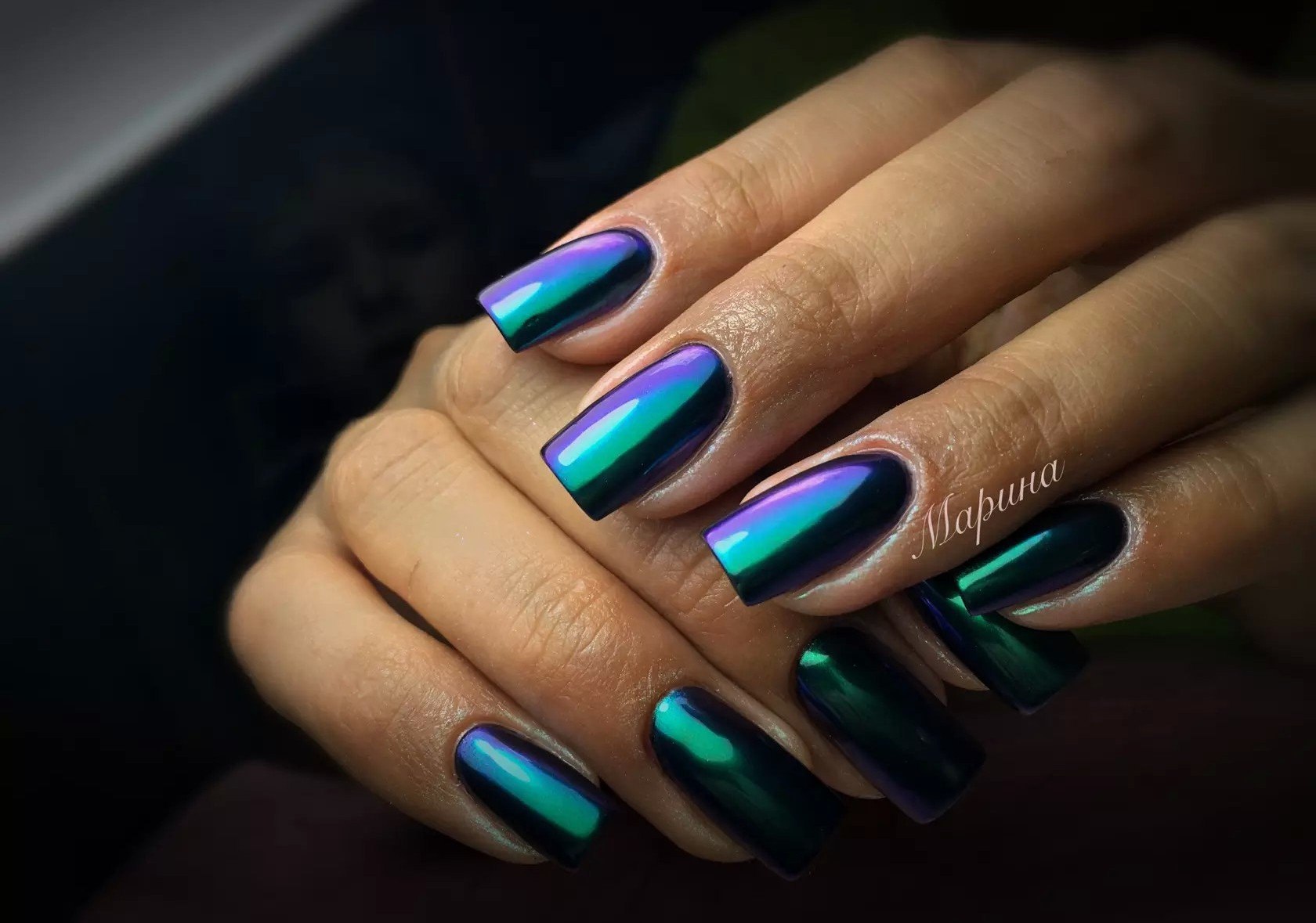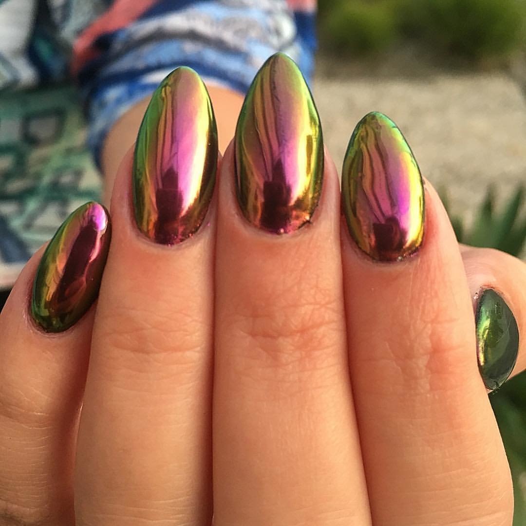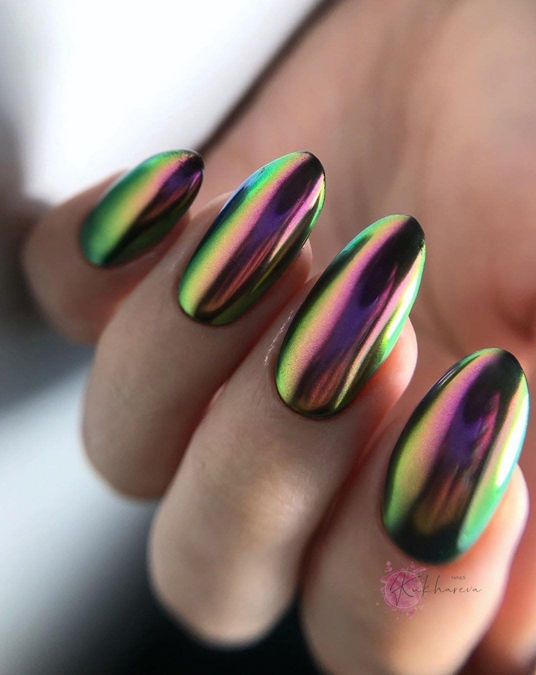 Зеркальный зелёный маникюр