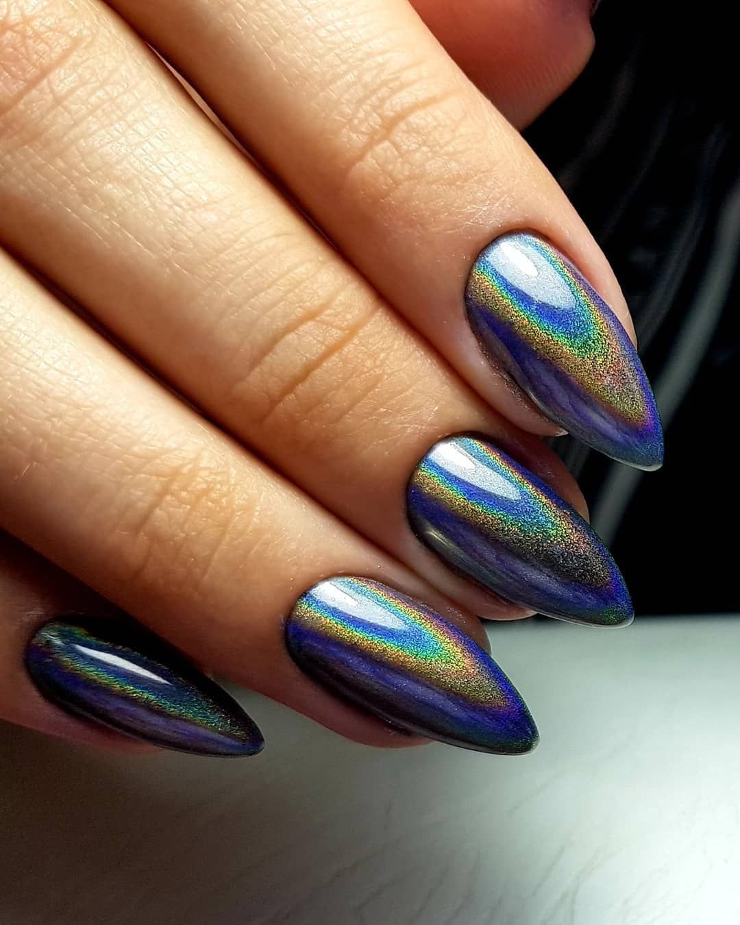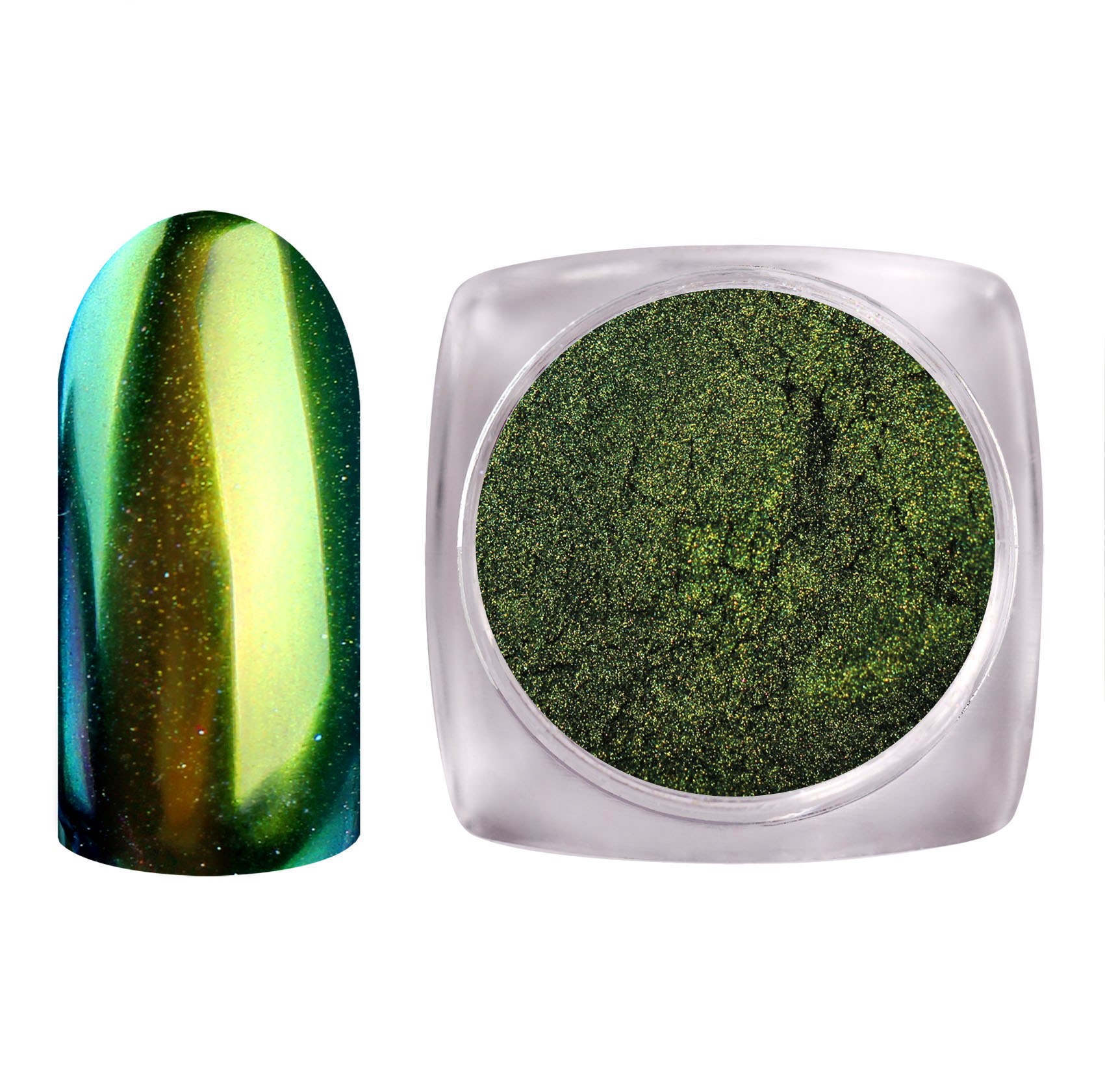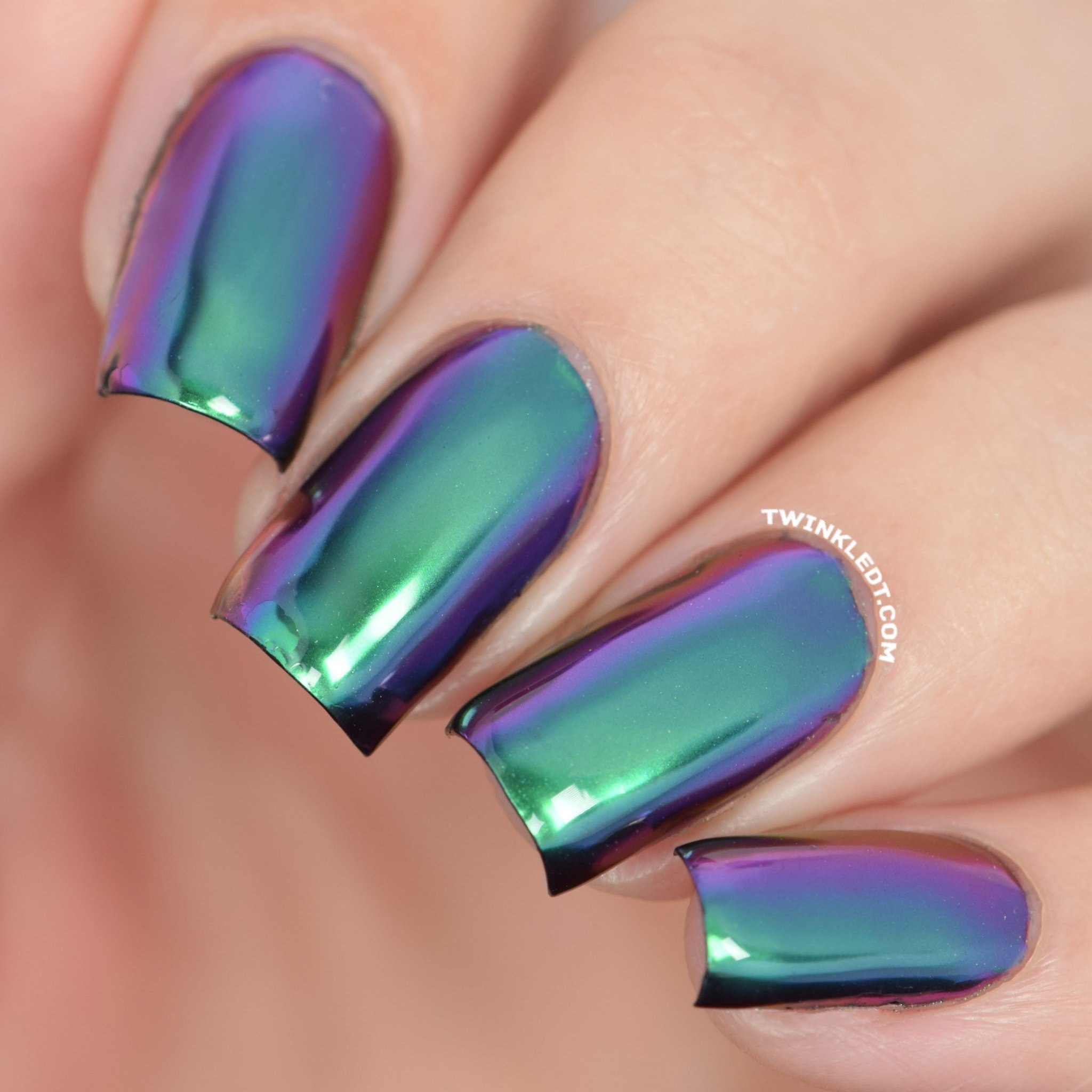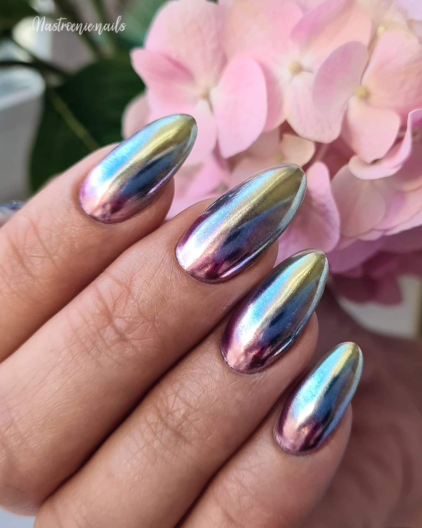 Зеркальный зелёный маникюр