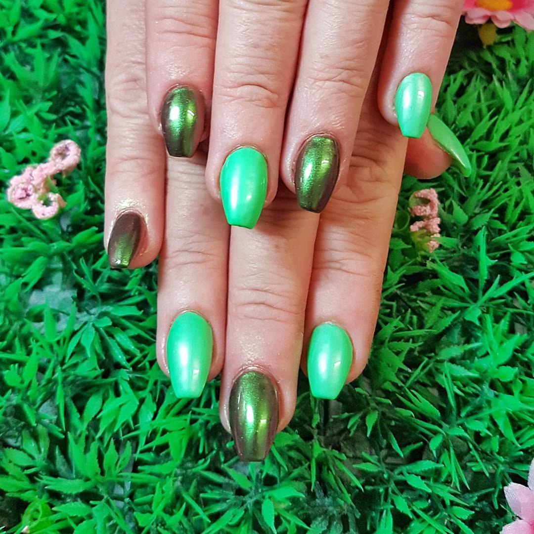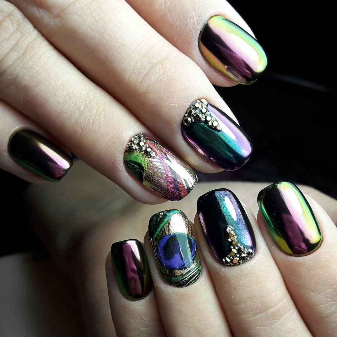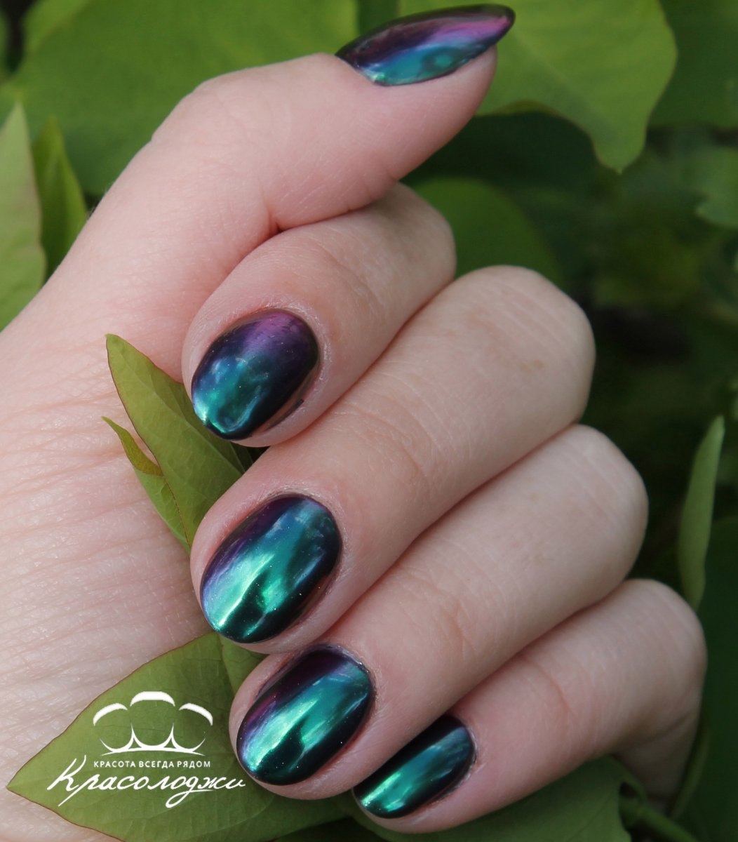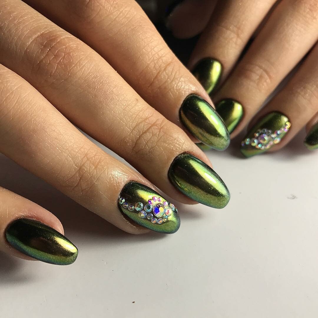 Маникюр зеленый хамелеон