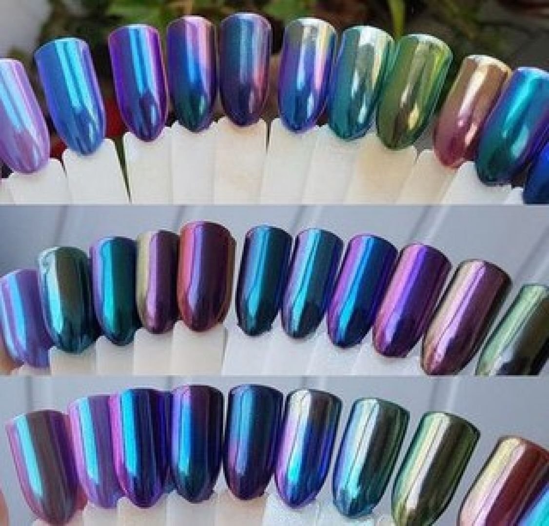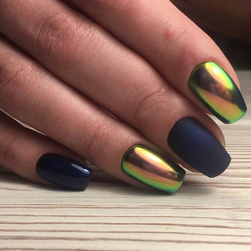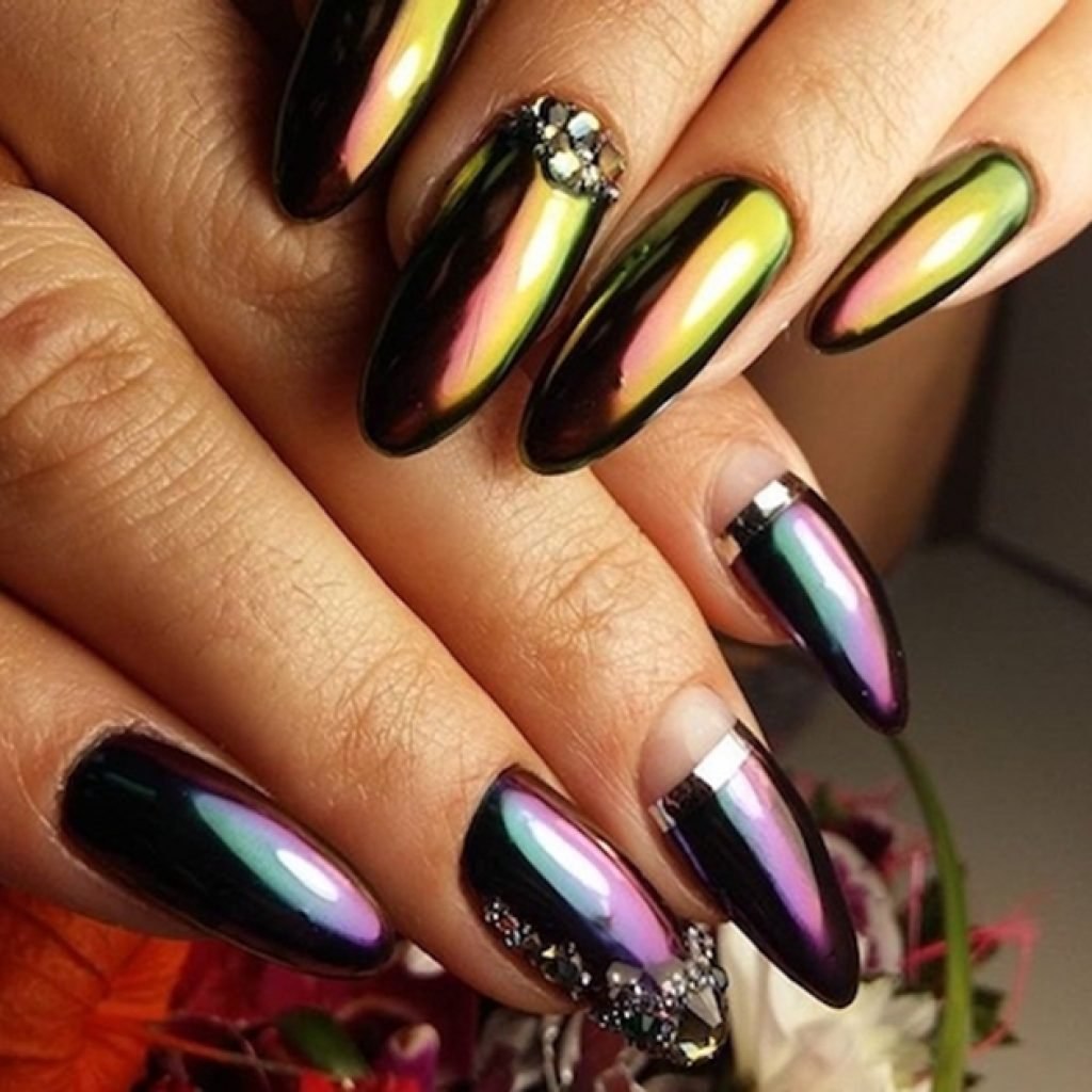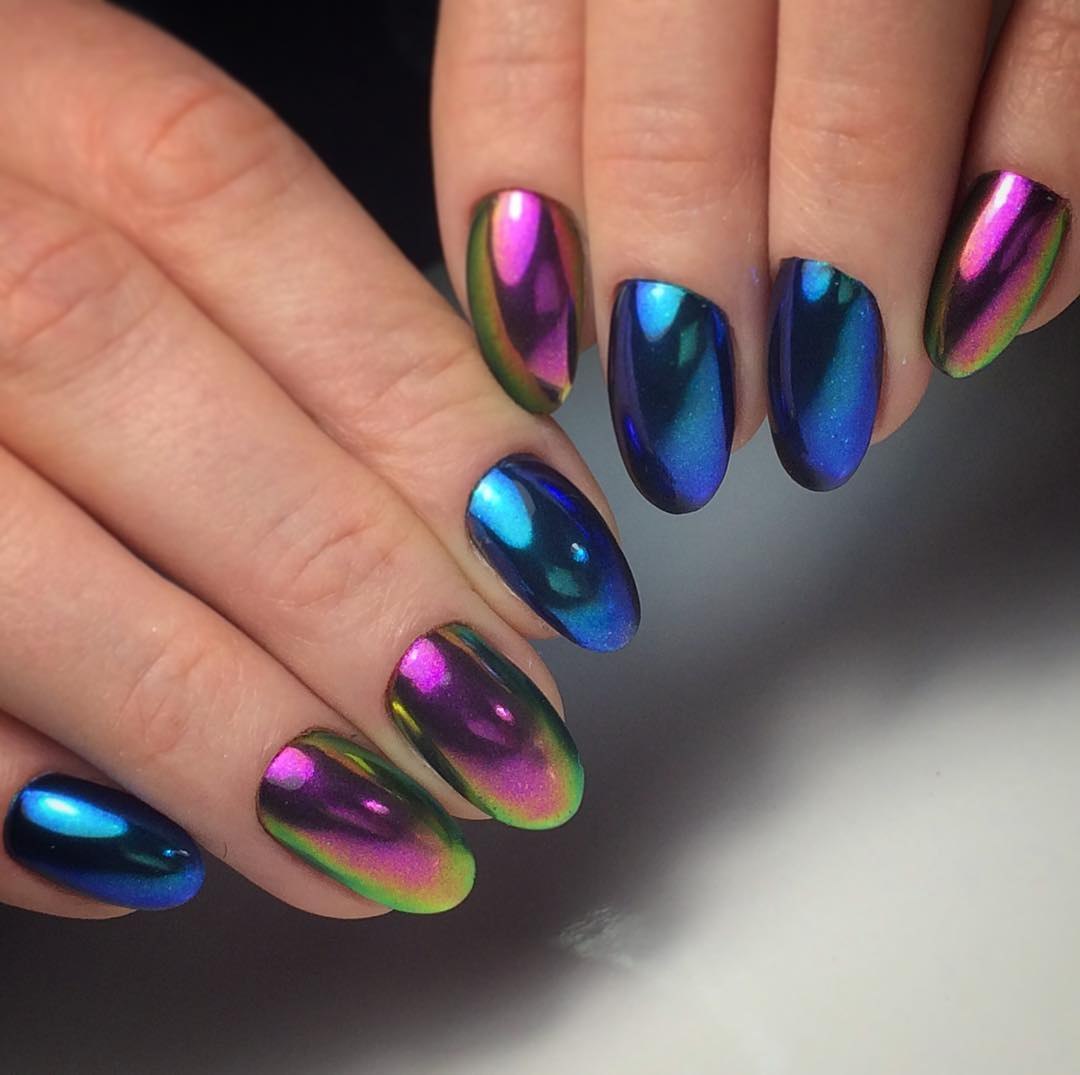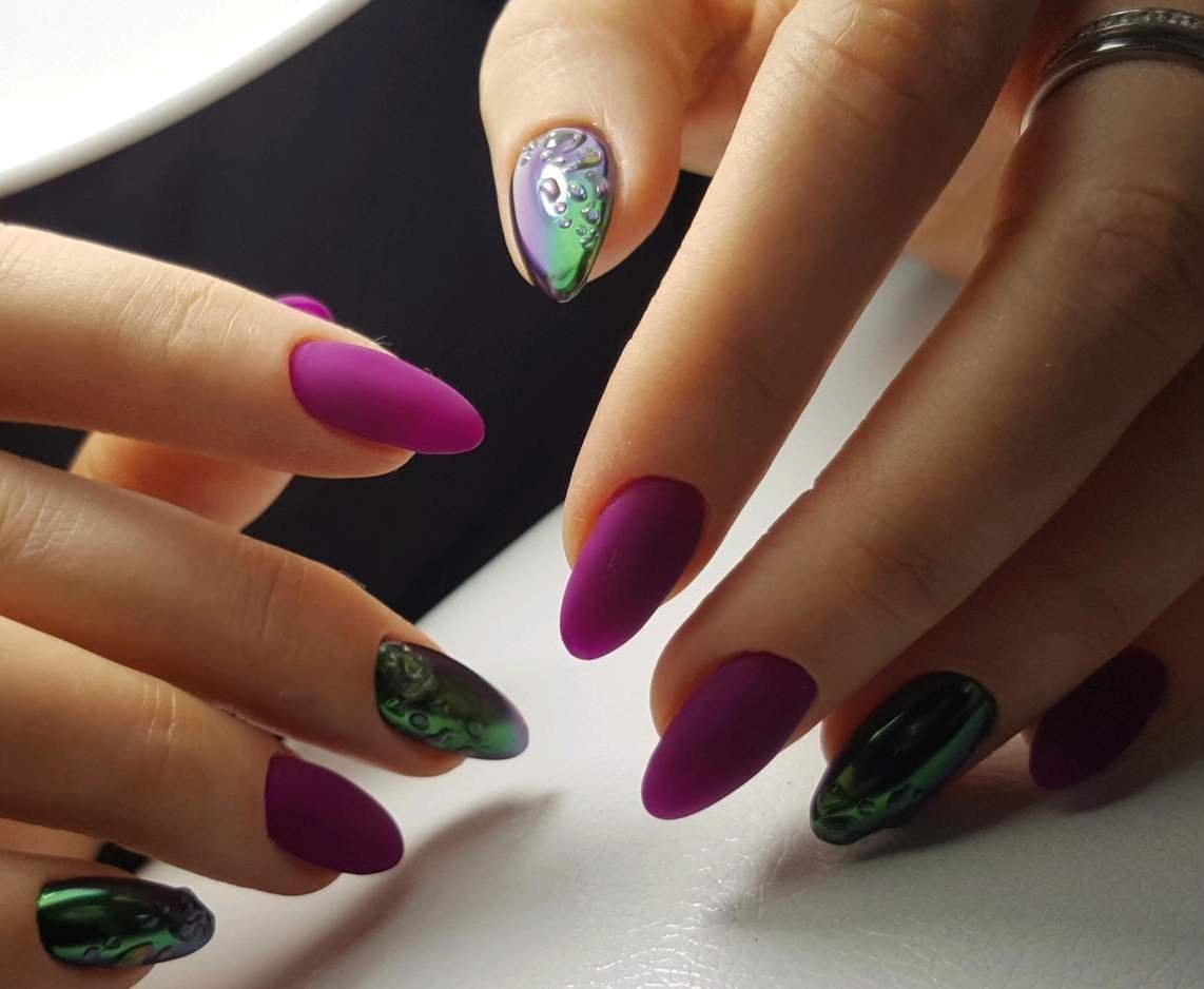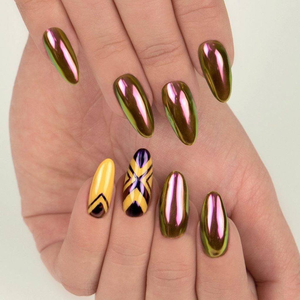 Маникюр зеленый хамелеон